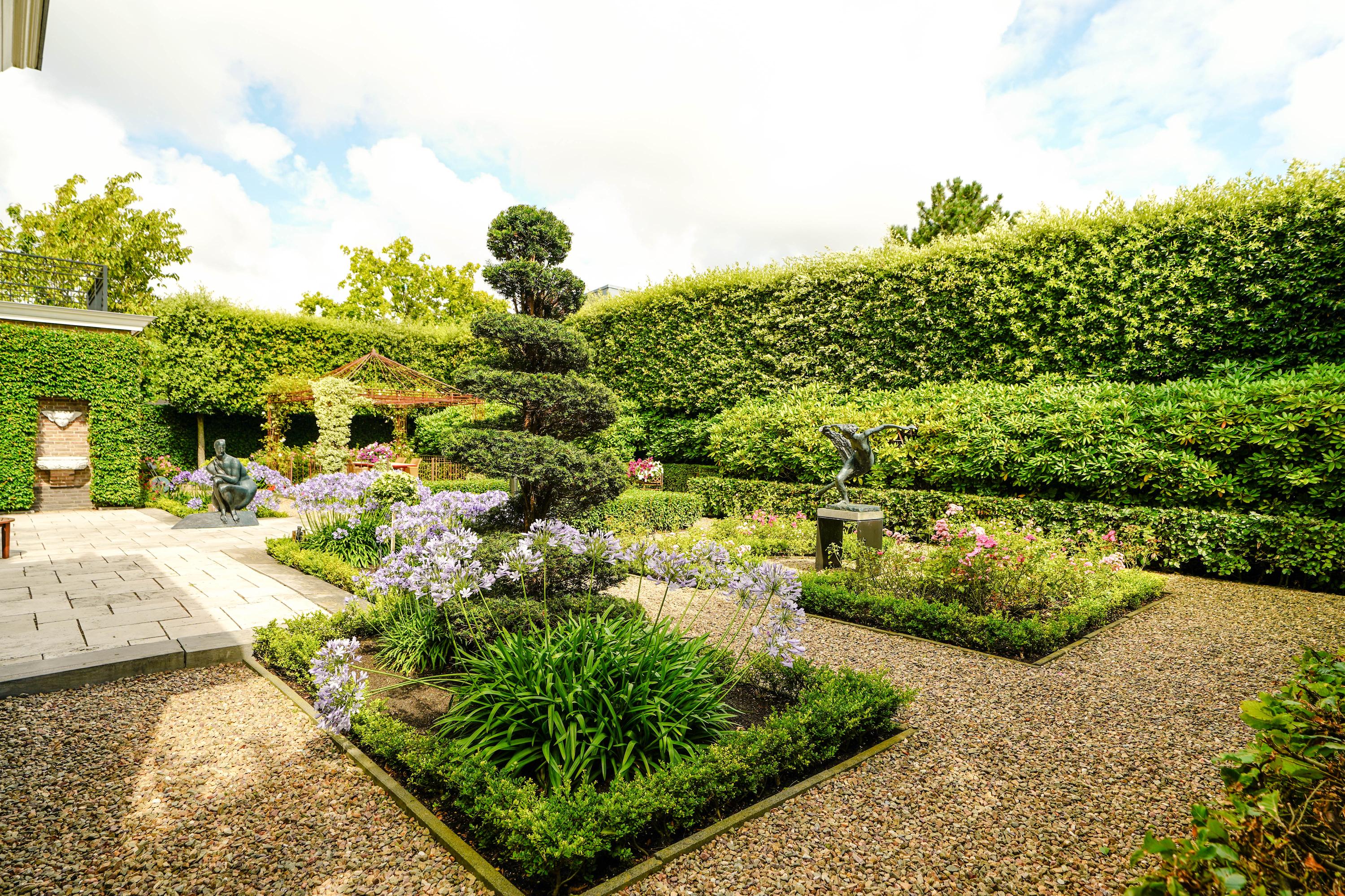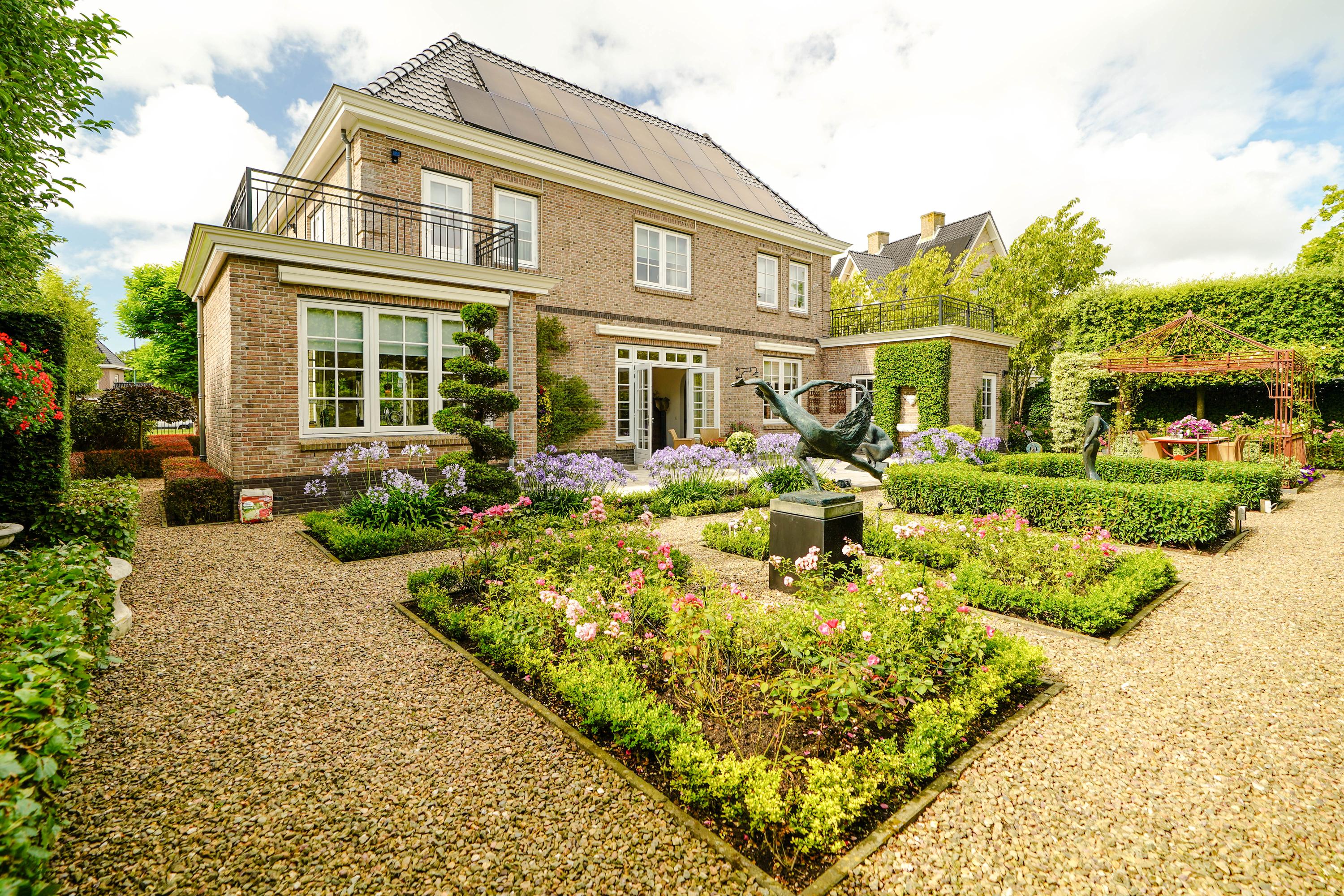 With energy class A, 24 solar panels, comprehensive insulation, underfloor heating, and advanced security features, comfort is matched by sustainability. The ornamental garden, sheltered by Holm oaks and a wrought-iron fence, includes a 46 m² terrace, fountains, and a computer-controlled irrigation system. An attached 10.4 x 3.4 meter garage and broad driveway enhance daily ease, while proximity to the International School of The Hague is ideal for family life. Every element in this country-style villa The Hague Vroondaal Hofstedepark is tailored for those who value space, privacy, and enduring architectural quality.