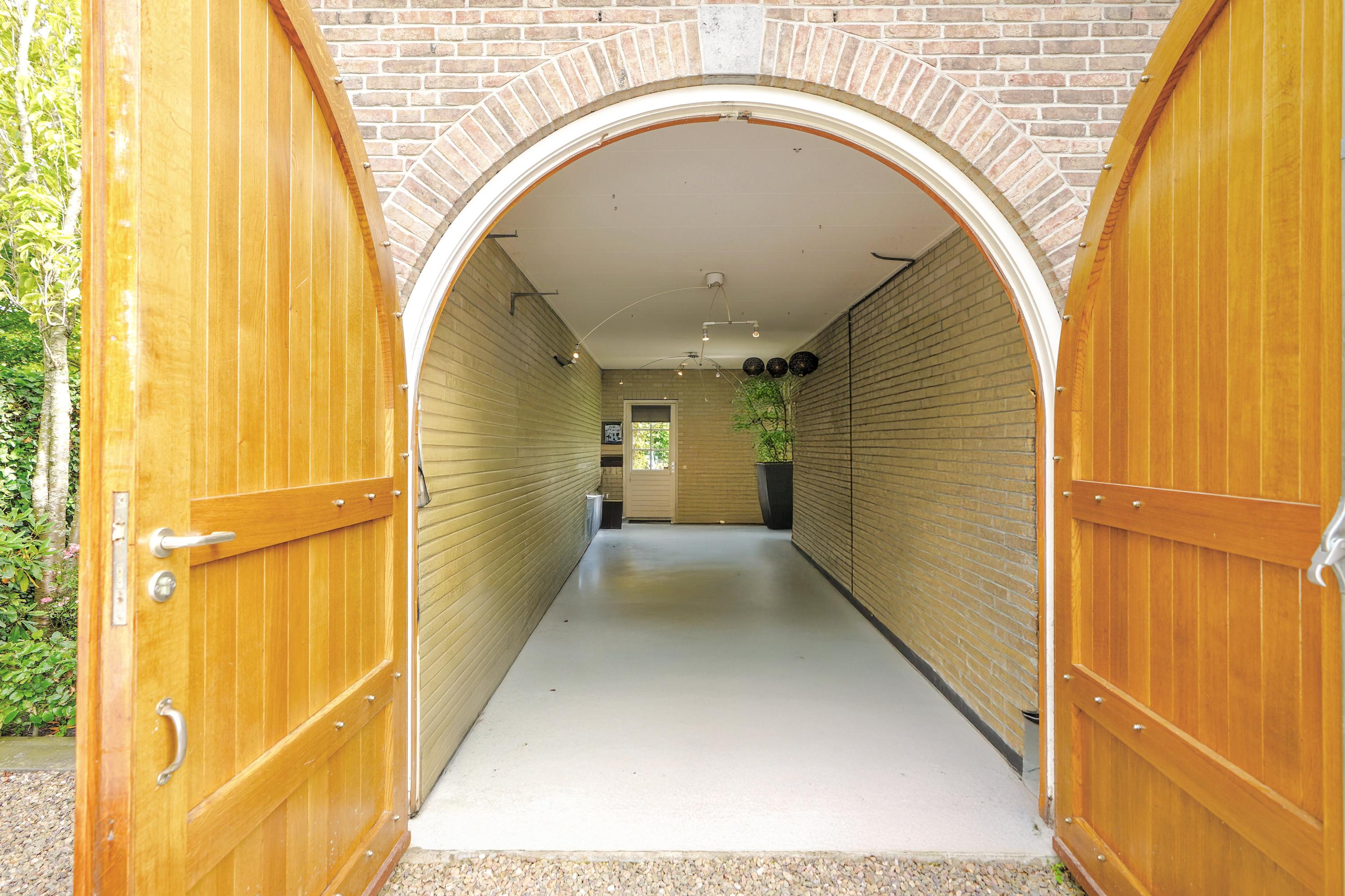 Architectural details make this villa truly distinctive: four arched windows, a curved glass central bay, hand-formed brickwork, and a robust oak front door with custom wrought iron hardware. The interior is filled with carefully selected materials, highlighted by a sculpted oak staircase from Luc Steels, solid wooden flooring, and an open flow between living spaces. Light is drawn from skylights and broad glazed facades, creating an uplifting atmosphere throughout the home.