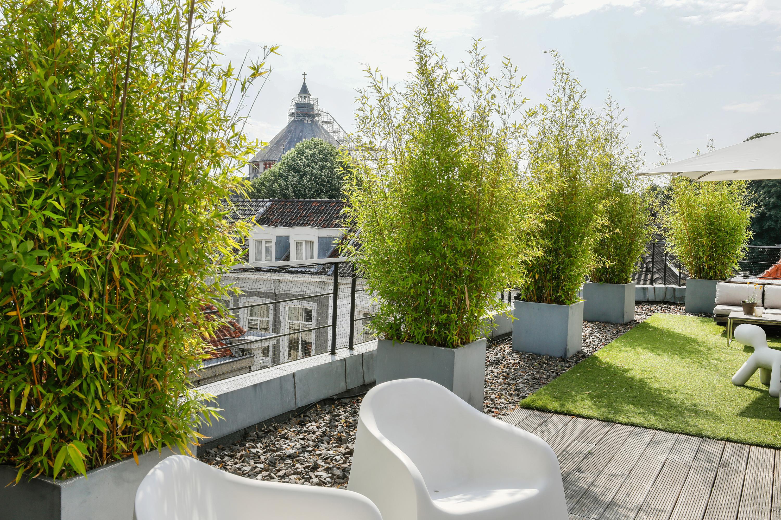 Groot appartement in hartje centrum met vijf kamers, een eigen entree/fietsenberging en een indrukwekkend dakterras.