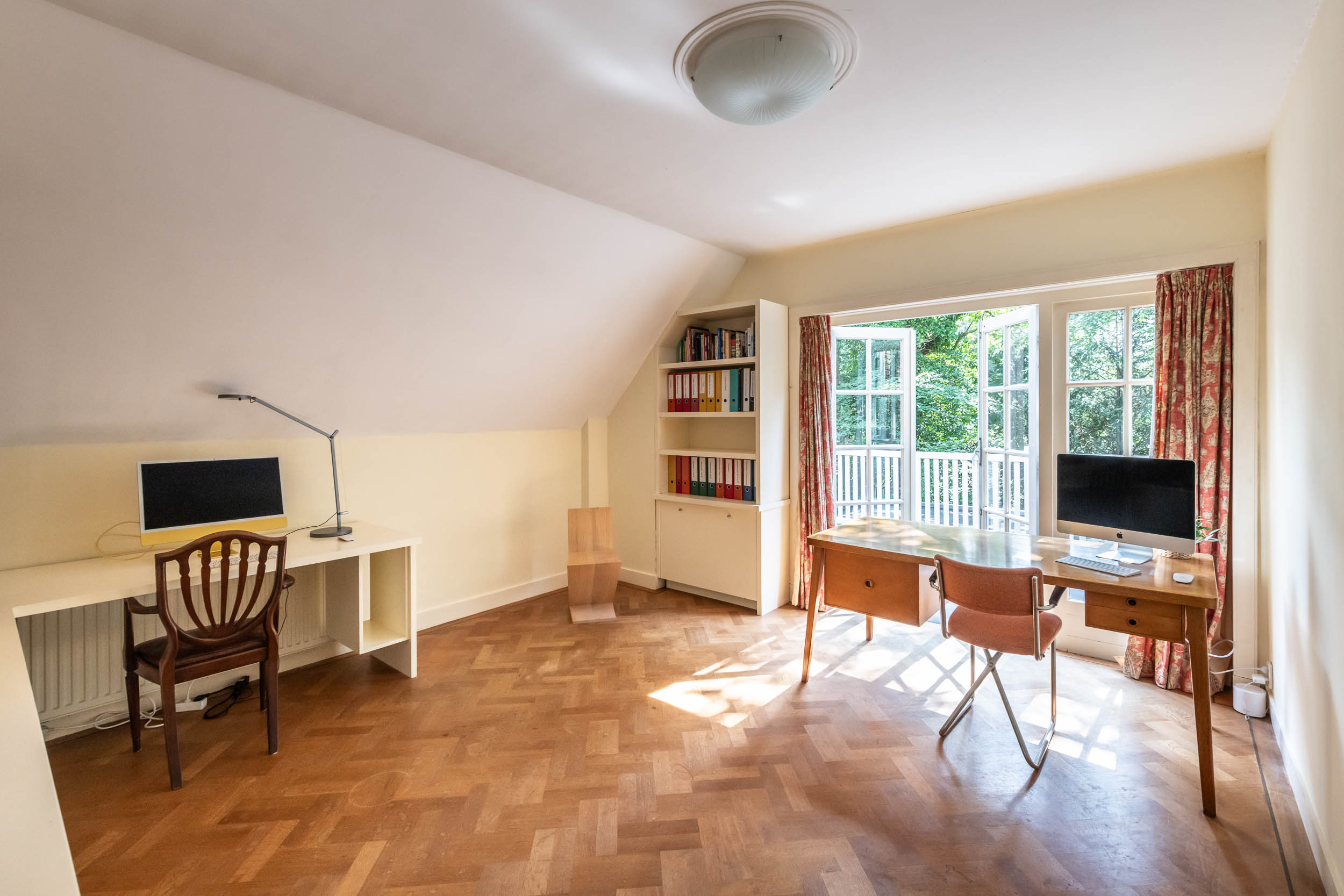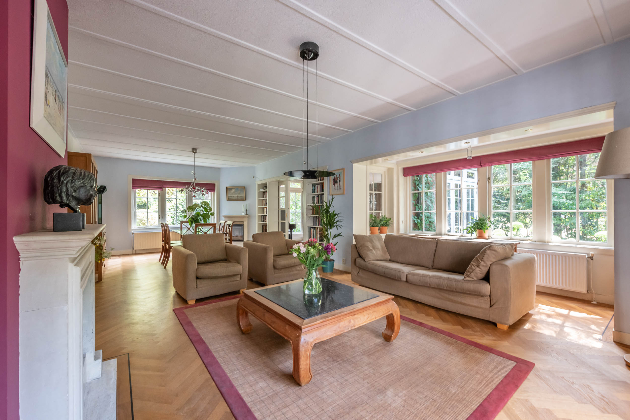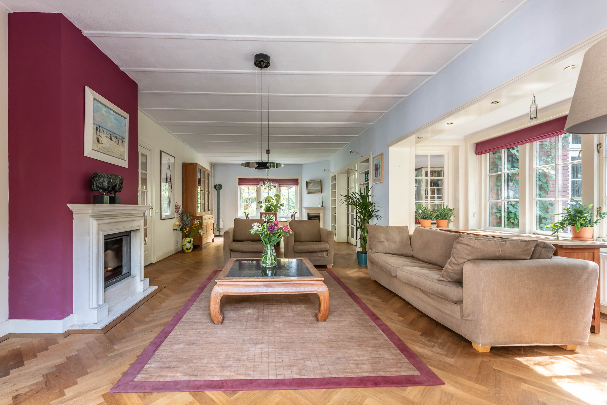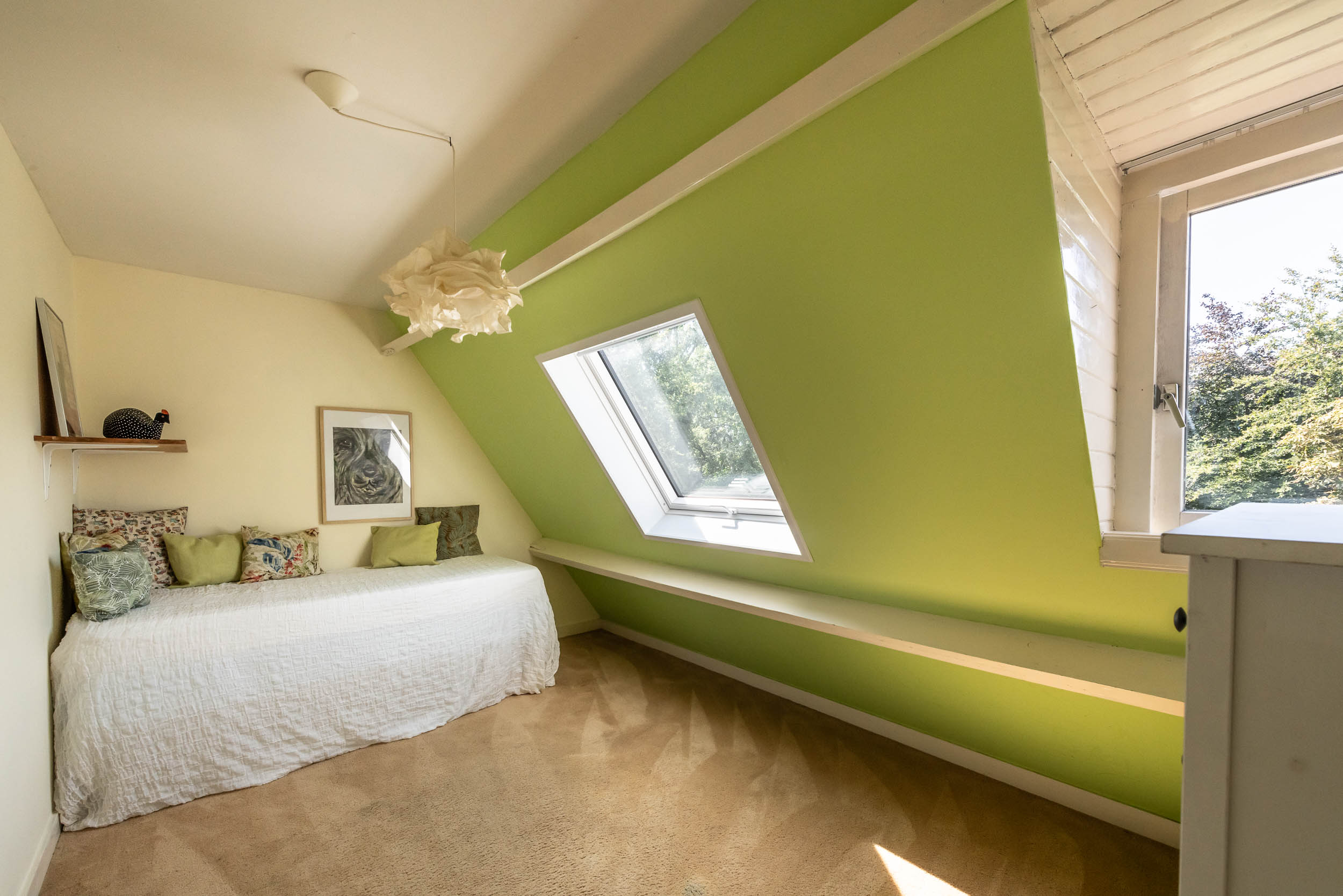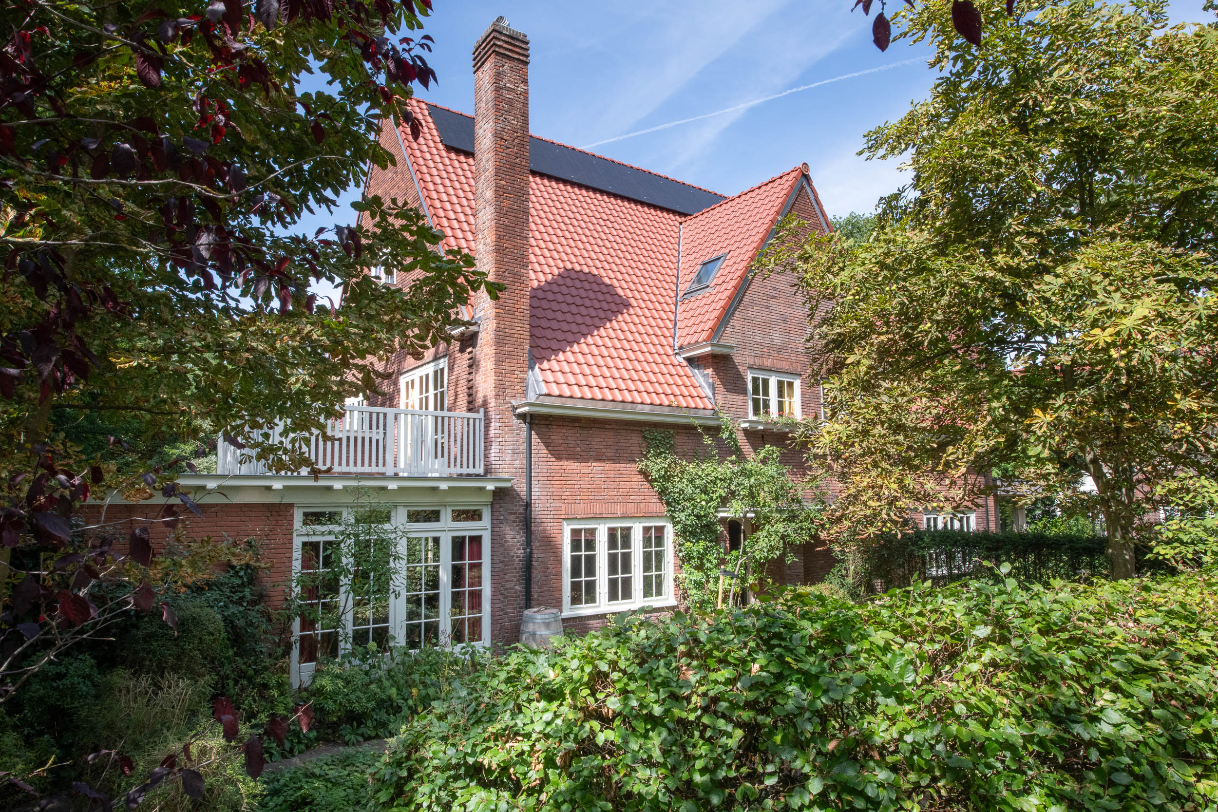 This well-maintained, semi-detached distinctive and uniquely designed villa with swimming pool and garage on a large plot of over 1,000 m² is located on the green and quiet Grenslaan. All living areas are beautifully situated facing the sun (west and south side). A family home par excellence: 6 bedrooms and 2 bathrooms! The extension on the side of the house (which completely matches the style of the main house) has created plenty of space on the ground floor for an extra room, such as a playroom, TV room or study. The beautifully landscaped garden has several terraces, is in a sunny location facing the west and offers complete privacy! At the rear of the garden, where the plot borders Wikkelaan, there is parking space for two cars on private land with two private charging stations.