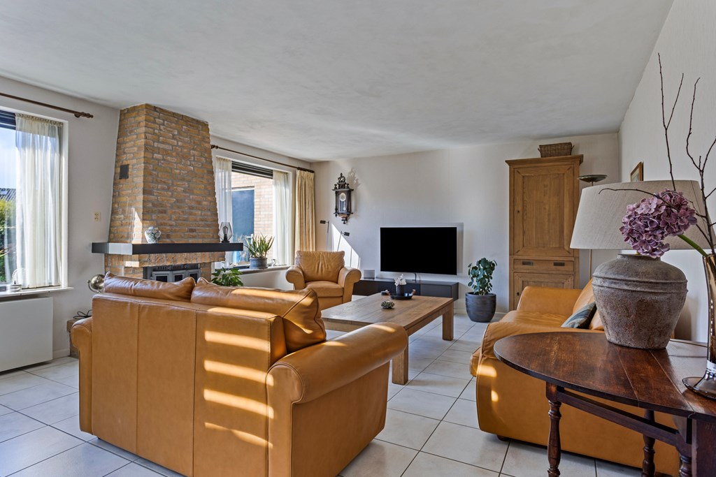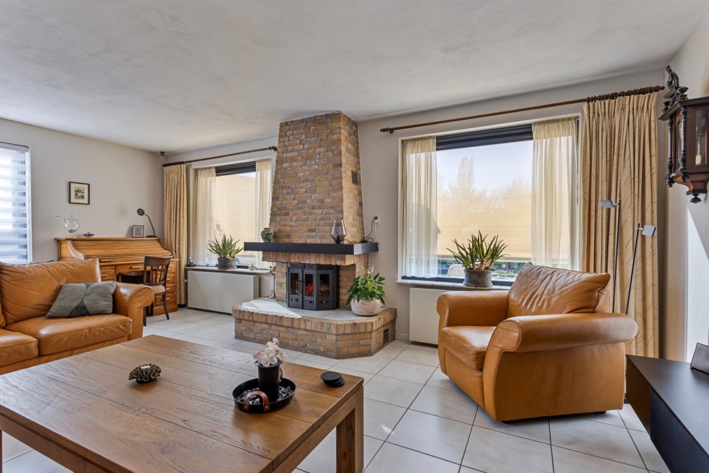 A hallway leads to the second living room at the rear of the house. This room is also well maintained, bright, and features an open fireplace. The space can serve multiple purposes—for example, as a family room, office, or hobby area.