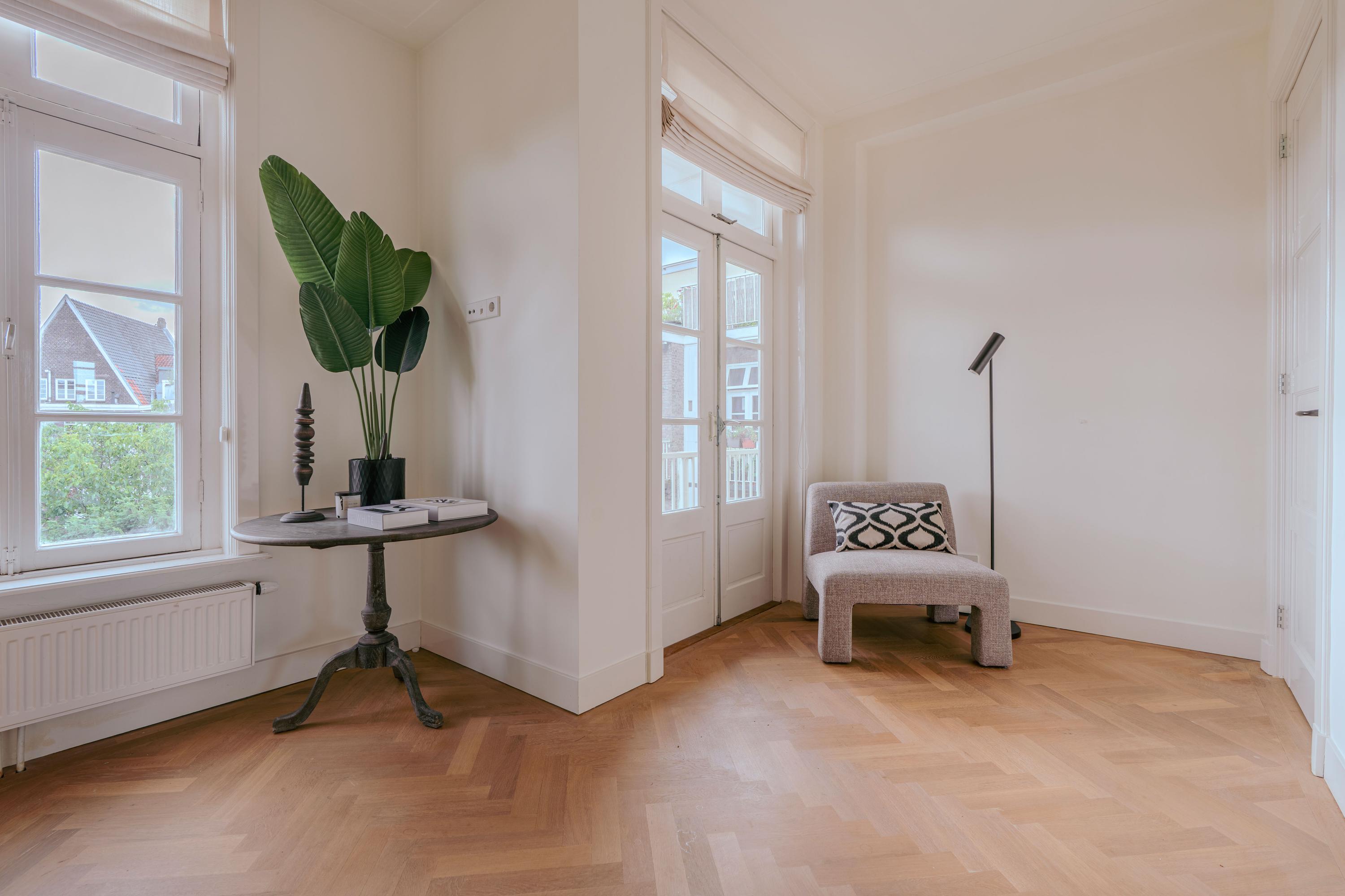 Situated in a quiet street just steps from the vibrant Beethovenstraat, this elegant and light-filled upper-level residence offers a perfect blend of comfort, charm, and functionality. Spread over two floors, the apartment features three bedrooms, a generous living room with open kitchen, and no fewer than three outdoor spaces. An ideal family home for those seeking space, tranquility, and the very best of Amsterdam-Zuid within easy reach.