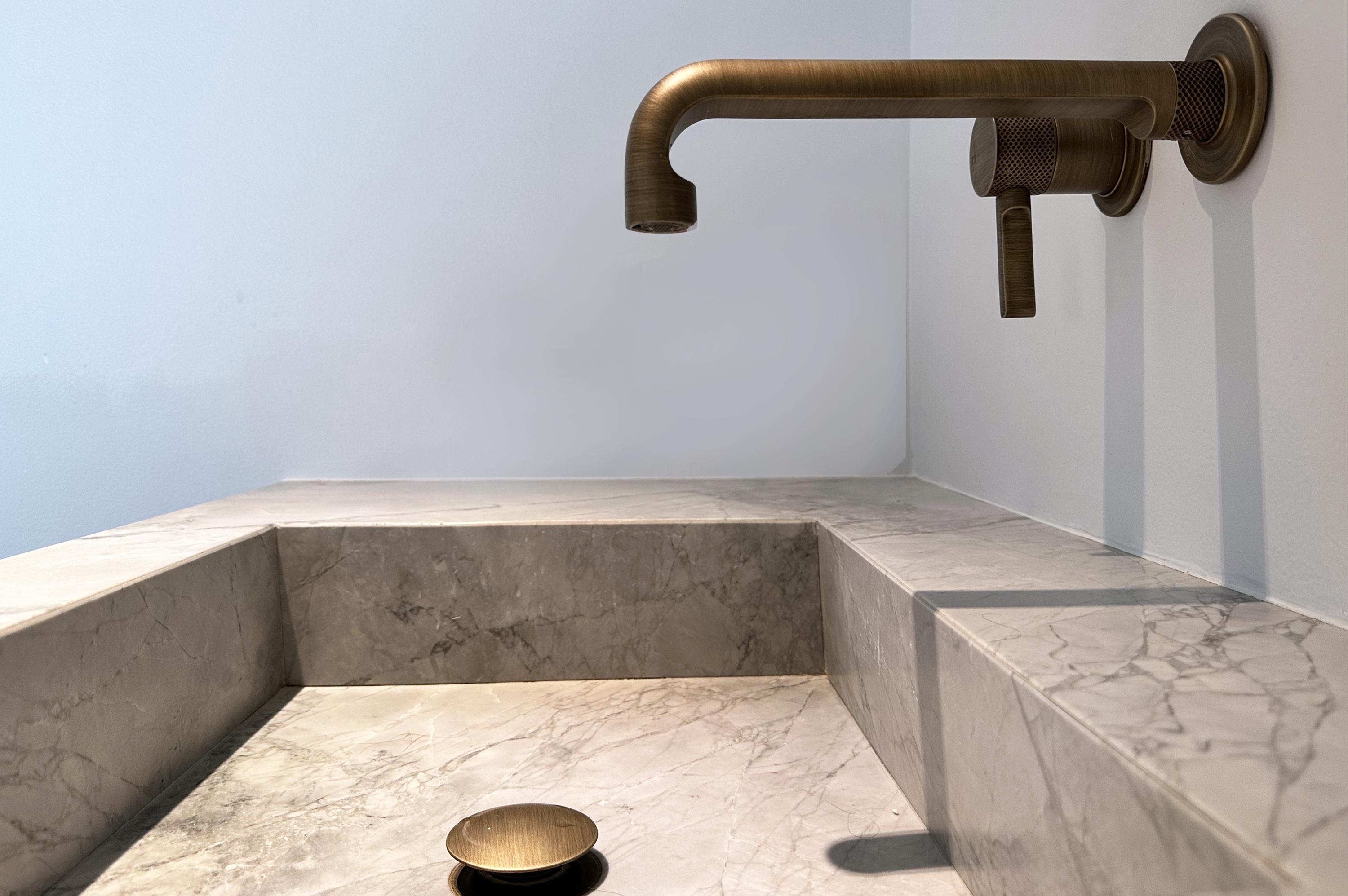 The apartment’s entrance is spacious and has a wonderful marble floor and built-in cupboards. Steel pivot doors open into a hall that gives access to all the rooms on this floor, including a separate toilet room.