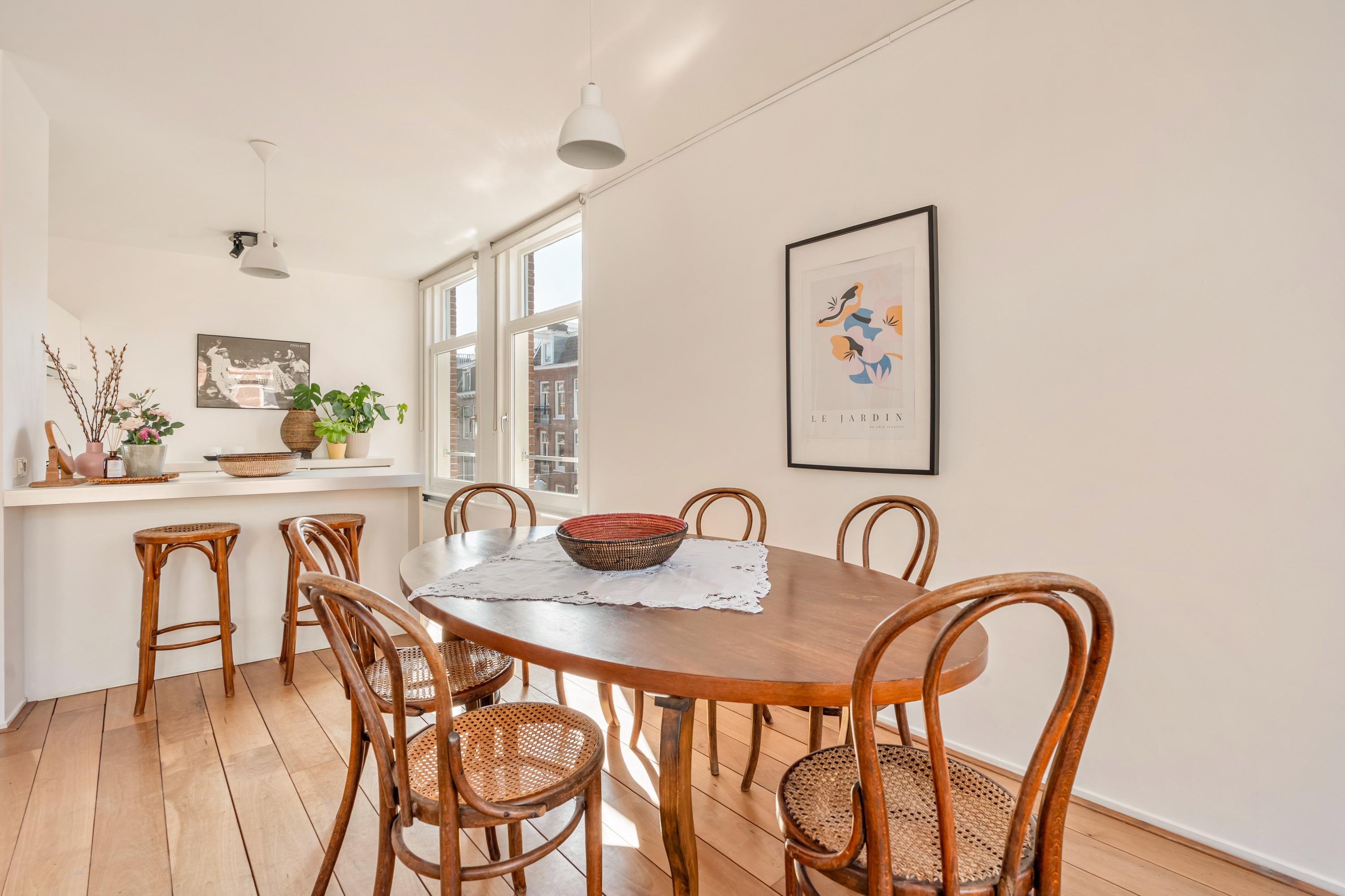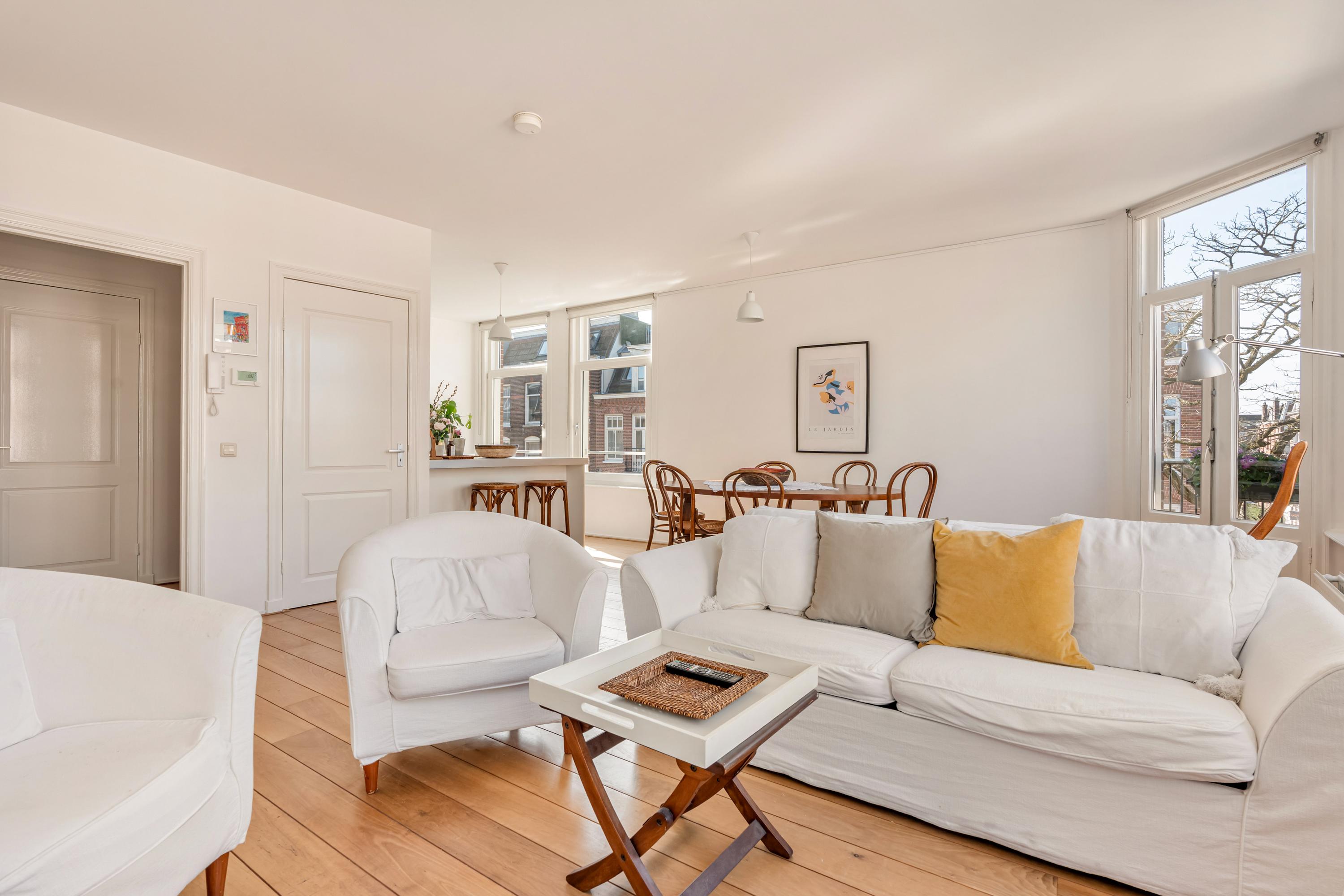 Situated in the highly sought-after Amsterdam Oud-Zuid, we are pleased to offer this charming and well-laid-out corner apartment of approximately 89 m². The apartment is located on the third and fourth floor and features a bright and inviting living room with a modern open-plan kitchen, a French balcony, two spacious bedrooms, and a bathroom with a bathtub on the second floor, as well as a generous rooftop terrace of approximately 12 m². The property is situated on freehold land (no ground lease). With a wide range of shops, restaurants, and cafés within walking distance, you will find yourself in one of Amsterdam’s most vibrant and desirable neighborhoods.