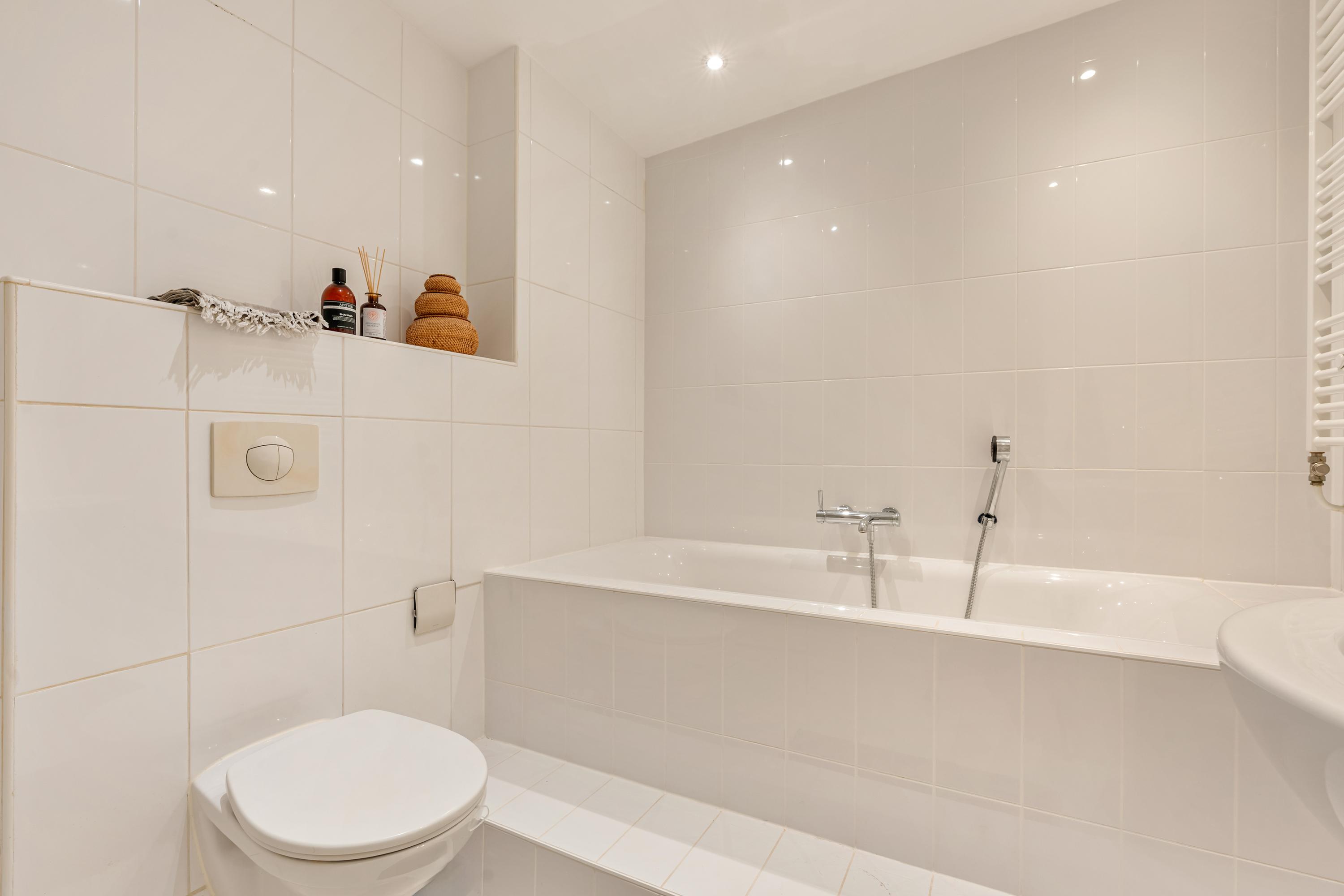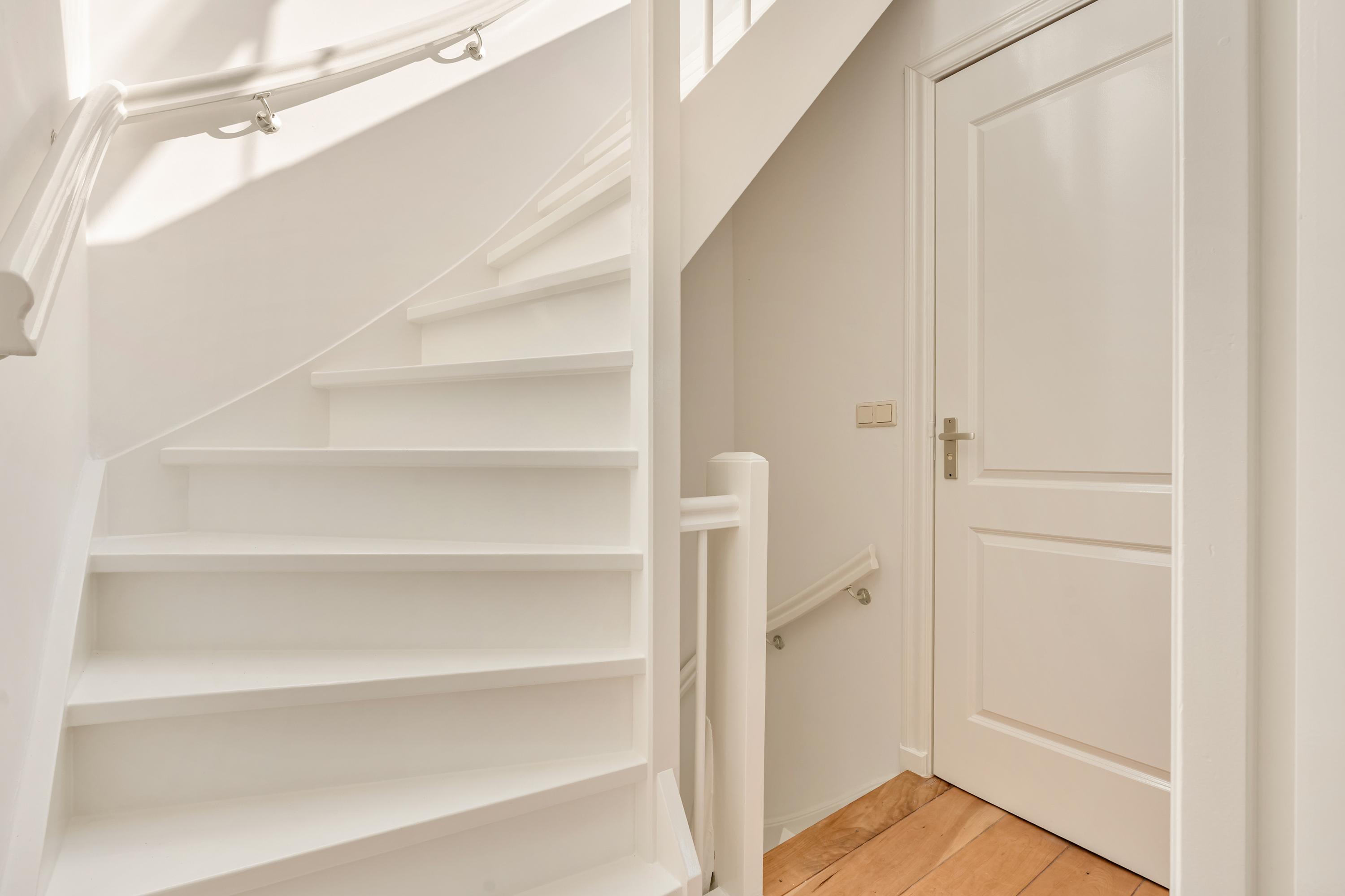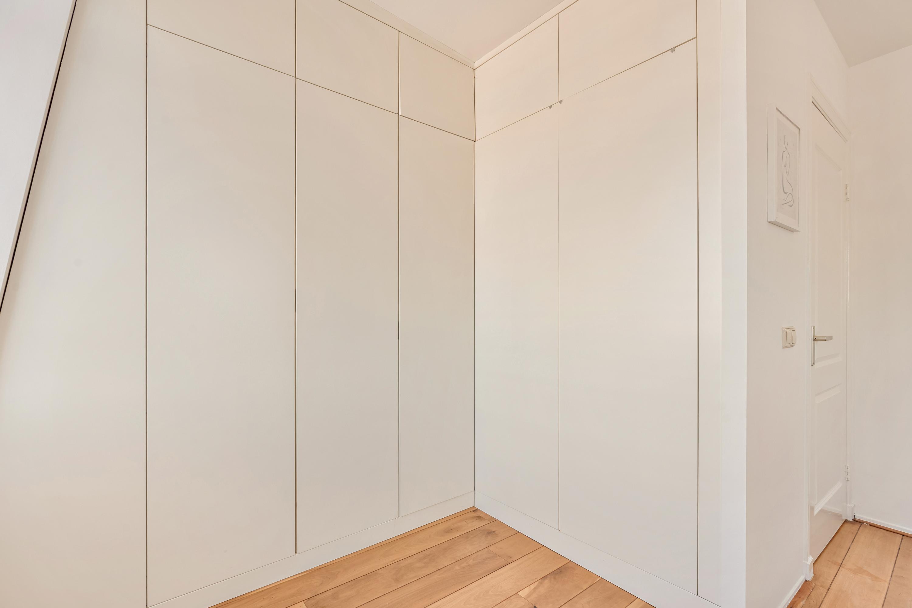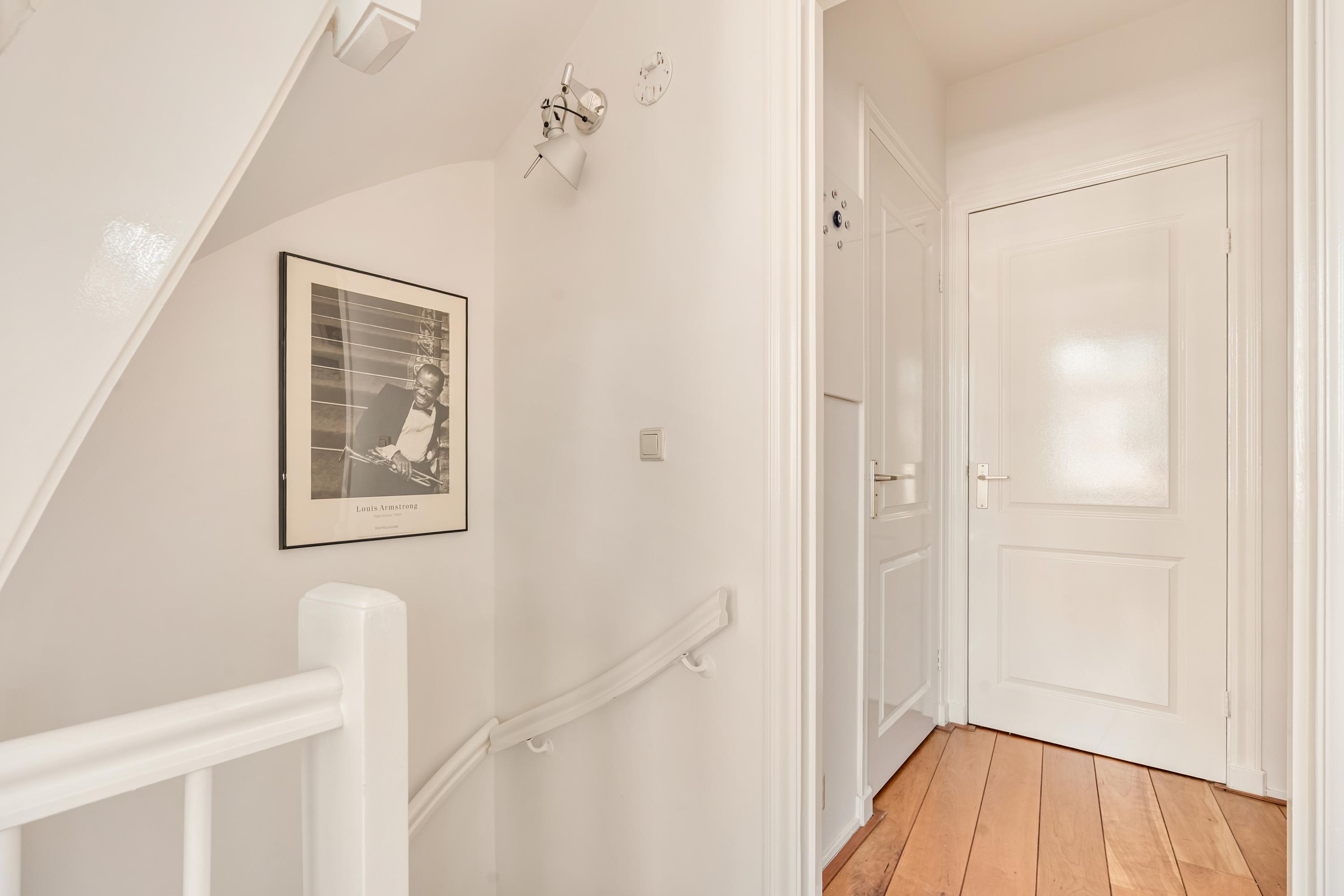 On the Balthasar Floriszstraat side, the apartment features a charming French balcony. On the opposite side, you will find a guest toilet and a practical multifunctional area, currently arranged as a laundry space and wardrobe.