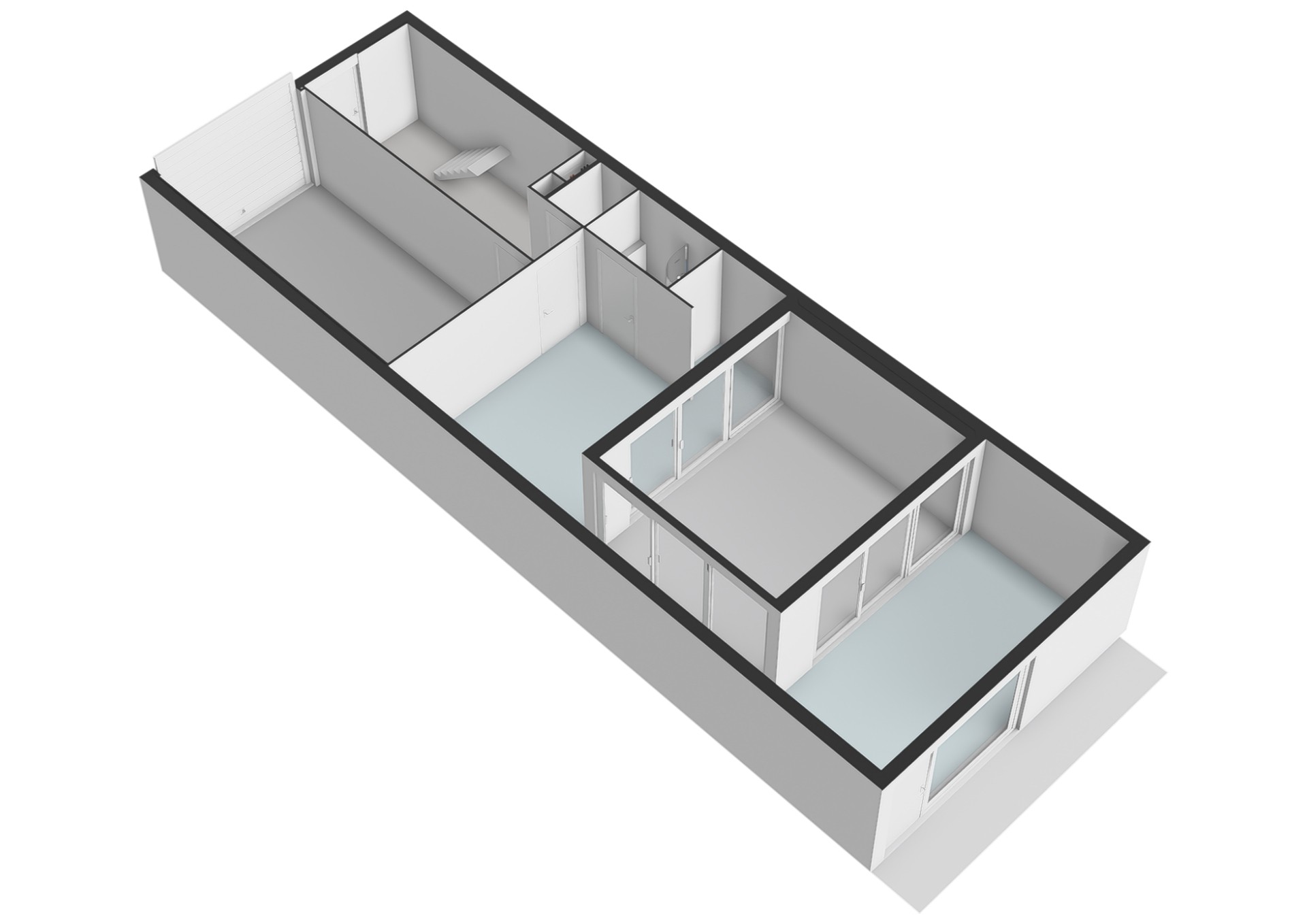 Around the central patio are two spacious rooms that are directly connected to each other. The room at the rear has its own entrance—ideal if you want an atelier, practice or home office without visitors having to walk through your house.
