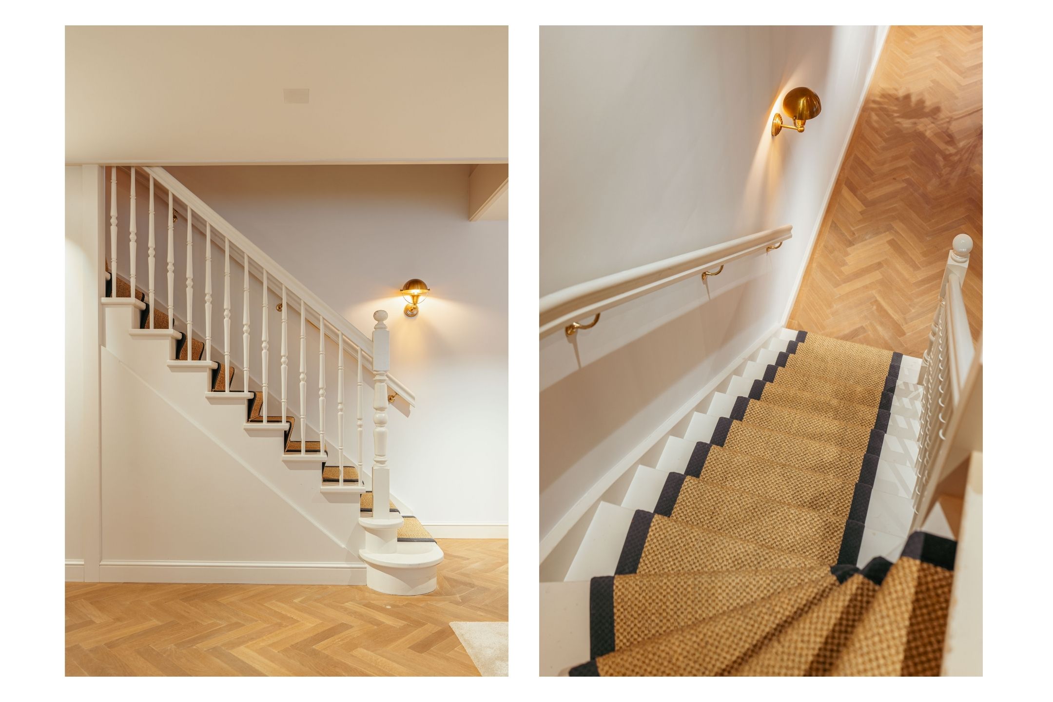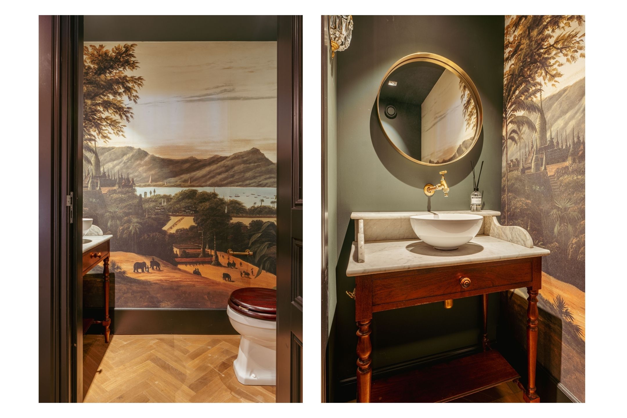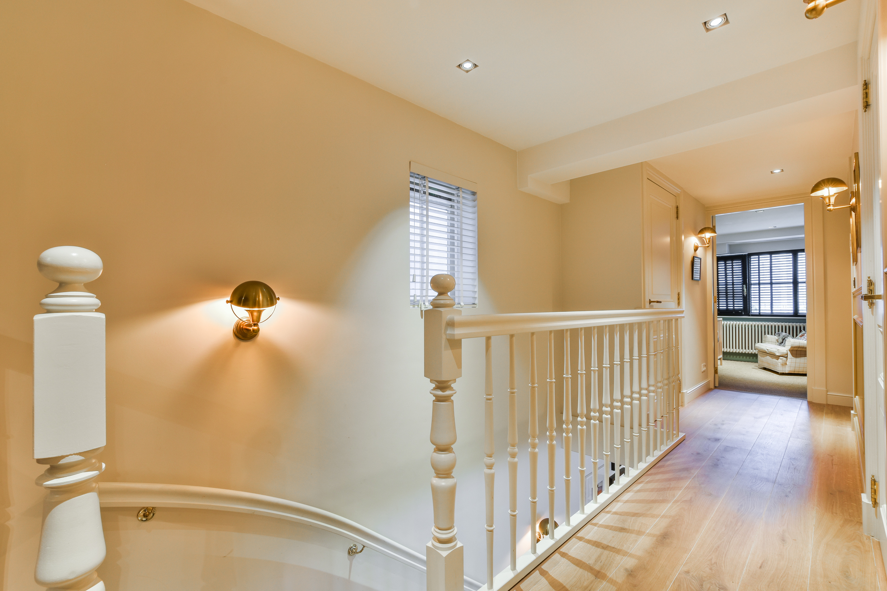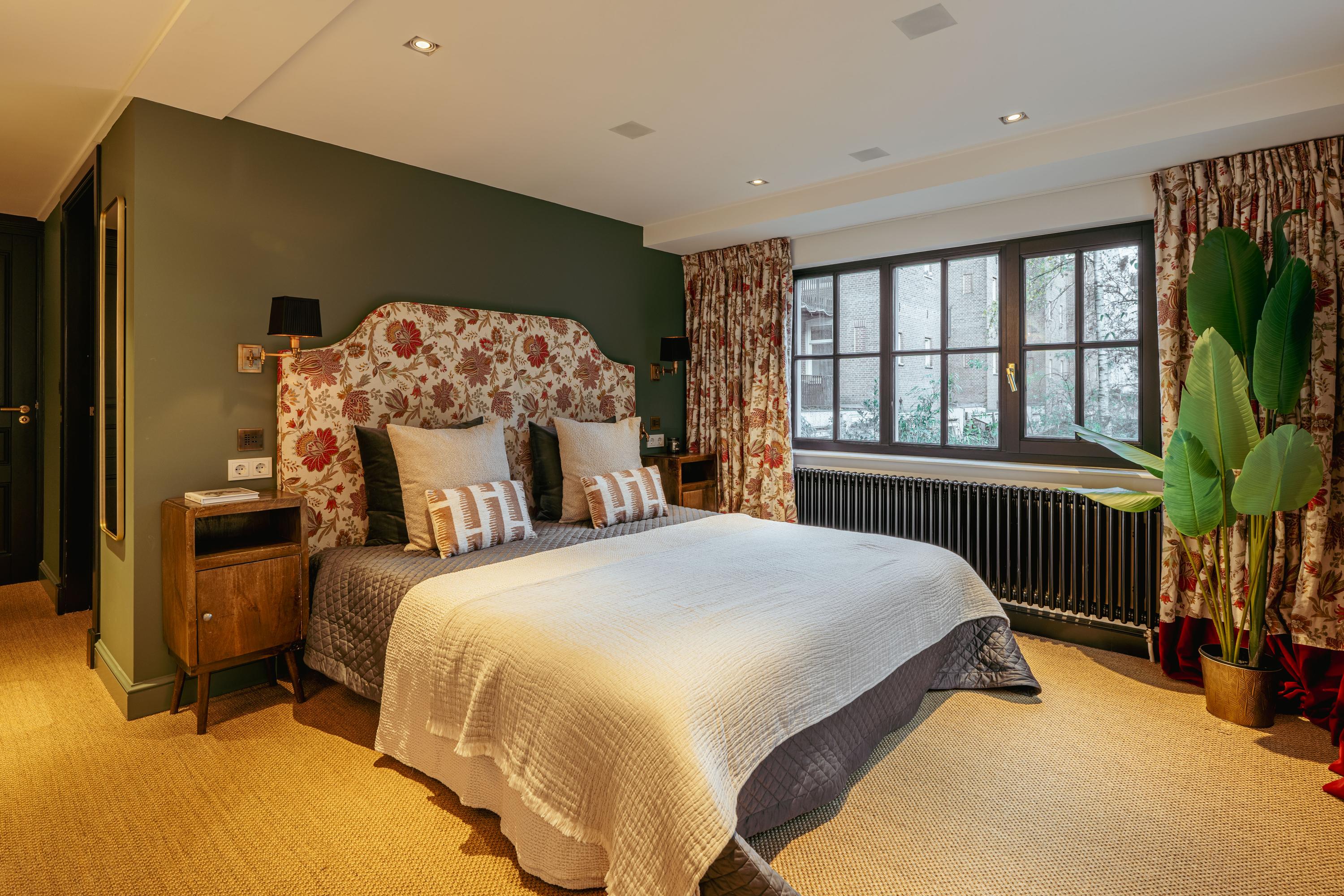 Through an elegant entrance, you step into the spacious and stylishly designed open-plan kitchen. The kitchen is equipped with various built-in appliances, including a dishwasher, gas stove with oven, and a Quooker. The varying ceiling heights in different areas add a playful and dynamic touch to the home. Between the kitchen and the sitting room, there is a study/office space and a large toilet. The living room features a beautiful herringbone parquet floor, custom-built cabinetry, and a projector with a screen. To complete the cozy ambiance, a large gas fireplace has been installed. Both the kitchen and a separate entrance from the street provide access to the guest quarters, which include an additional kitchen, bathroom, and laundry facilities. This space is perfect for accommodating guests or an au pair.