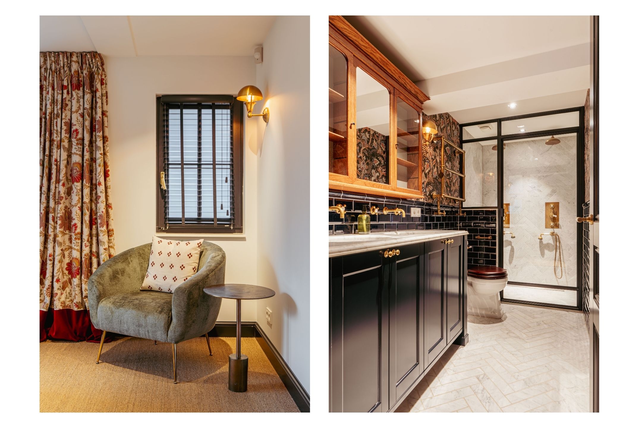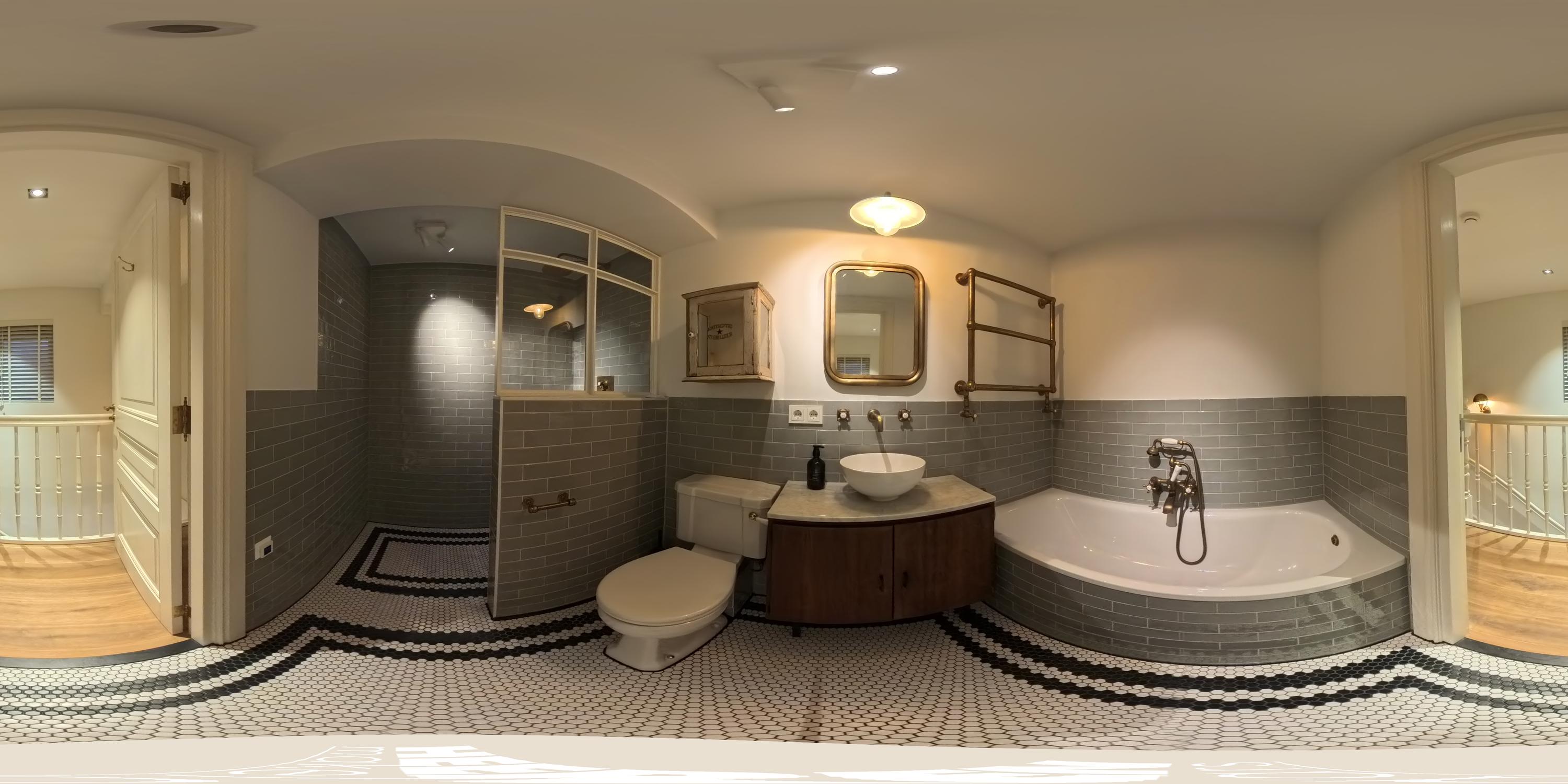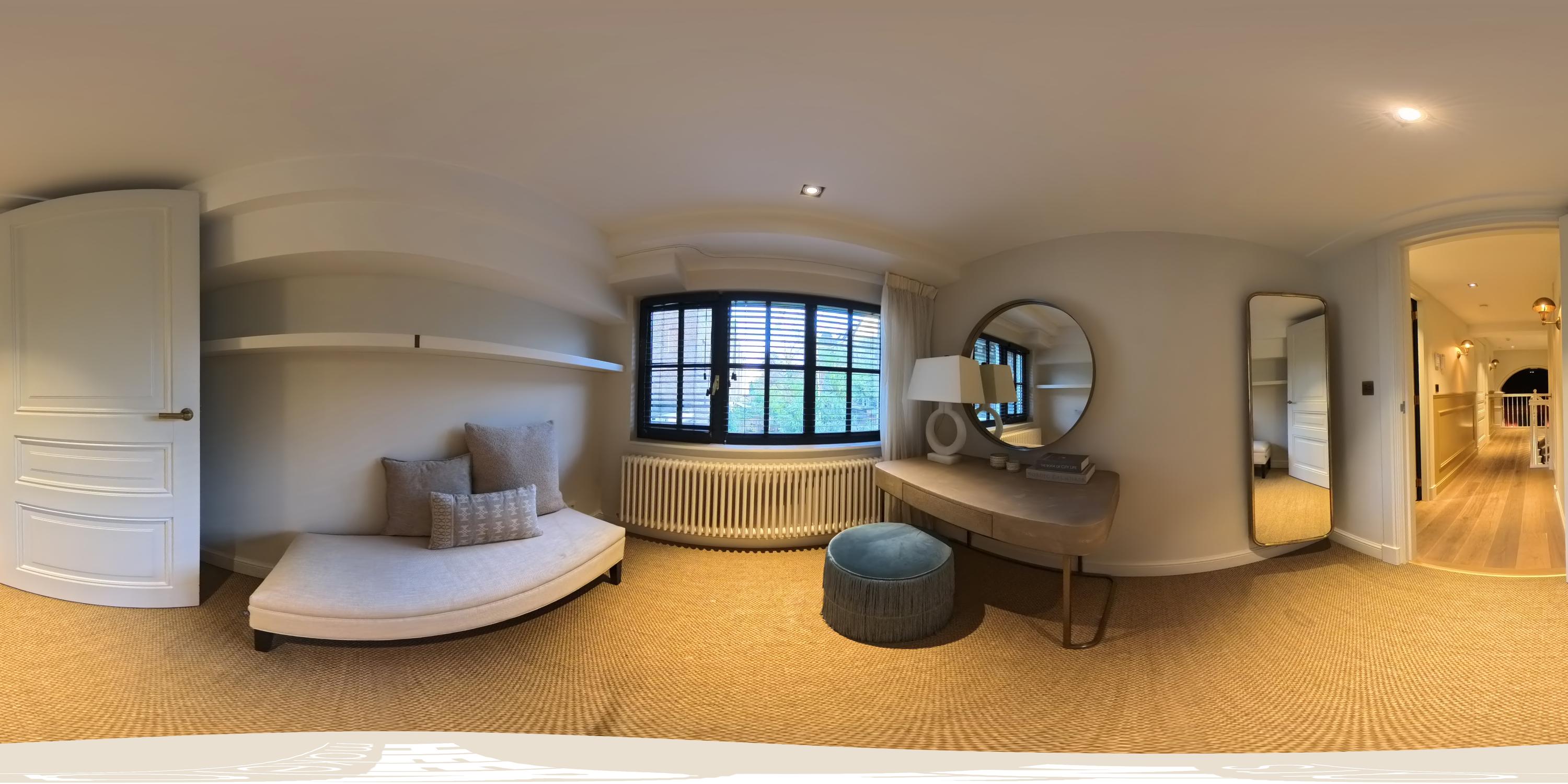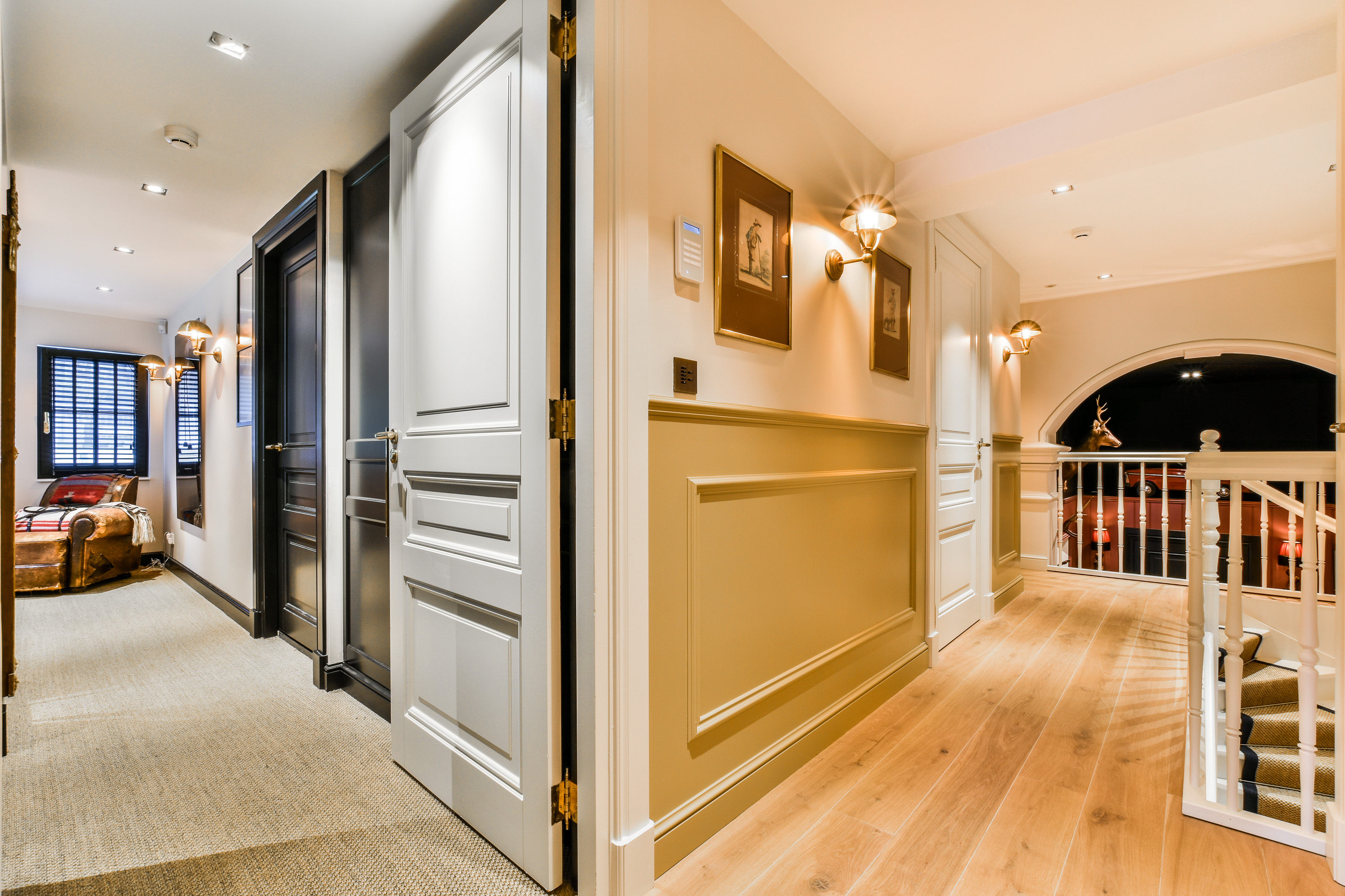 Through an elegant entrance, you step into the spacious and stylishly designed open-plan kitchen. The kitchen is equipped with various built-in appliances, including a dishwasher, gas stove with oven, and a Quooker. The varying ceiling heights in different areas add a playful and dynamic touch to the home. Between the kitchen and the sitting room, there is a study/office space and a large toilet. The living room features a beautiful herringbone parquet floor, custom-built cabinetry, and a projector with a screen. To complete the cozy ambiance, a large gas fireplace has been installed. Both the kitchen and a separate entrance from the street provide access to the guest quarters, which include an additional kitchen, bathroom, and laundry facilities. This space is perfect for accommodating guests or an au pair.