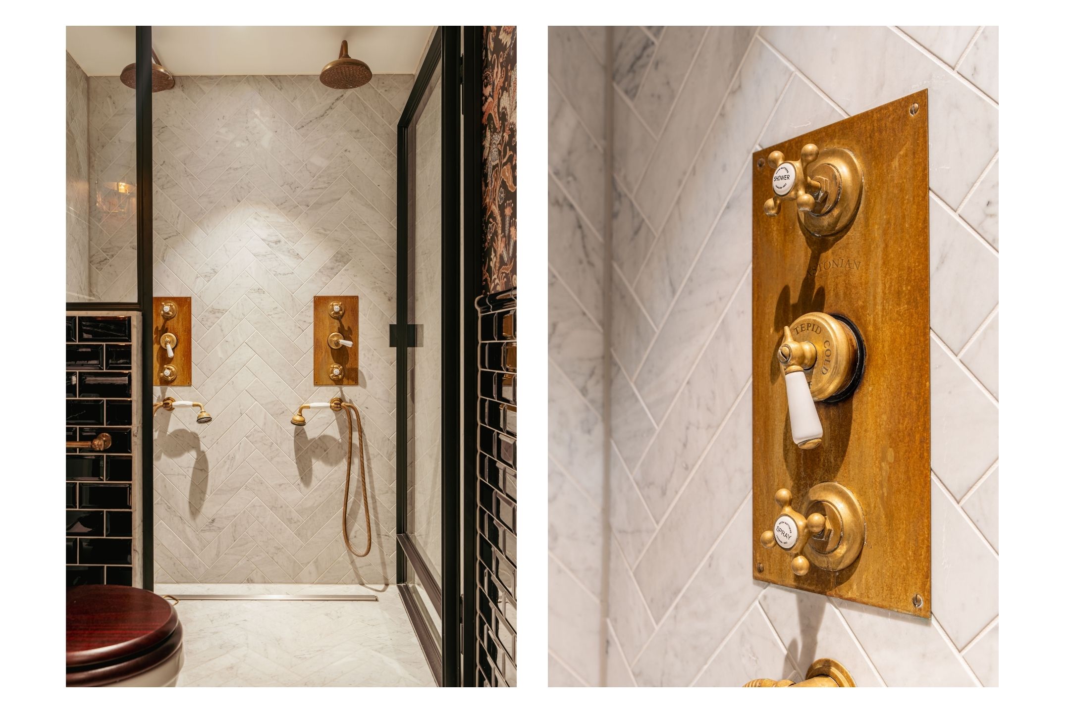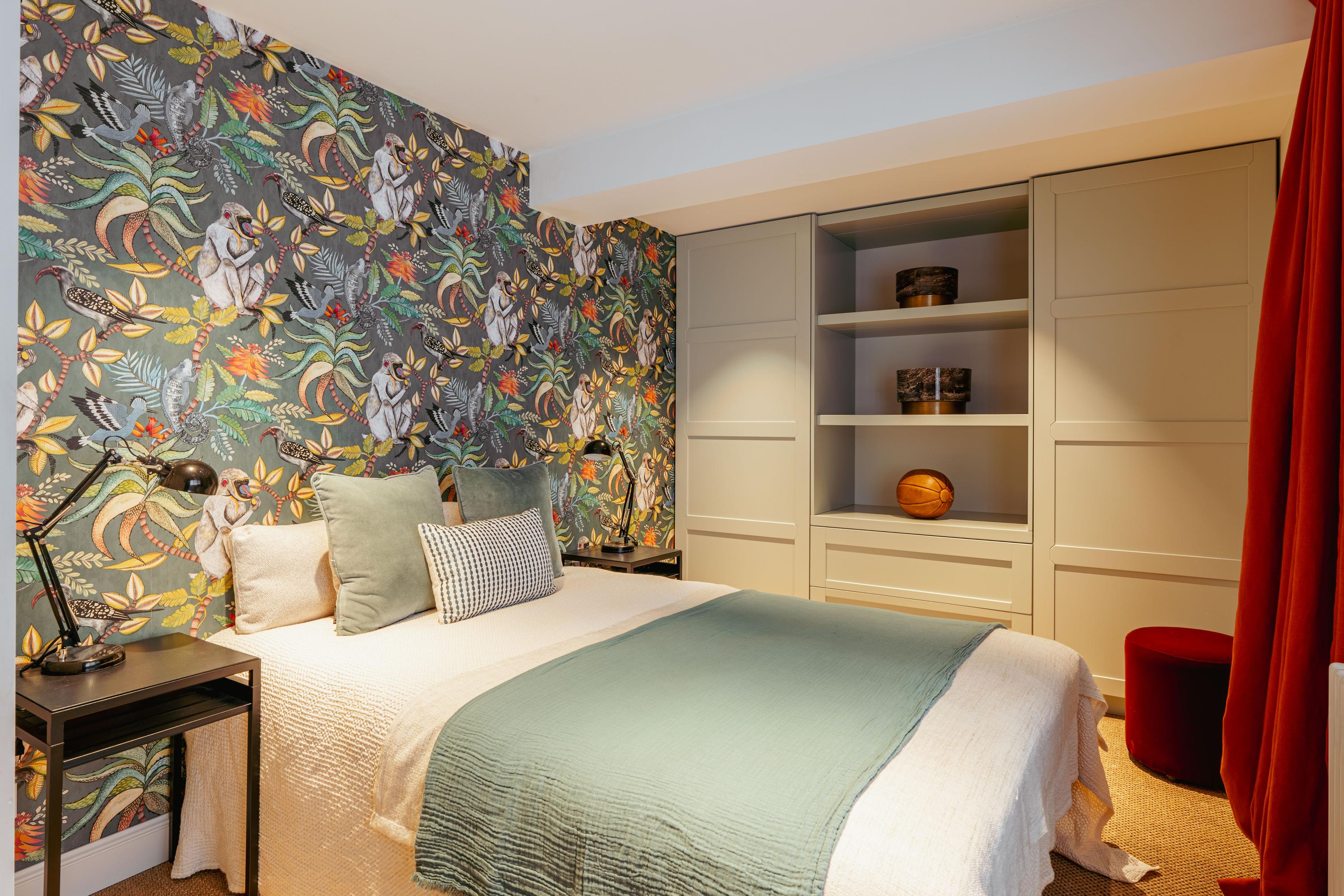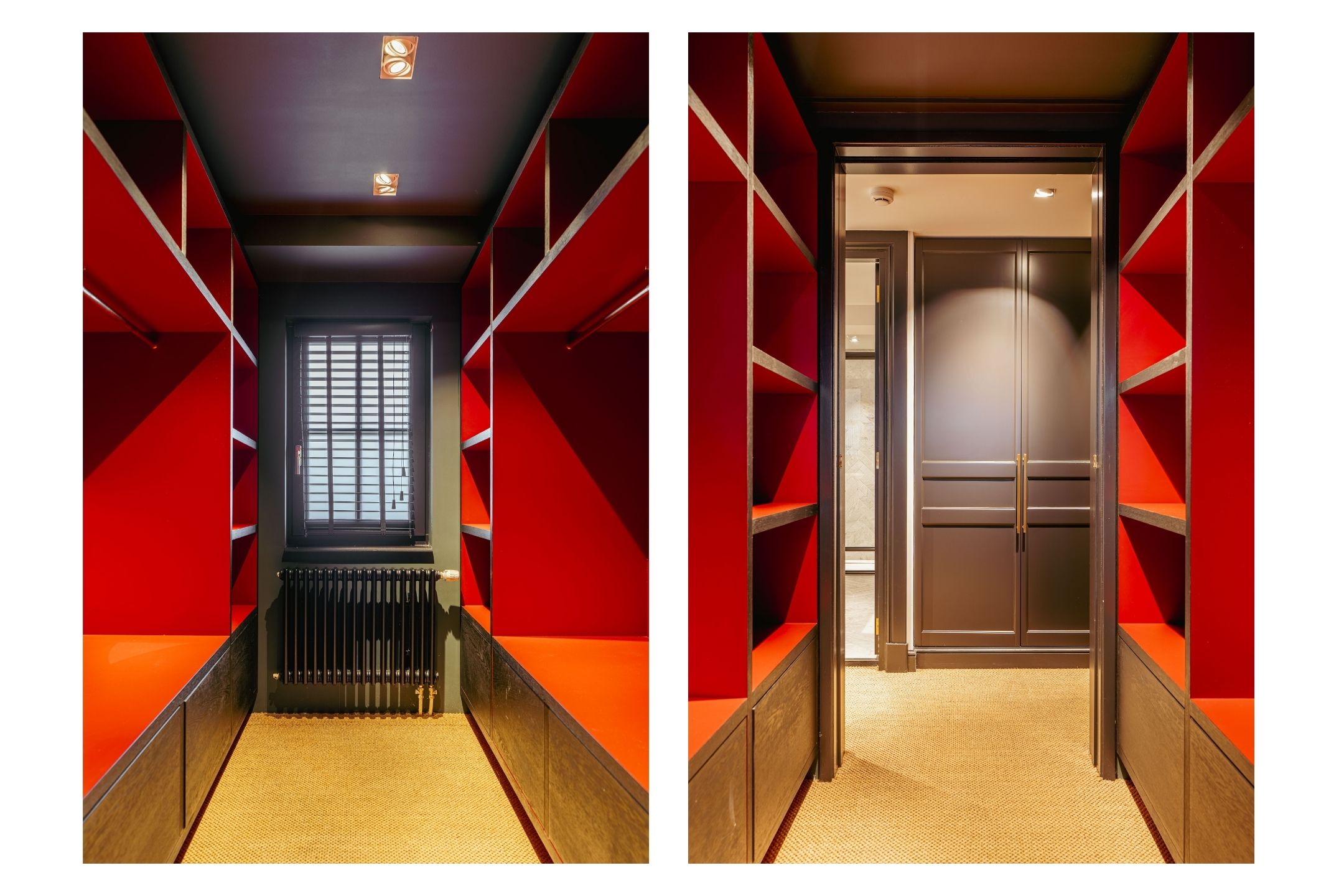 The cohesive style from the ground floor continues upstairs, with a keen eye for detail and high-quality finishes. This level includes three spacious bedrooms, one of which is the master bedroom, as well as two bathrooms featuring amenities such as a bathtub and a rain shower for two. The master bedroom boasts a walk-in closet and built-in audio speakers.