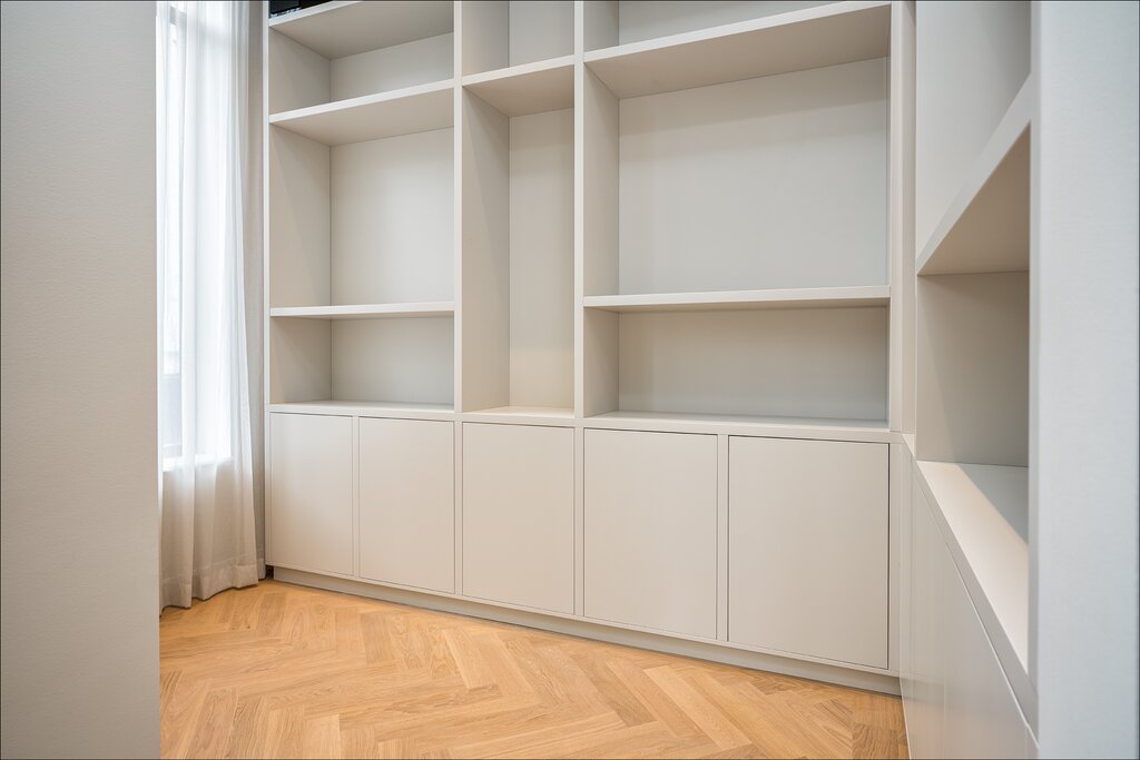 Deze ruime en lichte verdieping heeft ook hier een origineel royaal gedecoreerd plafond. Deze verdieping beschikt over 2 slaapkamers met beide een eigen badkamer