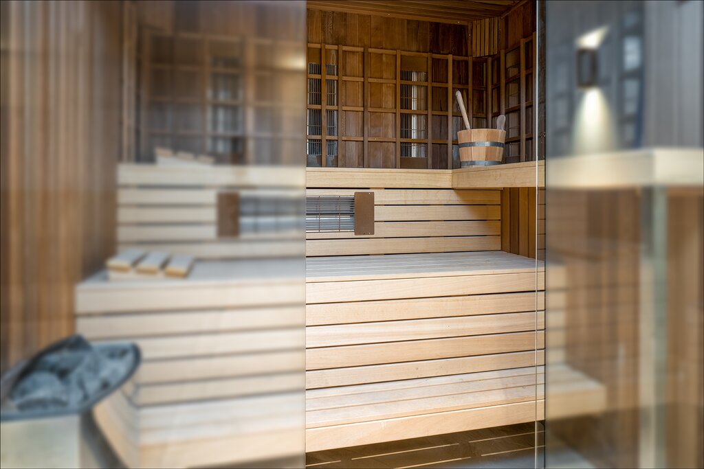 Vanuit de hal is er een open verbinding via een ruime trap naar het souterrain. Hier bevind zich aan de voorzijde de grote sauna met zowel een finse kachel, als een infrarood mogelijkheid. Daarnaast is een grote inloopdouche met een zitje en stoomdouche en daarnaast nog een separaat toilet. De ruime fitnessruimte heeft een separate muziek/entertainment installatie en beschikt over voldoende ruimte voor meerdere fitnessapparaten.