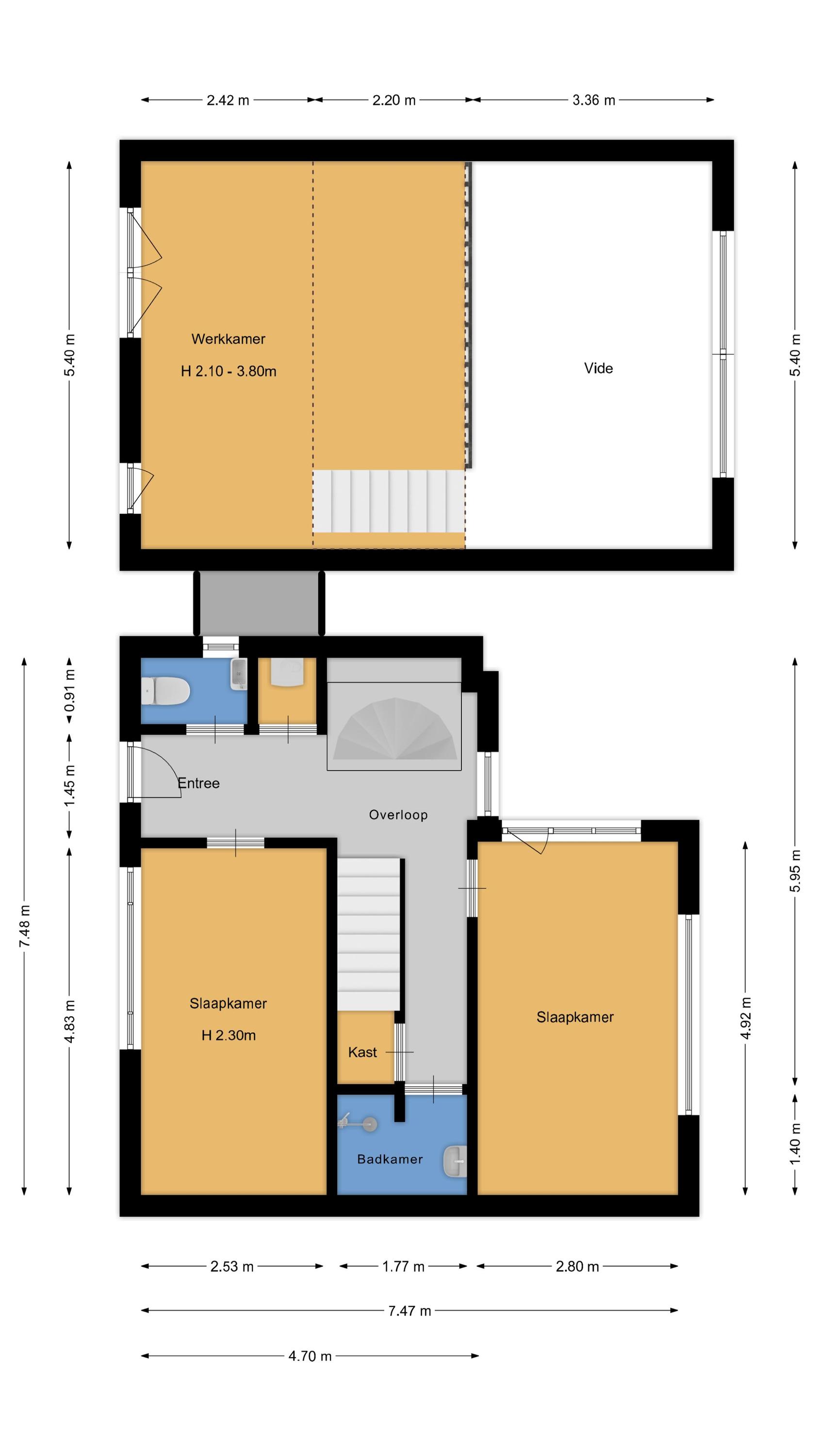 Zaan-style house: entrance, generous office space (mezzanine), stairs to the living area.