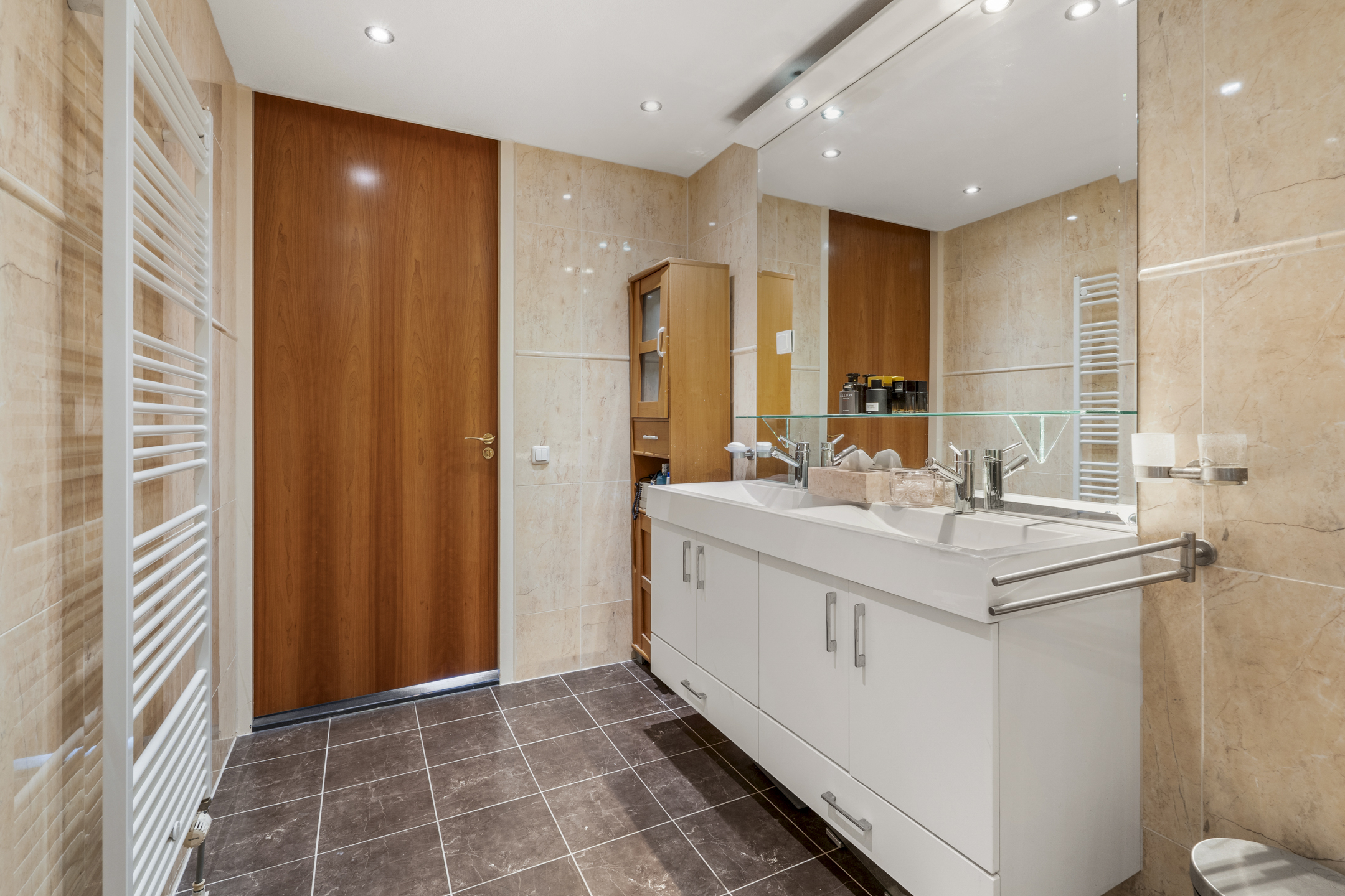 Originally, there was a loggia with a wide folding window, now incorporated into the living space. When weather permits, you can open the entire façade to enjoy the sun. The bedroom and loggia windows are fitted with electrically operated sun screens (southwest-facing).