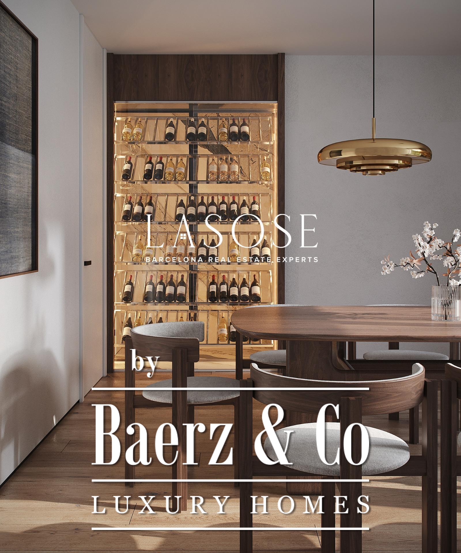 Amenities include individual heating and air conditioning, two parking spaces, guest parking, storage, a concierge, separate service and courtesy entrances, laundry, and a private wine cellar. Set within one of Barcelona's most established residential enclaves, this address offers an assured pace of life, where design and practical comfort quietly coexist.