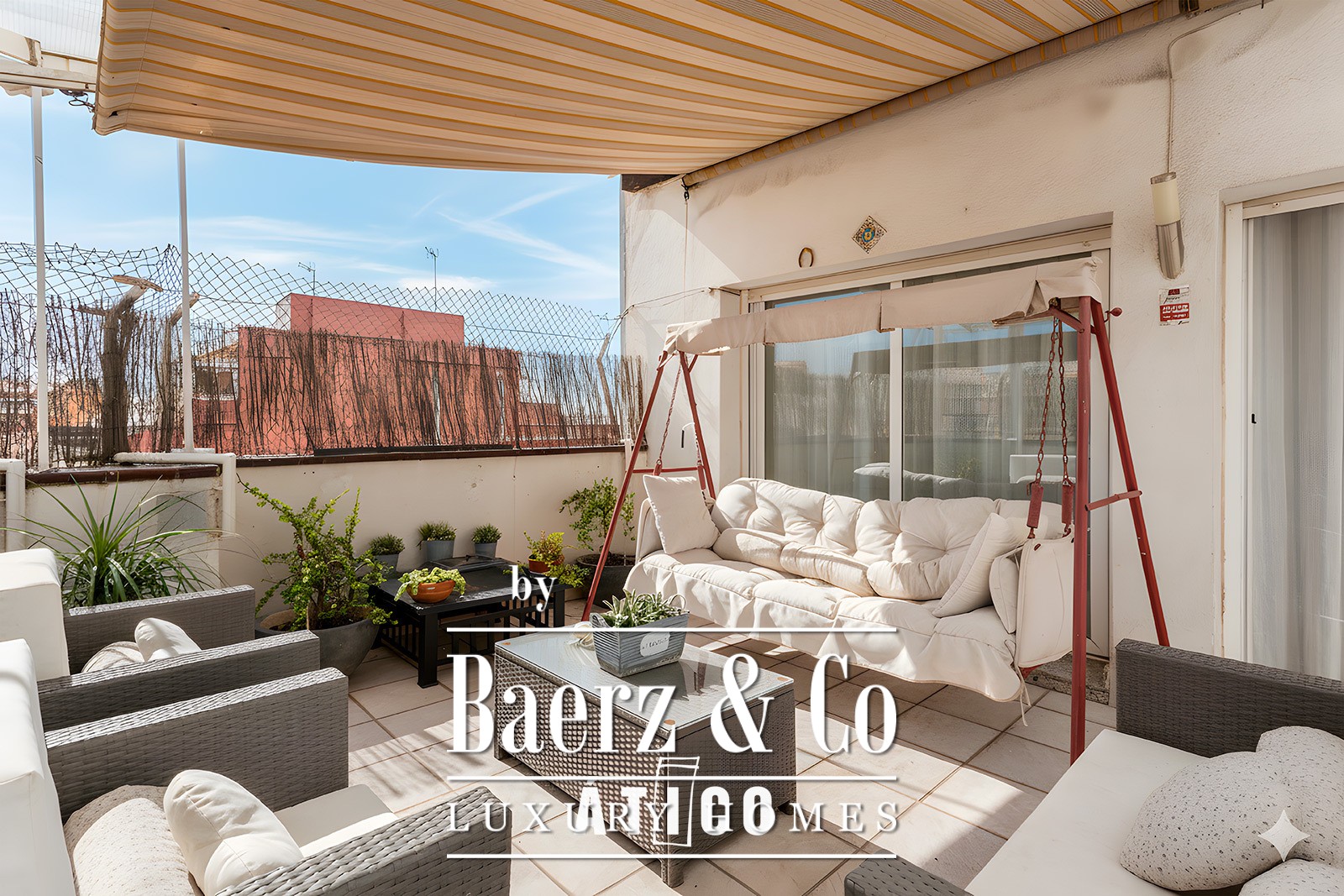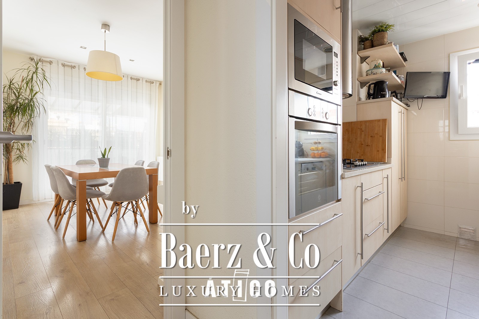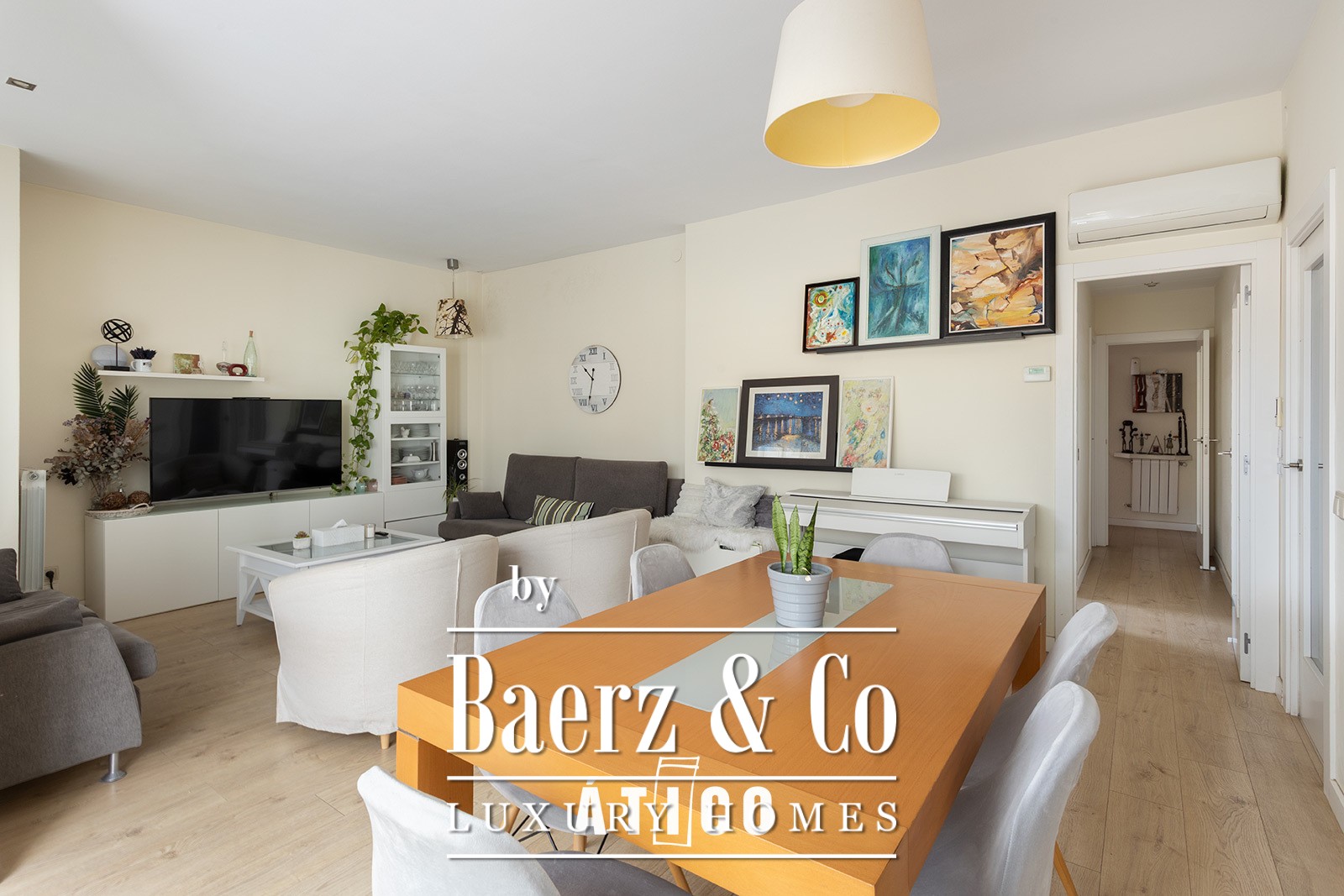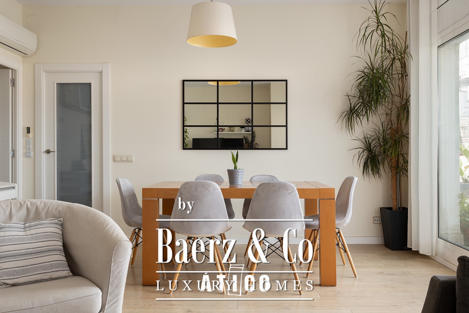 This penthouse, located in the Guinardó neighborhood (Barcelona), offers a balanced combination of spaciousness, light, and tranquility. The home has 85 square meters of interior space and a 60-square-meter private terrace, providing a privileged outdoor space for enjoying the sun and unobstructed views of the city. The apartment features three spacious and bright bedrooms, one of which has a walk-in closet, adding functionality and comfort to the layout. The large living-dining room opens directly onto the terrace, creating a visual and spatial continuity that amplifies the feeling of spaciousness and light. All rooms are exterior-facing, ensuring excellent ventilation and natural light throughout the day. The home is very well maintained, with pleasant spaces, carefully selected materials, and an optimal overall condition. It has air conditioning and heating, providing thermal comfort throughout the season.