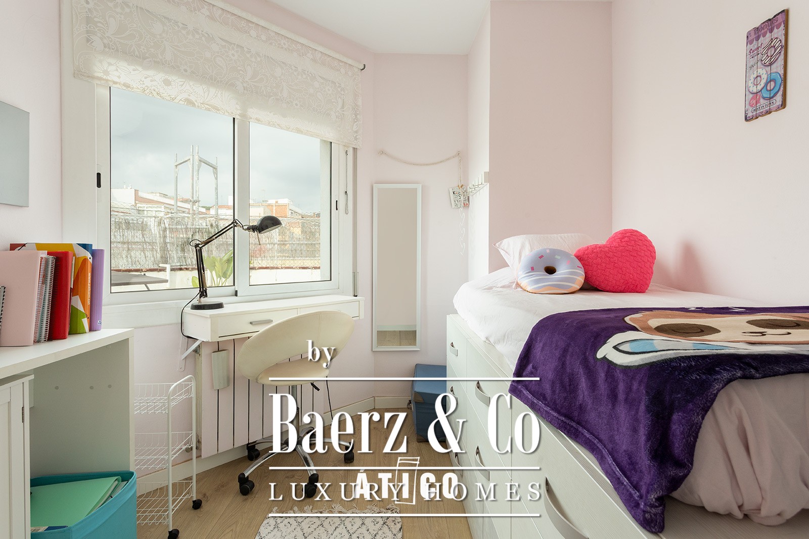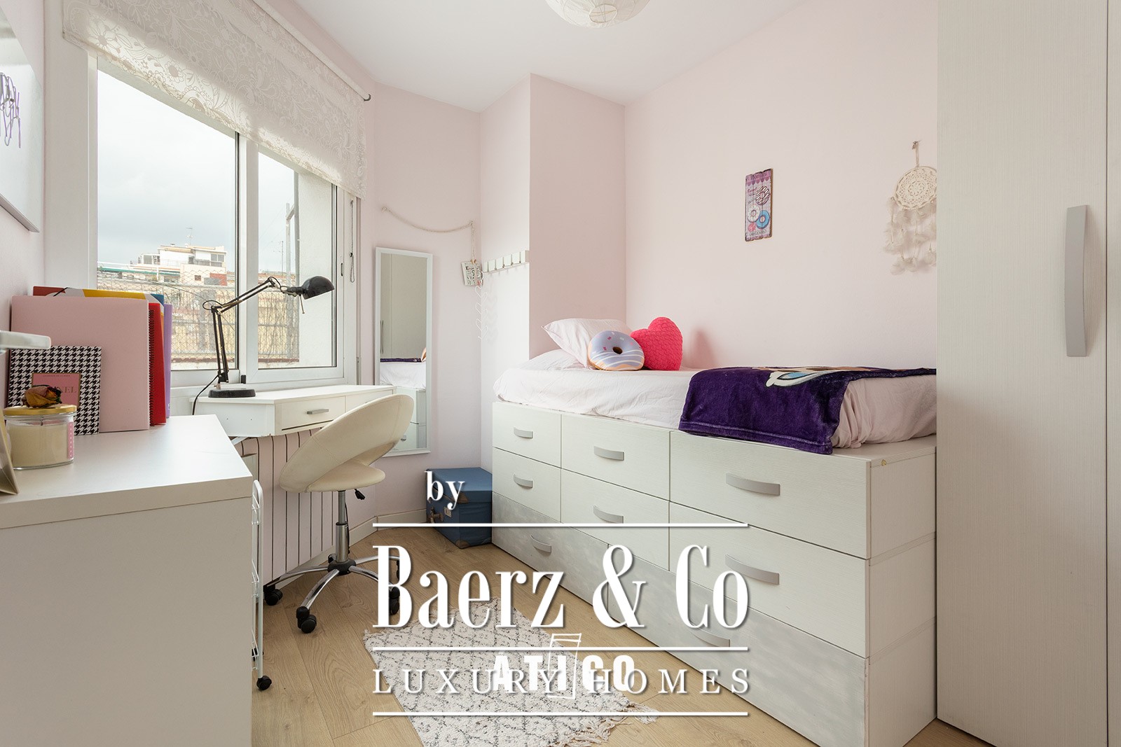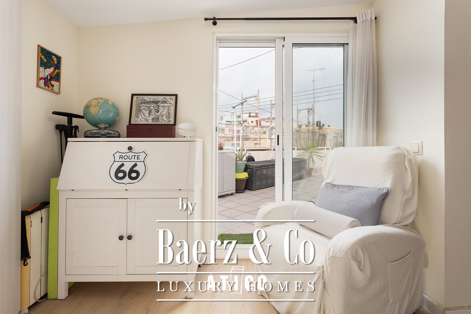 Its location on a quiet street in Guinardó ensures a quiet environment free from noise pollution, promoting a relaxed and pleasant lifestyle. From the terrace, you can enjoy open and unobstructed views. This feature, along with the orientation and spaciousness of the outdoor space, makes the terrace one of the property's main attractions. Regarding its surroundings, the penthouse is very well connected to the rest of the city via public transportation and main access roads. Its location allows easy access to universities, educational centers, cultural venues, and green areas, making it a particularly suitable option for families or professionals looking to combine residential tranquility with proximity to the main points of urban interest. In short, it is a bright, quiet, and functional home that offers an ideal balance between indoor and outdoor space, comfort, and quality of life, in one of Barcelona's most pleasant and well-connected neighborhoods.