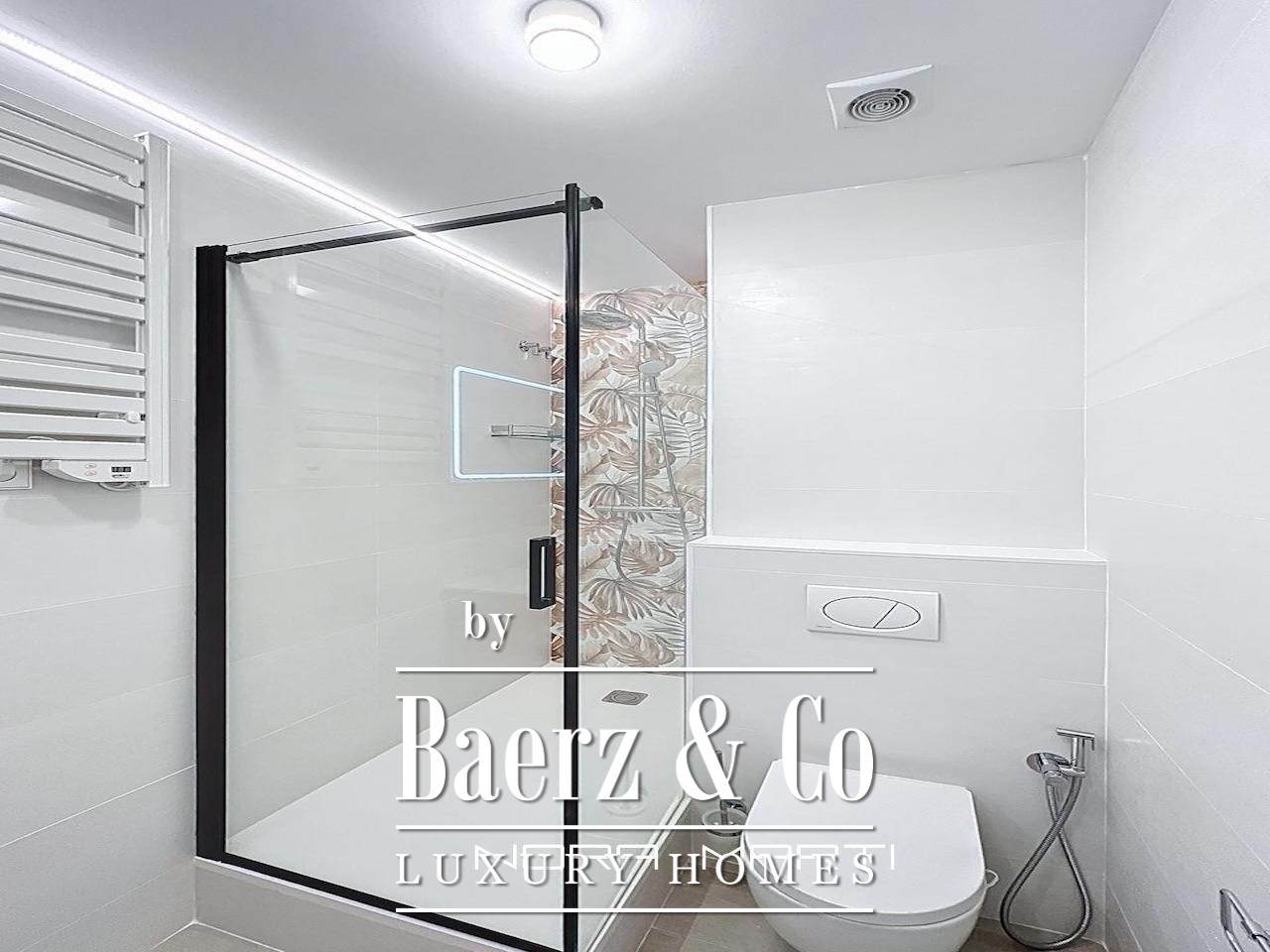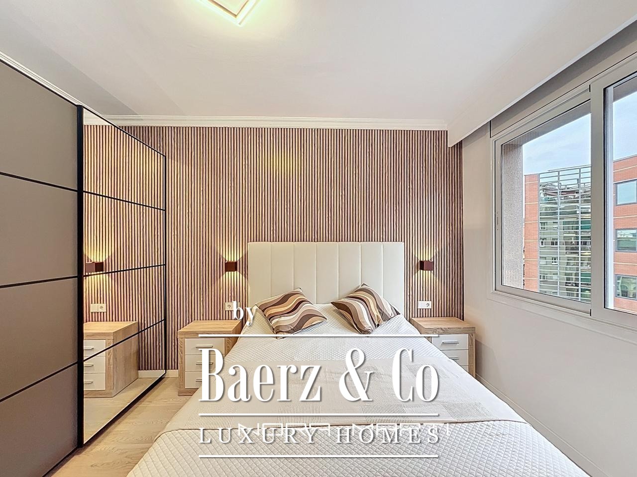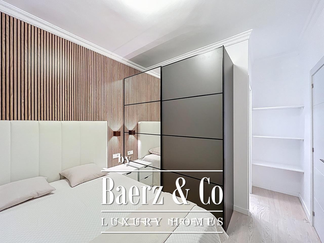 Wooden floors and Climalit double-glazed exterior windows provide thermal and acoustic insulation, while split air conditioning, heat pumps in every room, and low-consumption electric heating create a refined, comfortable environment. This apartment is offered fully furnished and ready for immediate occupancy, reflecting a lifestyle where every detail counts. The property’s sixth-floor position maximizes privacy, security, and natural light throughout the day, culminating in a tranquil city retreat.