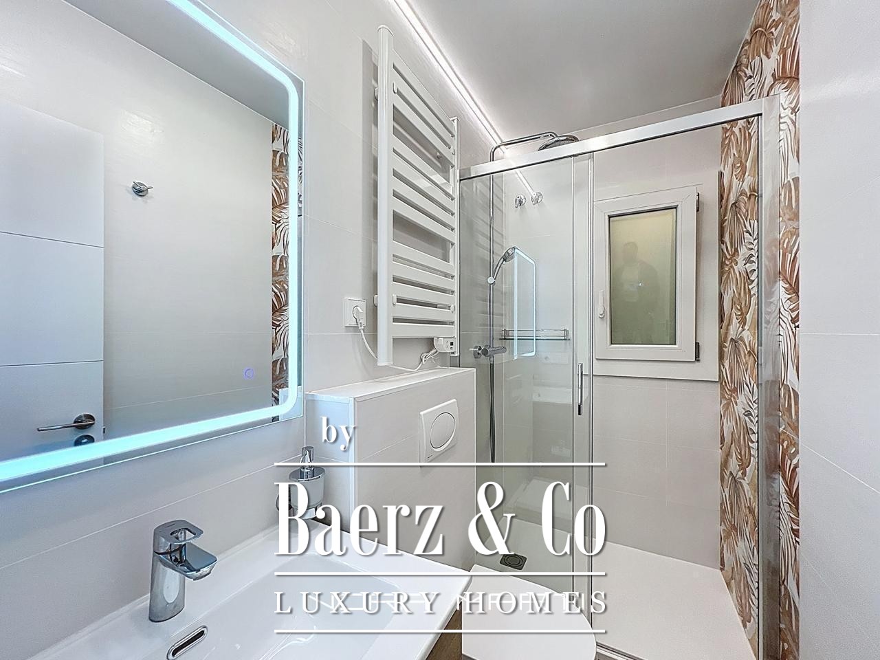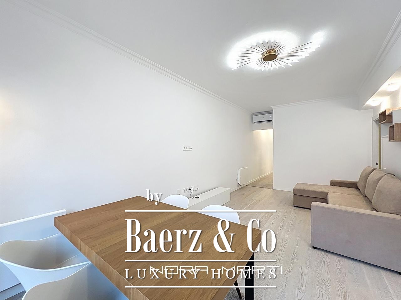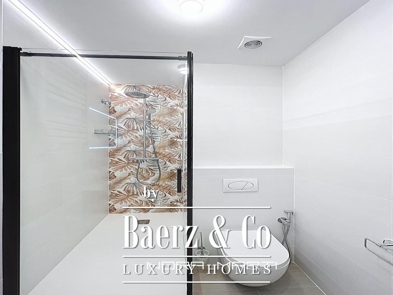 Wooden floors and Climalit double-glazed exterior windows provide thermal and acoustic insulation, while split air conditioning, heat pumps in every room, and low-consumption electric heating create a refined, comfortable environment. This apartment is offered fully furnished and ready for immediate occupancy, reflecting a lifestyle where every detail counts. The property’s sixth-floor position maximizes privacy, security, and natural light throughout the day, culminating in a tranquil city retreat.