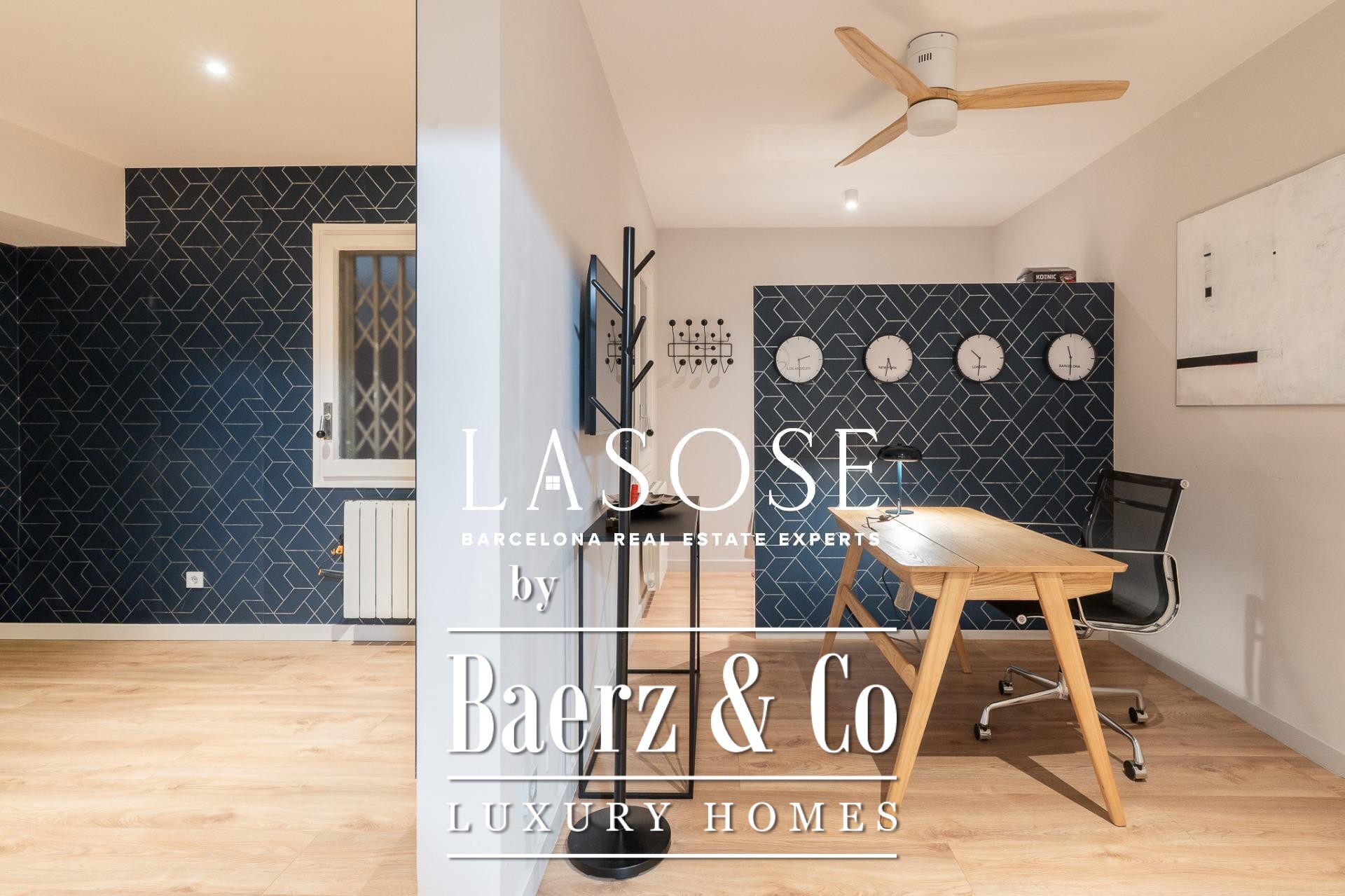Gas heating, original wooden windows, parquet floors, and curated appliances set an understated but refined atmosphere. The building, designed by Antoni de Moragas Gallissà and Francesc de Riba Salas in 1973, stands as a landmark of Barcelona’s rationalist architecture, providing concierge service and lift access.