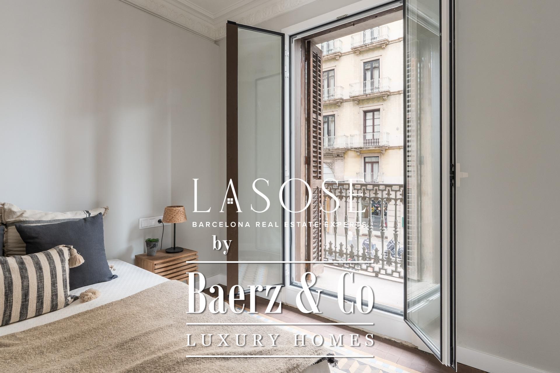 The restored building is equipped with an elevator, alarm system, and modern amenities including a terrace and balcony. Living here, Passeig de Gràcia and Las Ramblas are at your doorstep, alongside the city’s finest boutiques, gastronomy, and transport links. This apartment is a singular opportunity for those seeking both heritage and elevated city living in Barcelona.