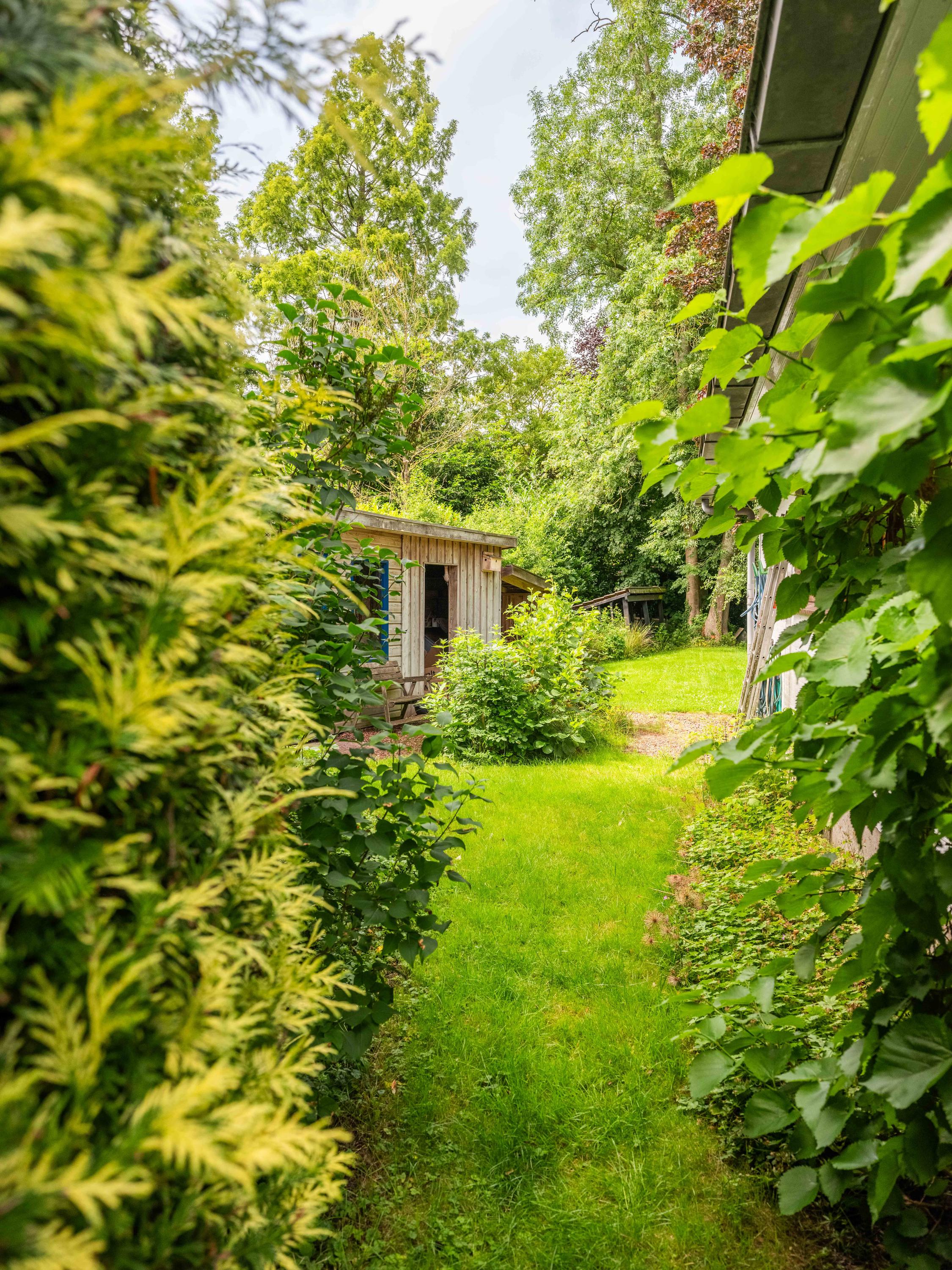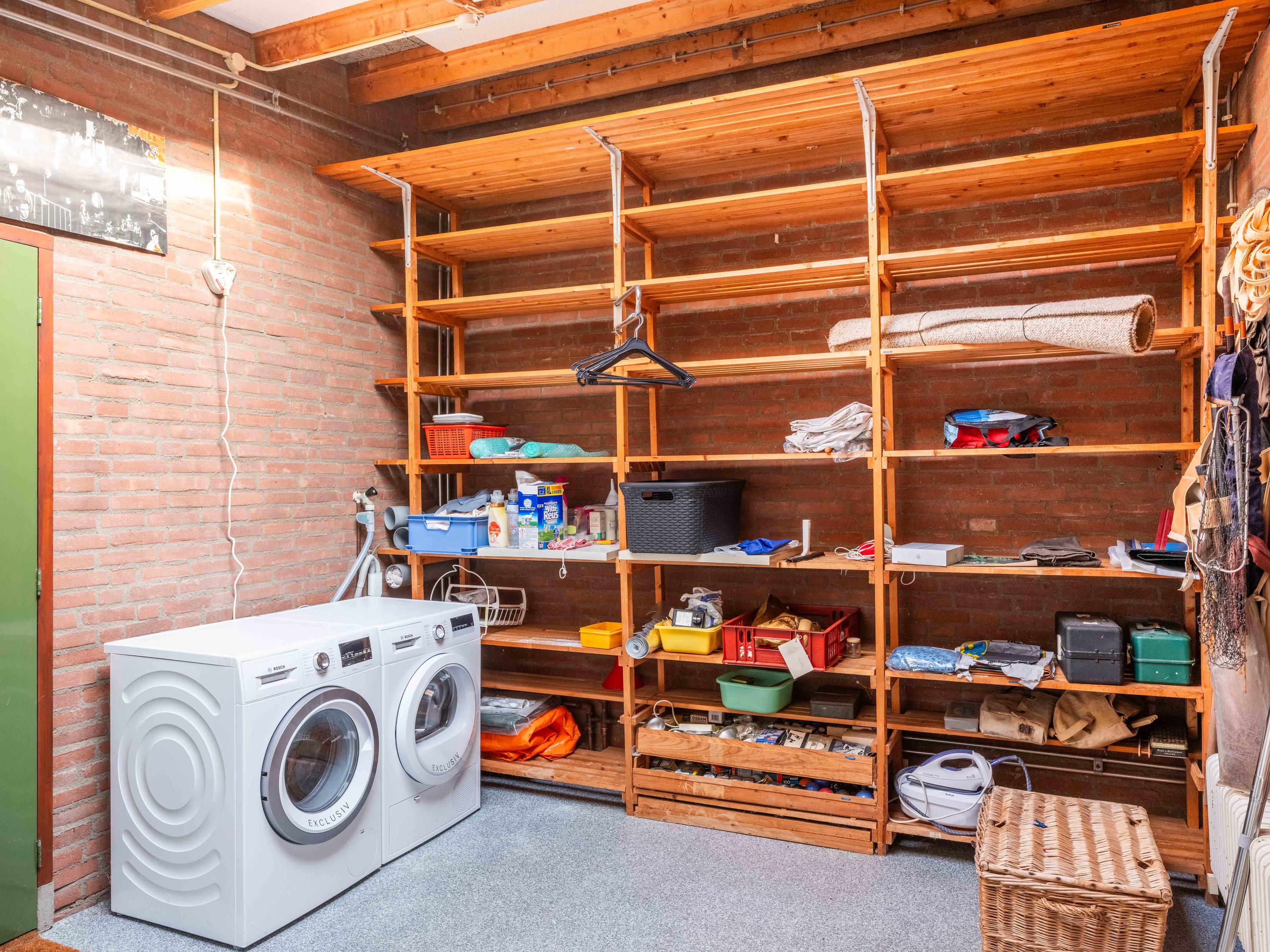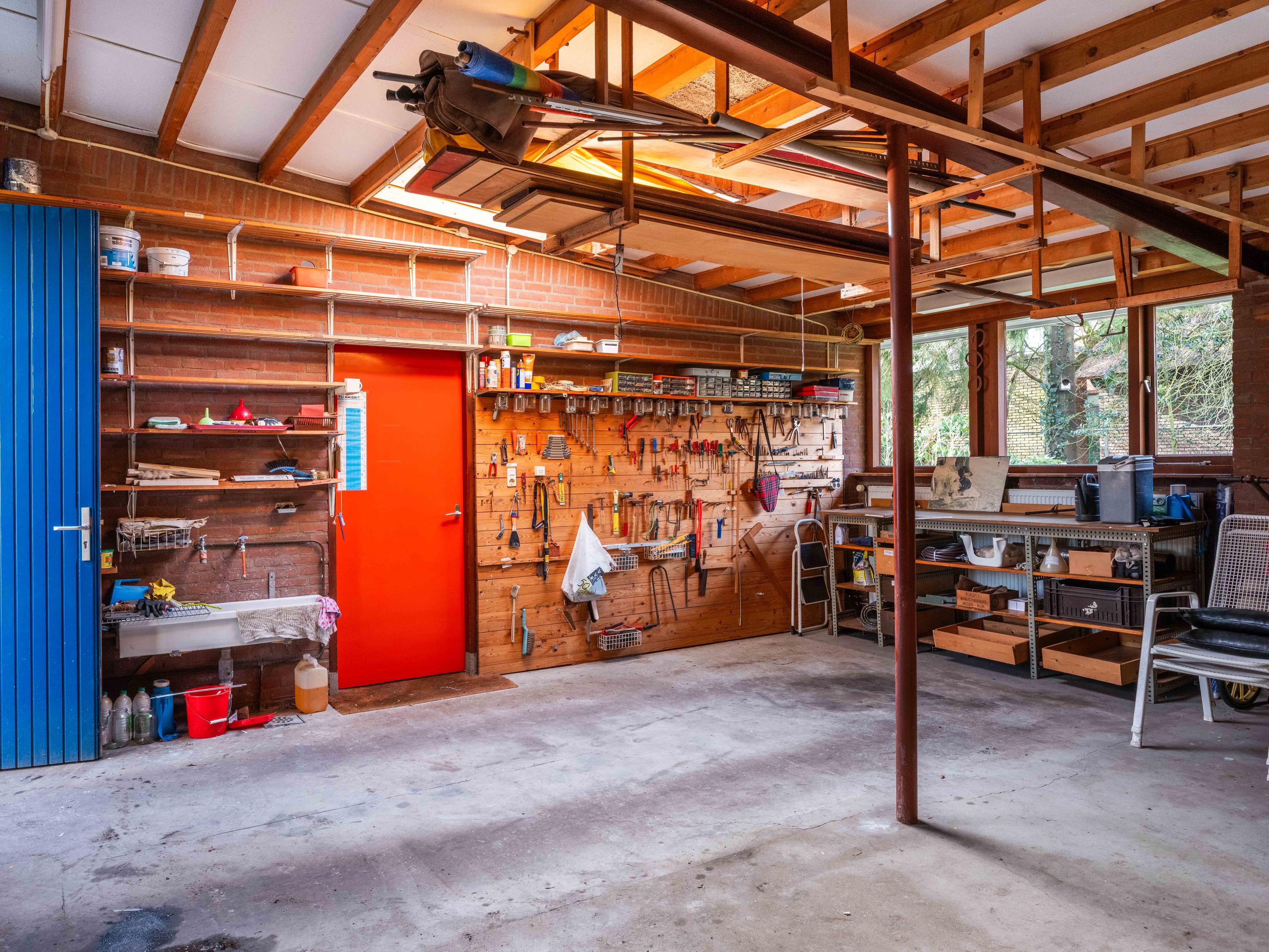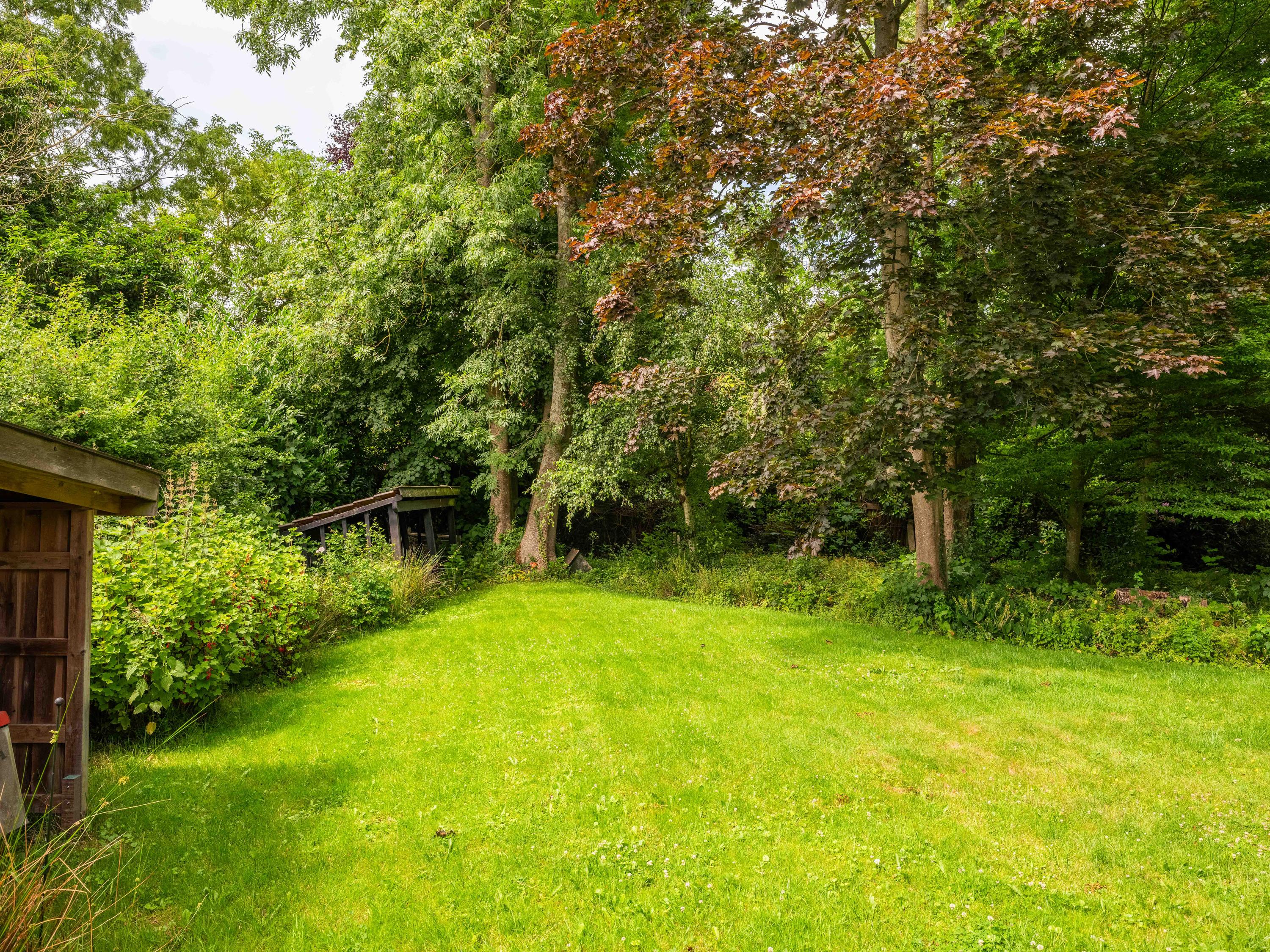 The property offers extras such as a large attached storage room/utility room including washing machine connection and a double garage. There is also a wooden shed in the lush garden for extra storage space. The driveway can easily accommodate several cars.