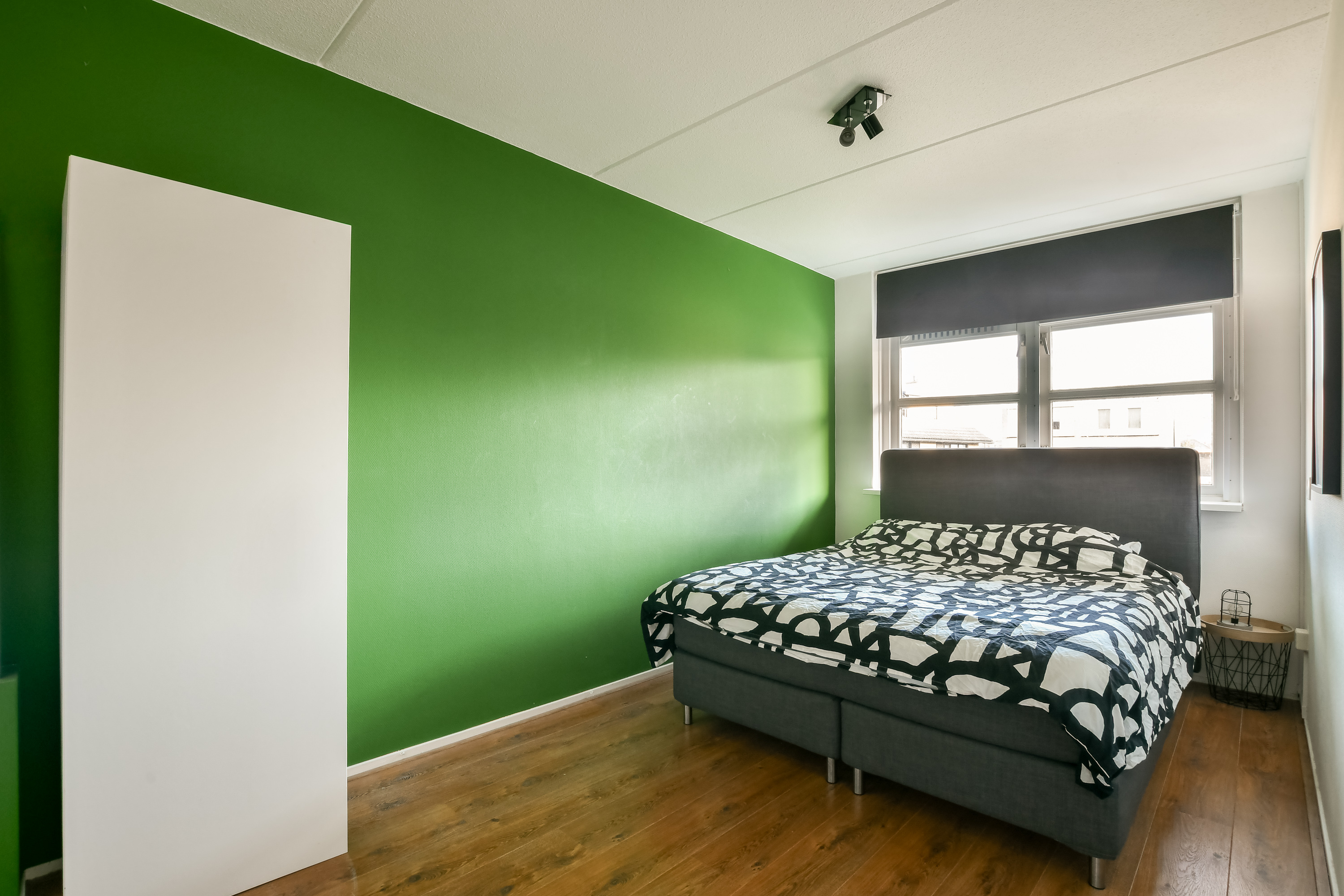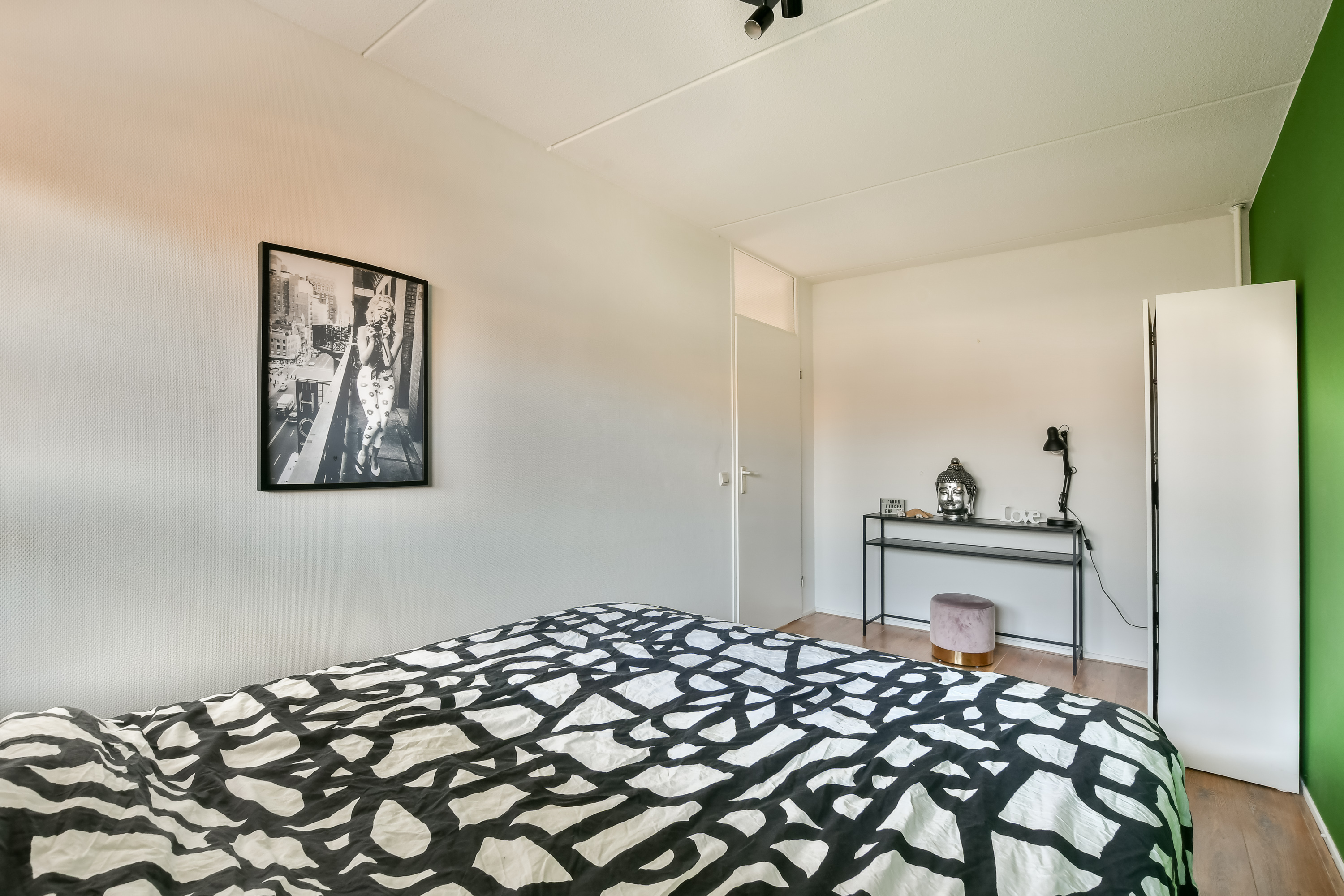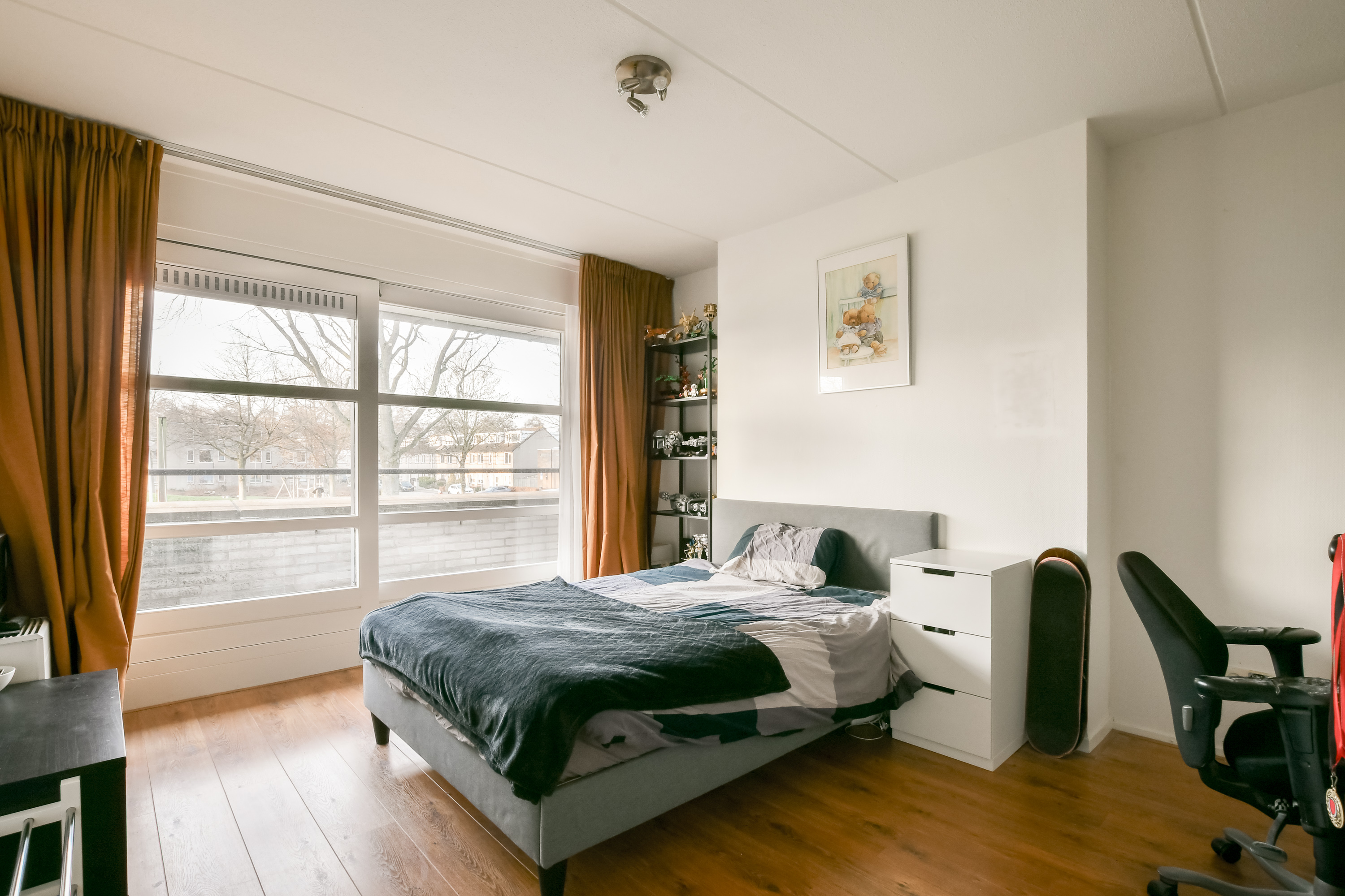 Slaapkamer 2,ruime slaapkamer met schuifpui naar een zonnig balkon met uitzicht over de singel.