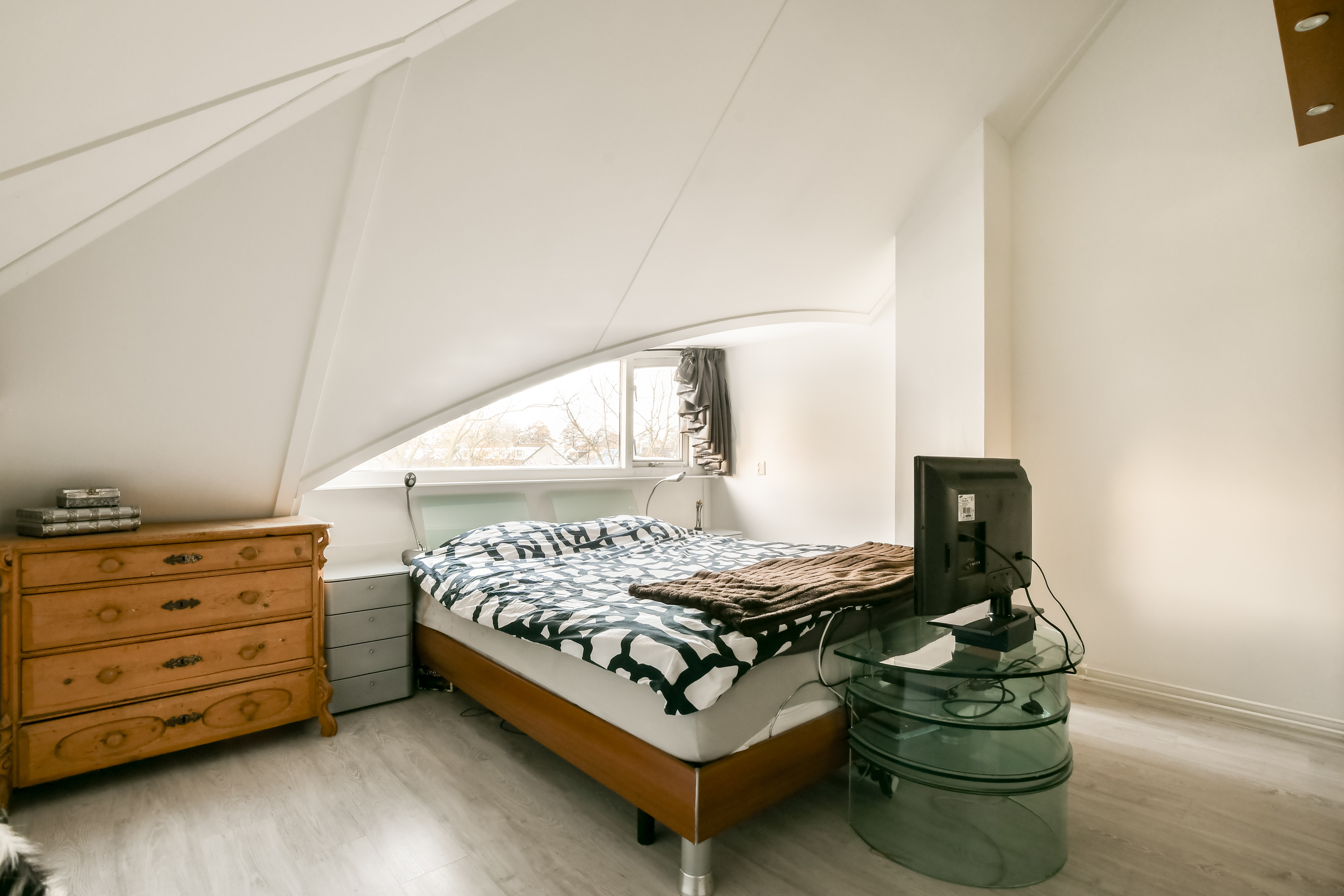 Slaapkamer 5, met aansluitingen voor wasmachine en droger, een Velux dakraam en toegang tot de vliering. Daarnaast biedt deze ruimte de mogelijkheid om een tweede badkamer te realiseren.