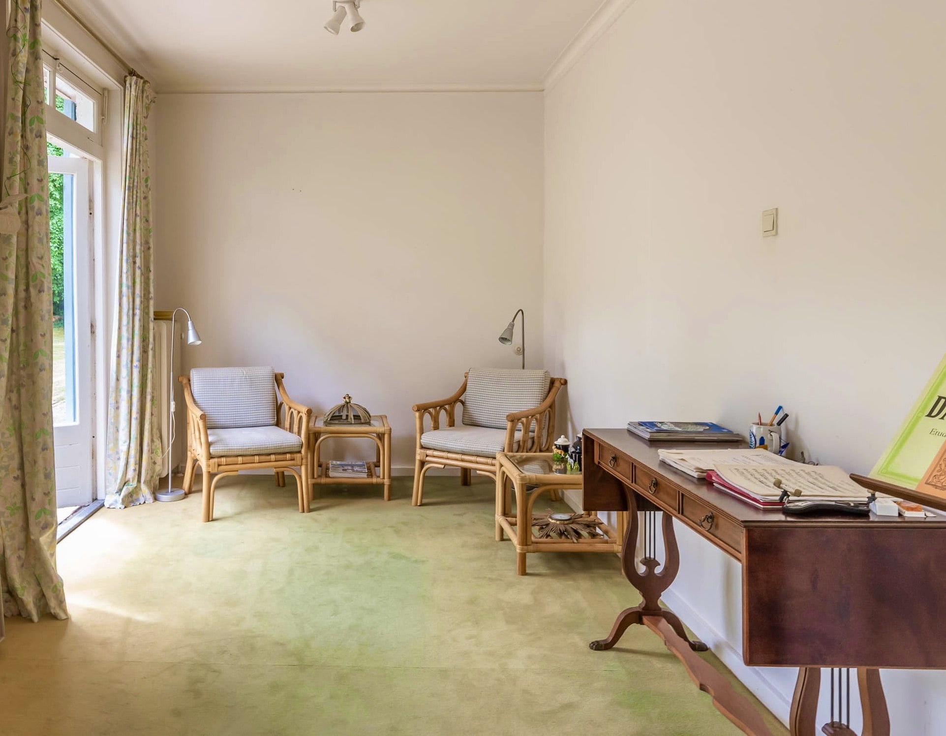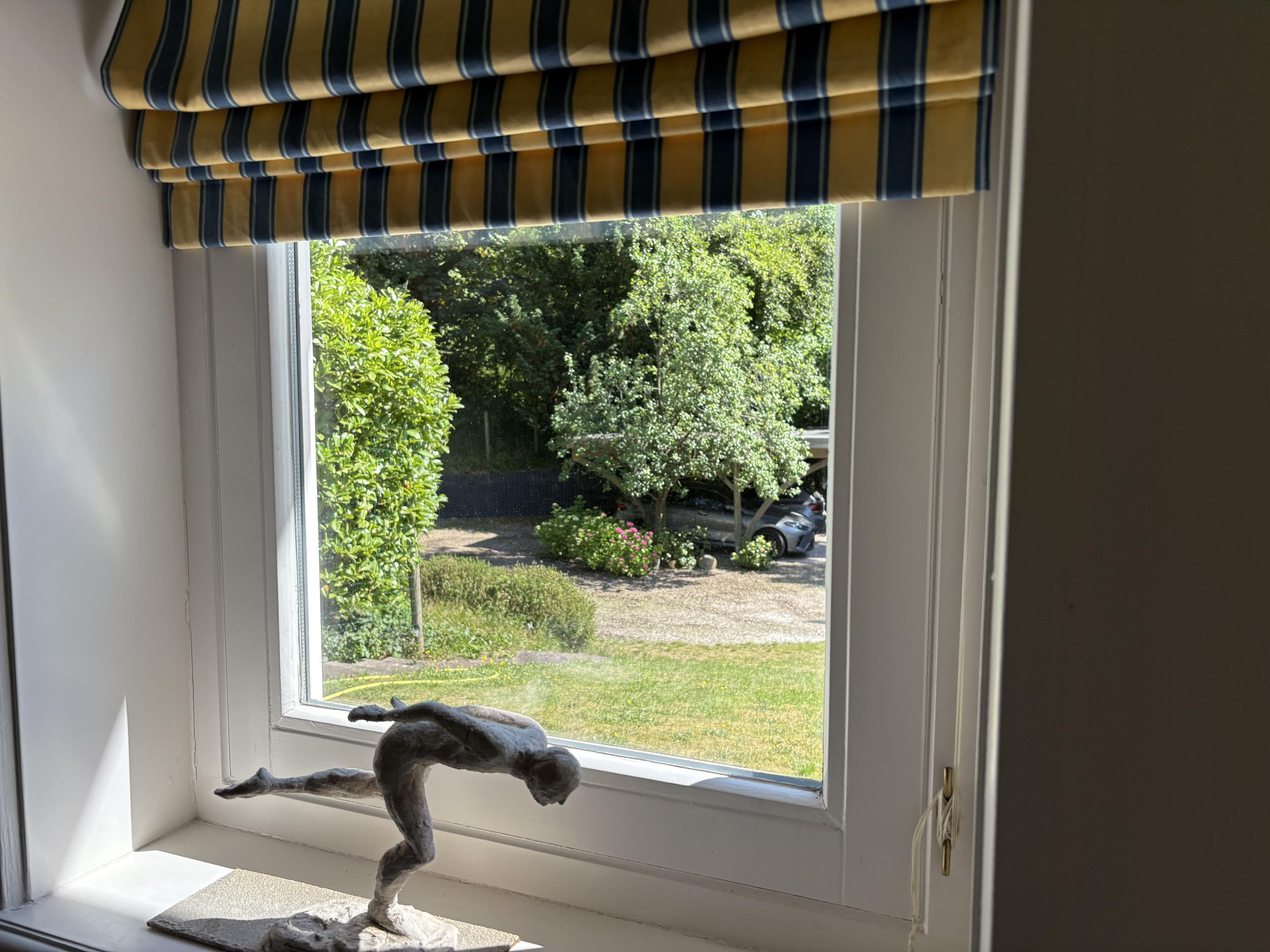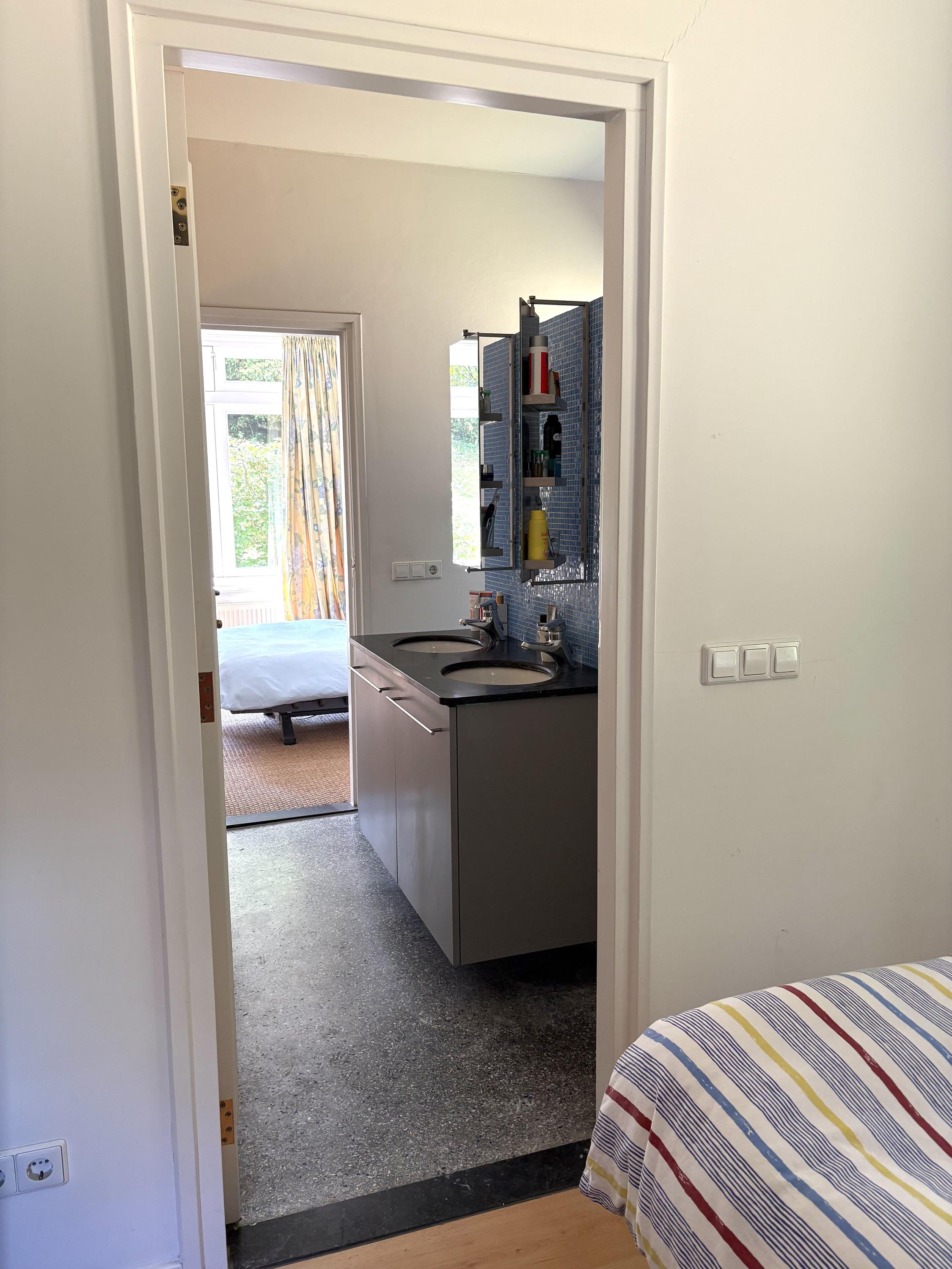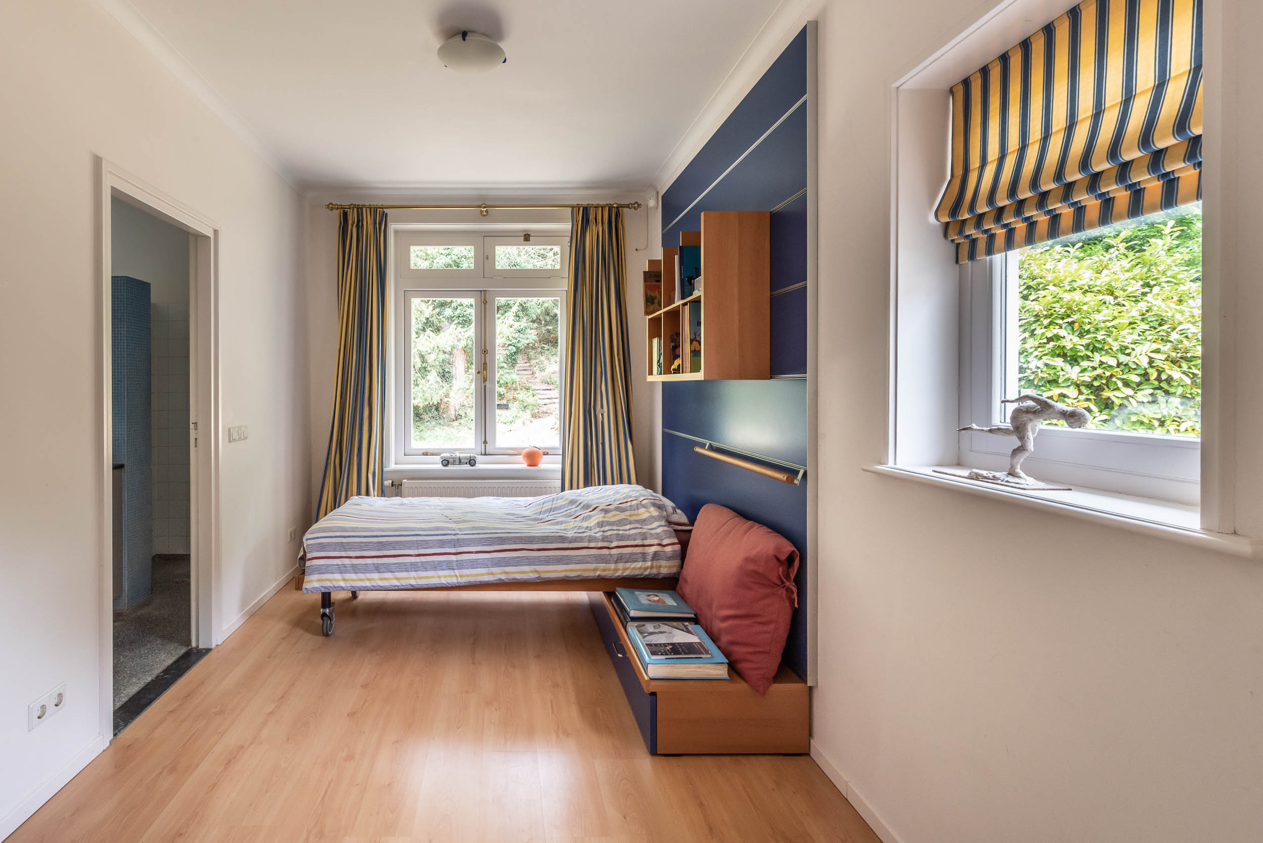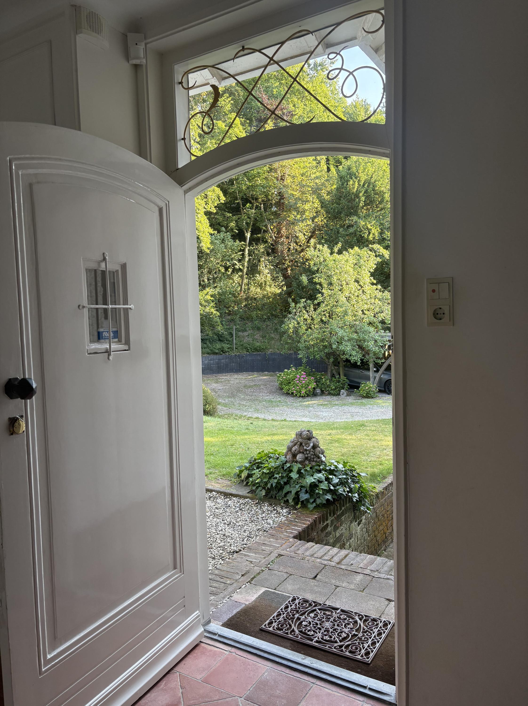 Detached villa Bloemendaal offers a refined architectural presence within the sought-after Duin en Daal villa park. Designed by H.W. van Kempen, this property evokes Mediterranean lightness with its subtle blue Louvre shutters, hipped roof, and the authentic character of French tiles in the hallway. Set on a substantial 4420 m² private plot, the house is surrounded by mature trees and elevated above the road, providing optimal privacy.