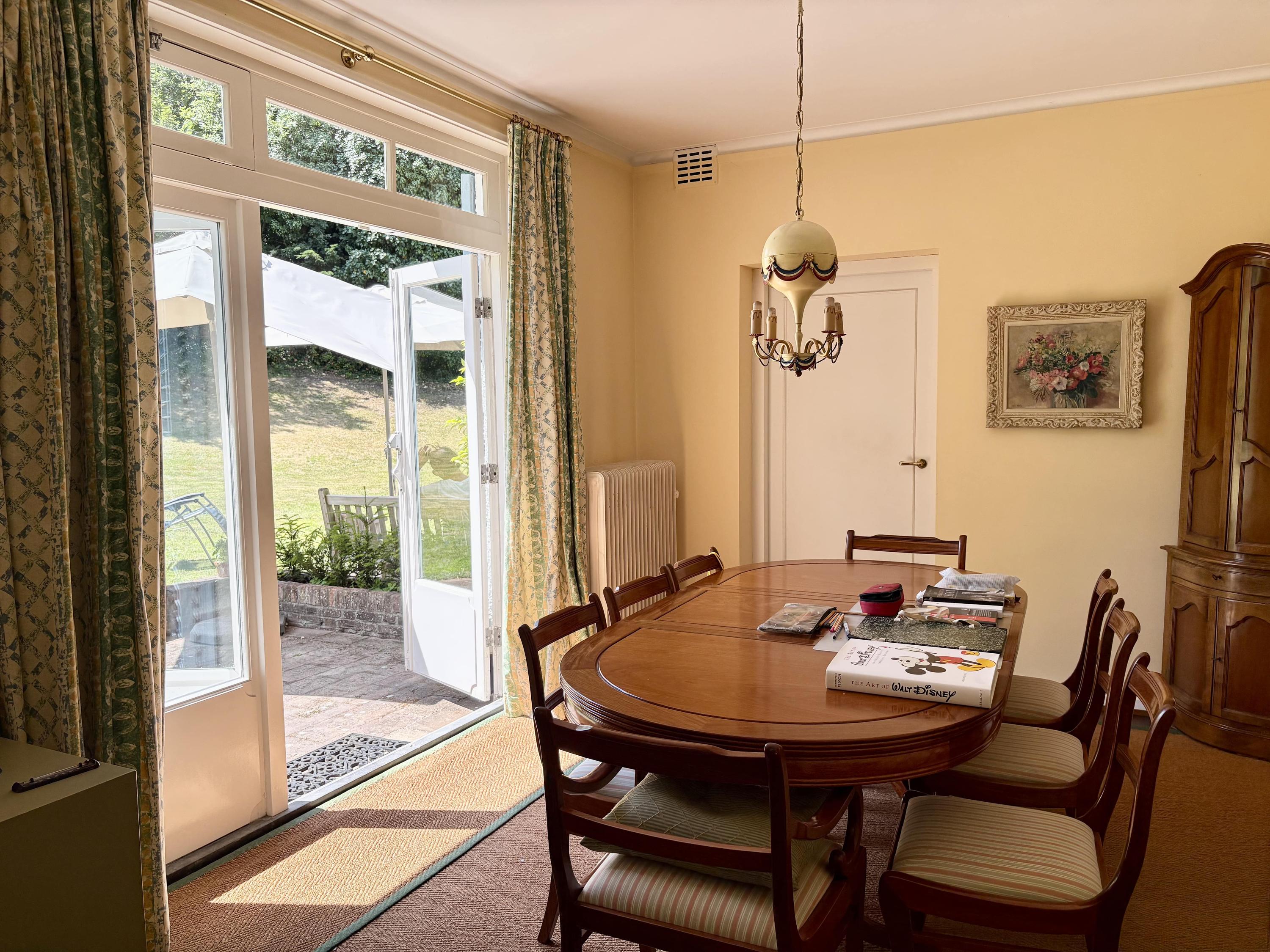 Five well-proportioned bedrooms and three bathrooms deliver versatile accommodation. The Bulthaup kitchen is equipped with a Gaggenau steam oven and is centered around a welcoming island for gathering. Underfloor heating adds discreet luxury in key areas. Basement spaces include a wine cellar and utility zones, while large open attics provide storage or creative potential.