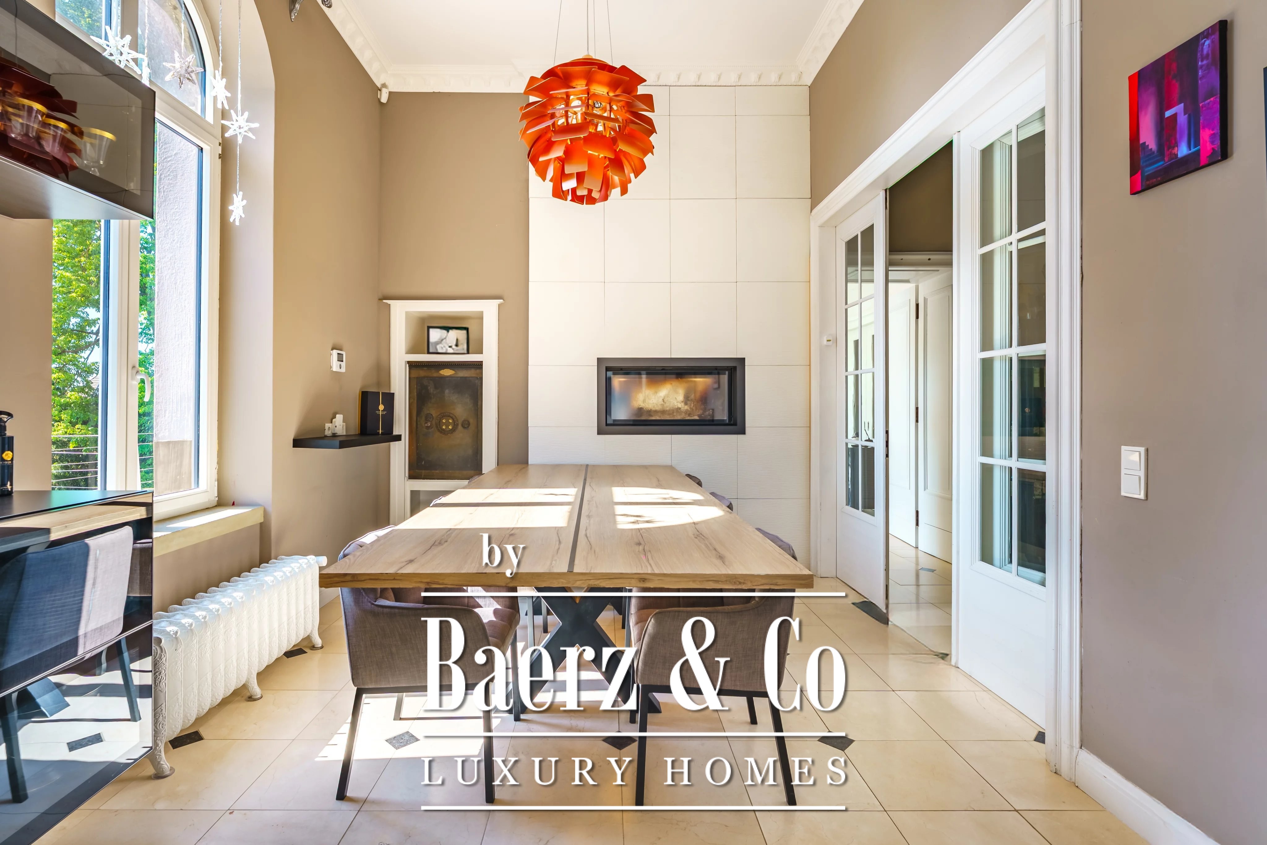 The basement delivers utility and repose, housing a laundry room, workshop, wine cellar, a single-car garage, and dedicated wood storage. Technology integrates subtly: 150 solar panels generating 30 kW, an intelligent heating system remotely accessible, and a BRUNNER fireplace with stove provide both sustainability and comfort. Among its details, the manor house Boevange brings together double glazing, alarm and fire systems, a safe, and understated lighting. This is a property composed for those who value provenance and present-day peace in equal measure.