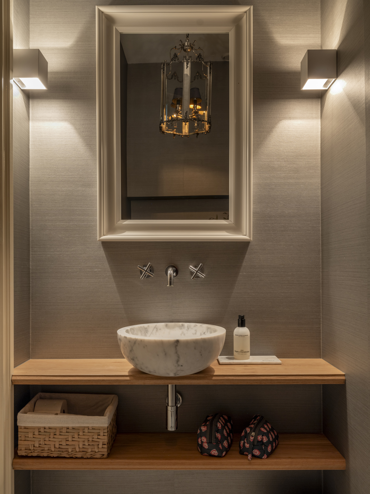 This cozy 'attic' level includes two spacious bedrooms located at the back and a separate, stylish bathroom. Additionally, there is a guest room with its own bathroom on this floor.