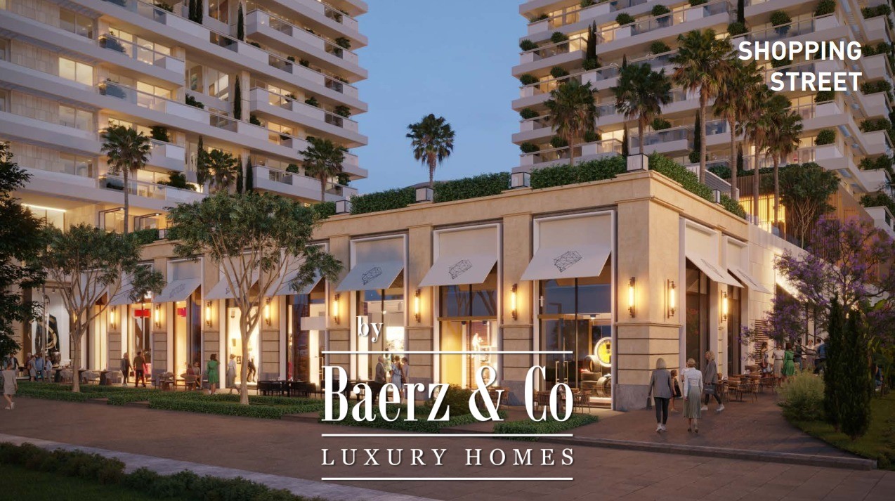 Within the project, residents access an elevated amenity suite: an infinity pool with bar, rooftop venues, private beach and beach bar, wellness centre, gym, concierge, and secure indoor parking. The on-site shopping mall and curated dining complement daily life with subtle luxury.
