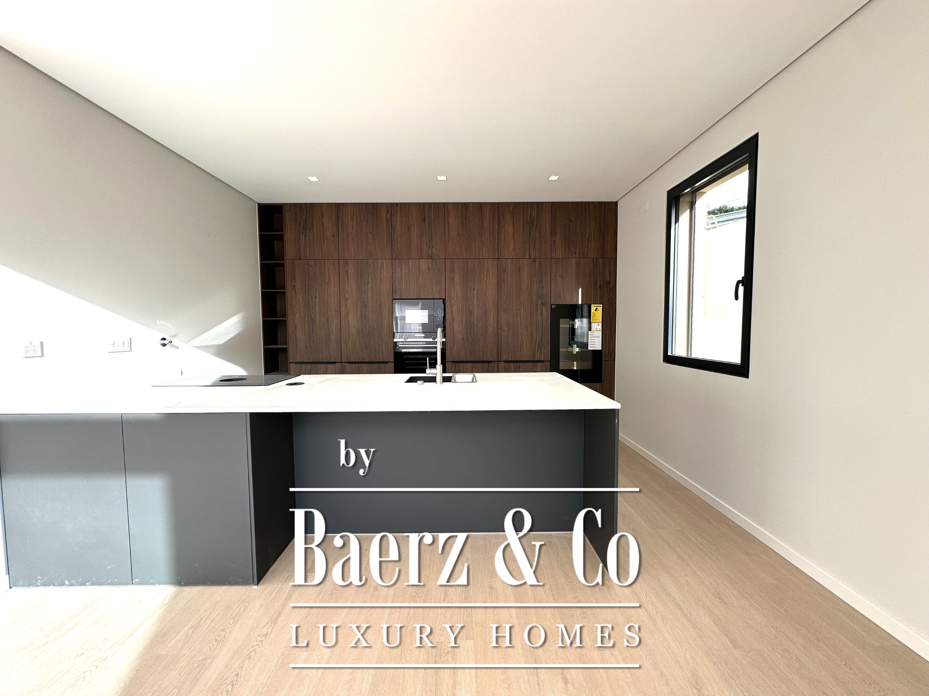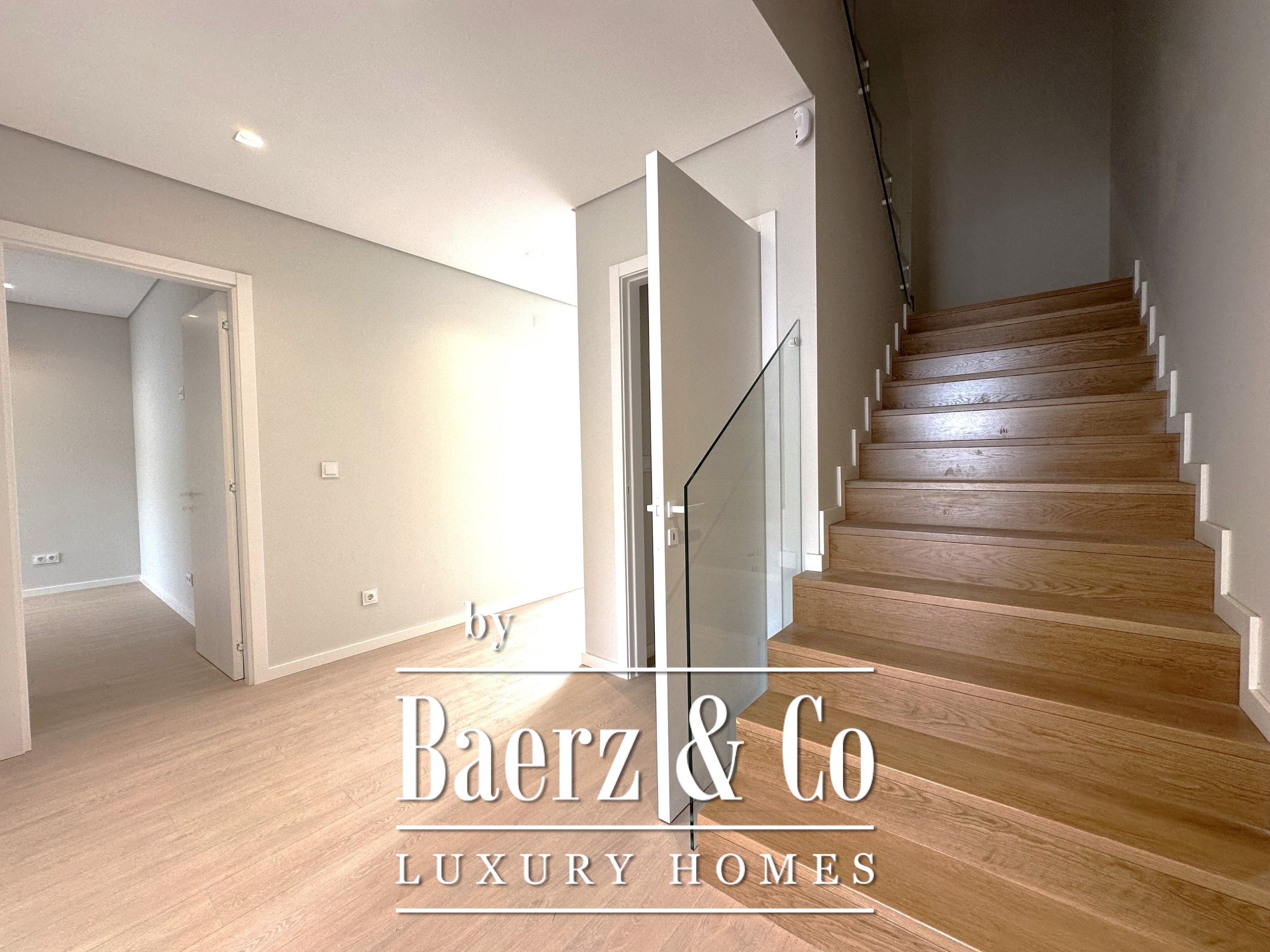 Villa Cascais captures the essence of contemporary architecture, situated within an intimate gated community of just four residences in Murchas. This villa, with its 570 m² of total living area and 212 m² of private gross space, draws light into every room, creating an atmosphere that feels both private and open. The main living room flows seamlessly into the kitchen, offering 62 m² of unobstructed space for gathering and daily life. On the same floor, a dedicated suite of 12 m² ensures privacy and comfort, complemented by an additional guest toilet.