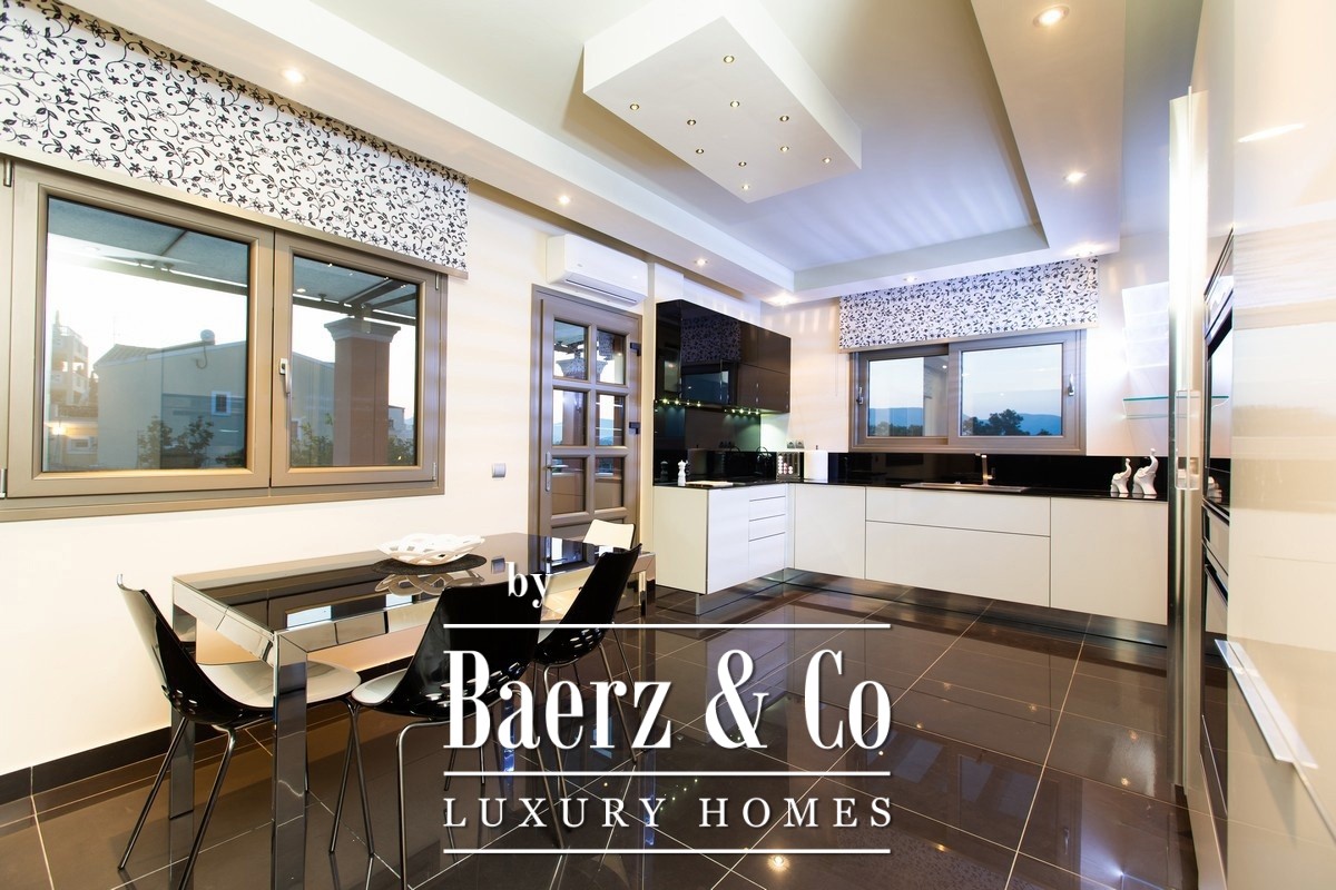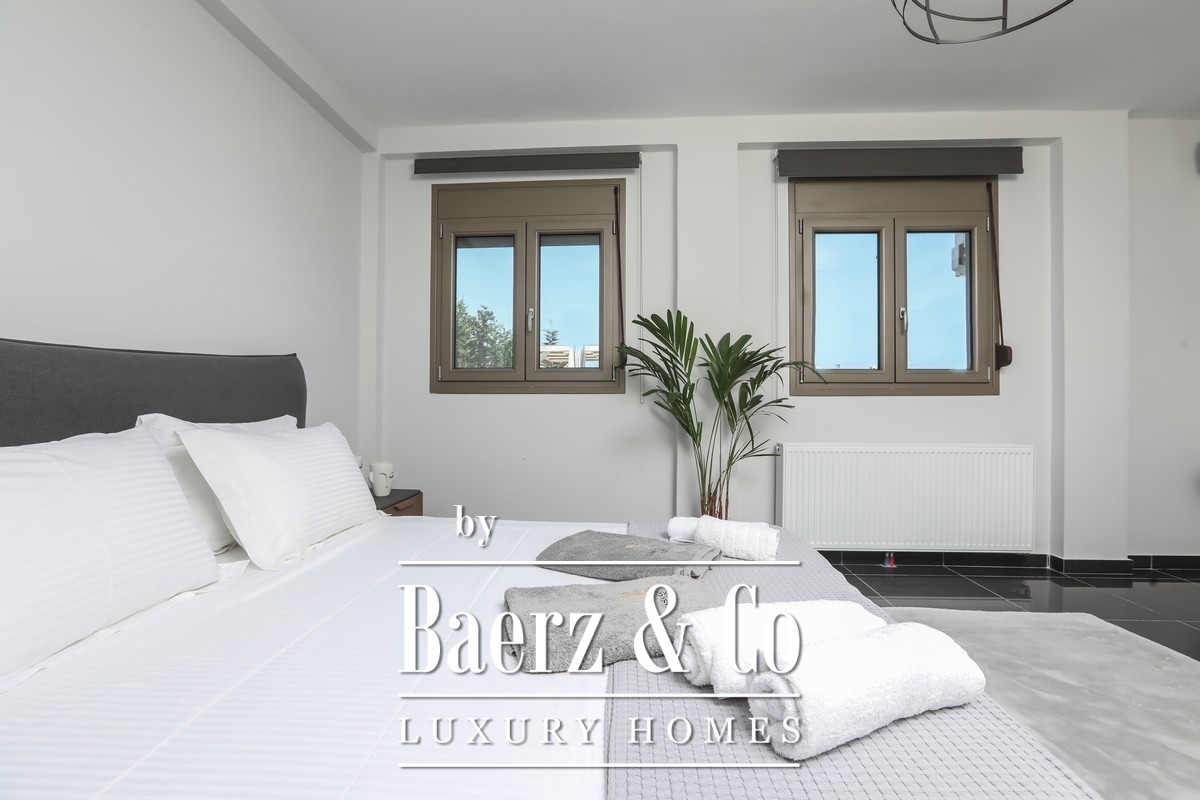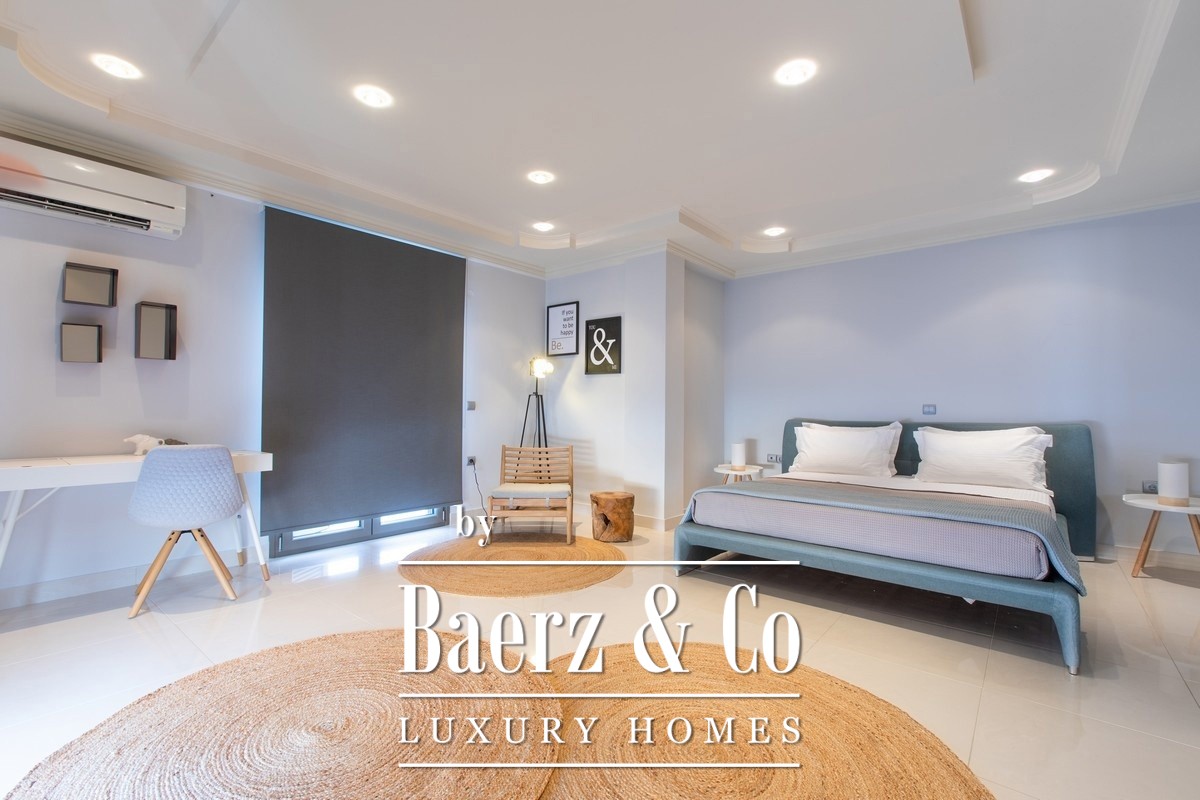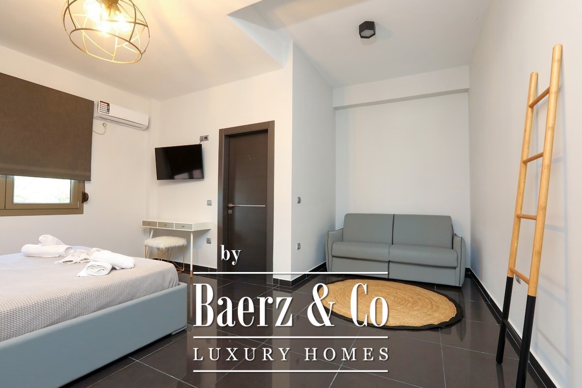 This property opens with two independent ground-floor apartments, each thoughtfully designed for autonomy and privacy. The main maisonette spans the first and second floors, featuring an expansive living zone, state-of-the-art kitchen, and a sequence of luminous bedrooms opening to semi-outdoor spaces that invite in sea breezes and landscape views. Five bathrooms are distributed across the home for comfort.