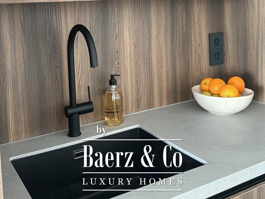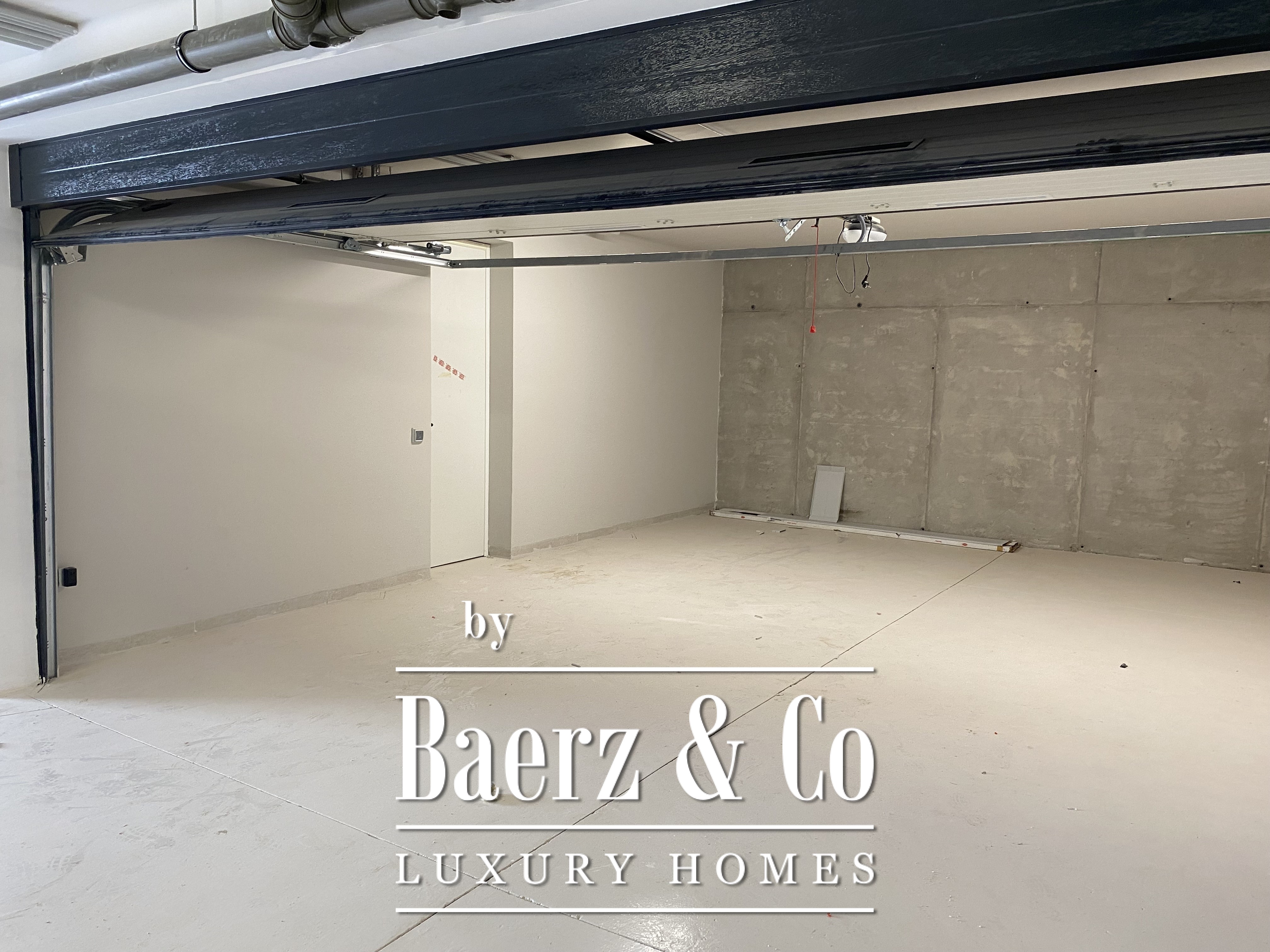 The equipped kitchen showcases top brand appliances, complemented by energy-efficient climate systems and sustainable charging points for vehicles and bicycles. A private garage accommodates two cars and a spacious storage room provides day-to-day ease.
