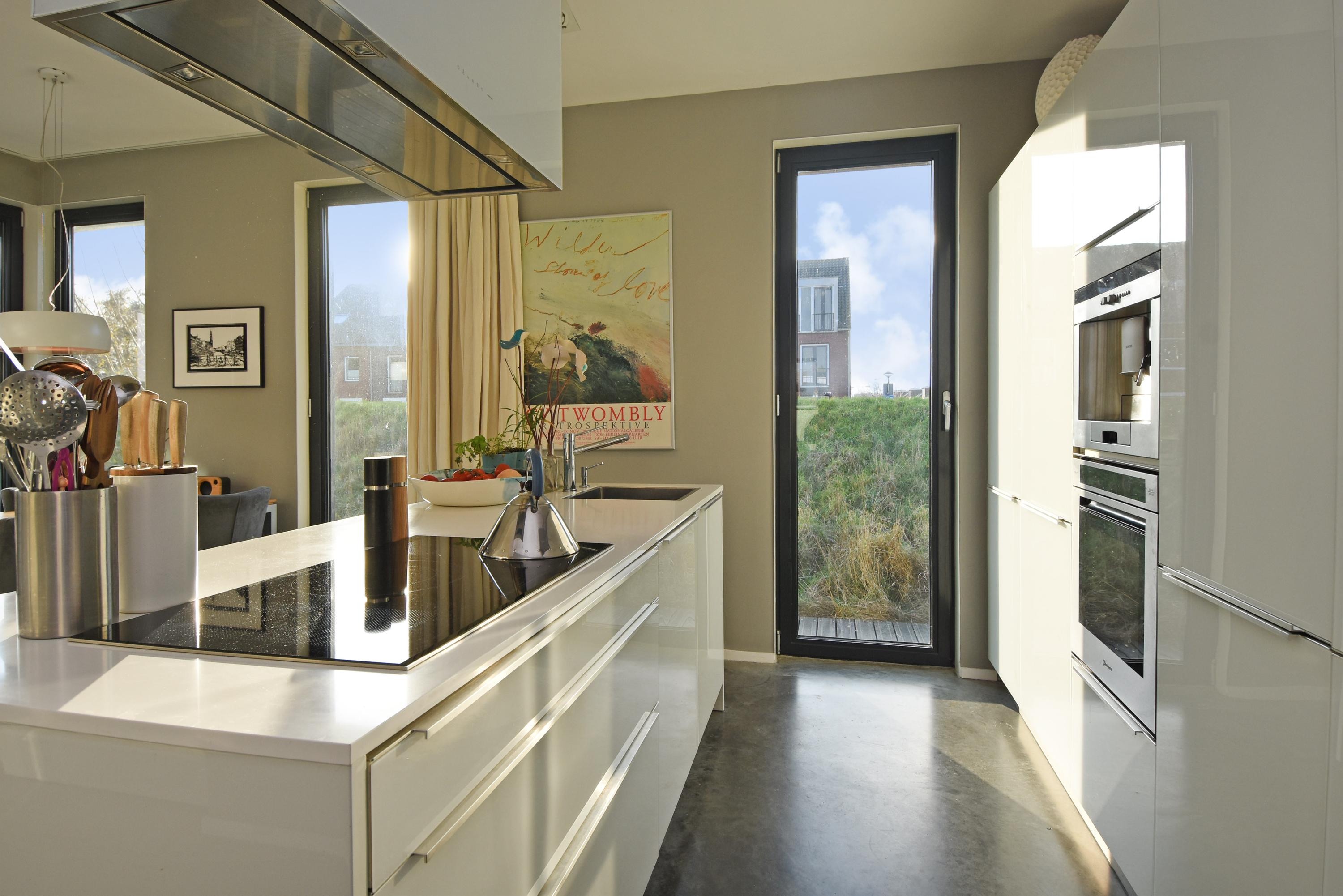 The villa is positioned freely along a shared (communal) jetty next to a small “dike”. This ecological zone with natural vegetation provides plenty of privacy. The home overlooks the water and the beautiful Hof van Delft Park, a lovely place to relax and enjoy nature. The neighbourhood is wonderfully quiet and spacious, with lots of water and greenery—offering a true sense of space and freedom.