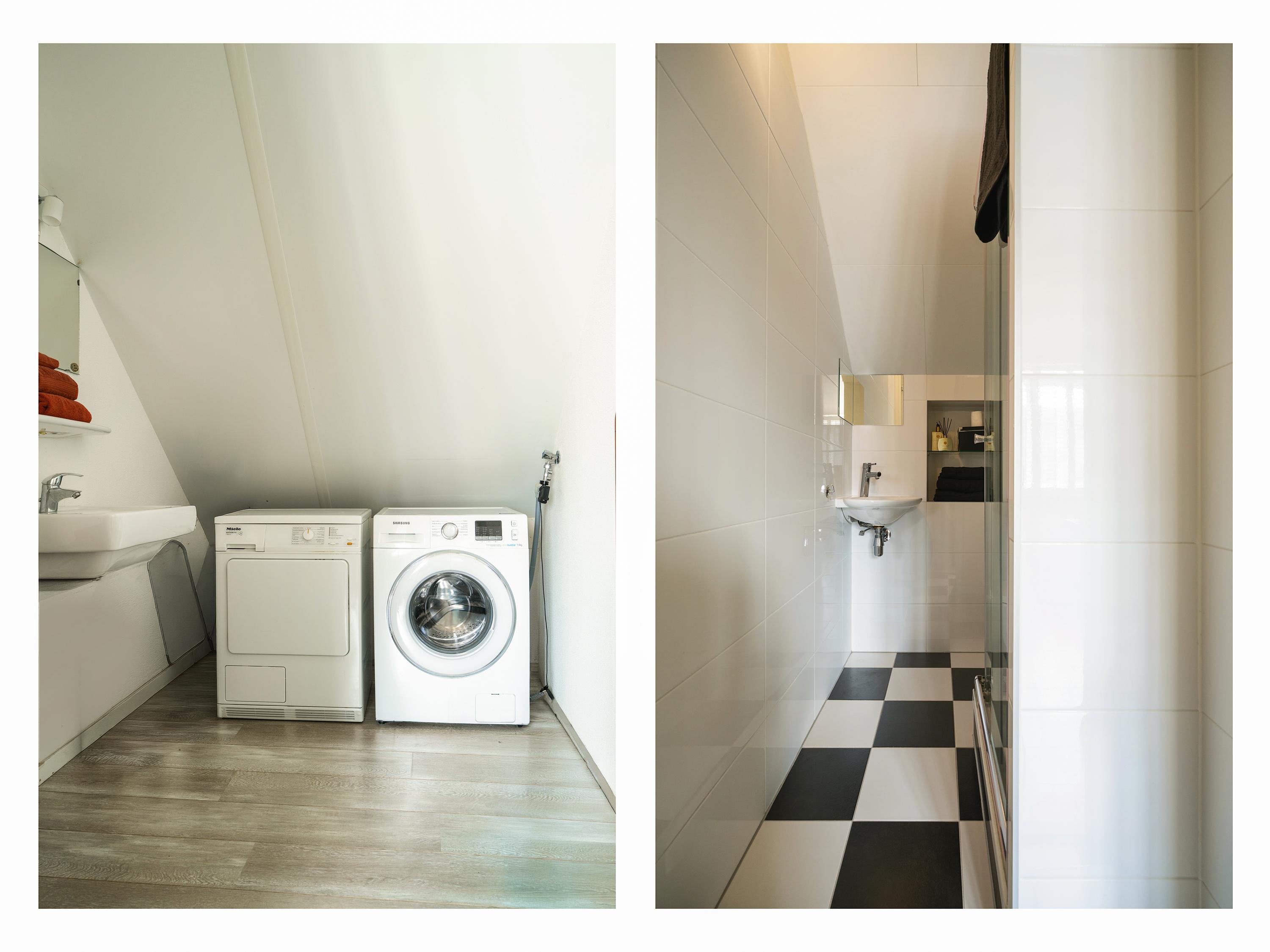 Landing with access to 2 bedrooms, one of which is a very spacious (master) bedroom at the rear with French balconies and a view of the water. The bathroom is luxuriously finished and equipped with a freestanding bathtub, a spacious double shower with steam cabin function, and an oak vanity with double sinks. Opposite the bathroom is a spacious walk-in closet.