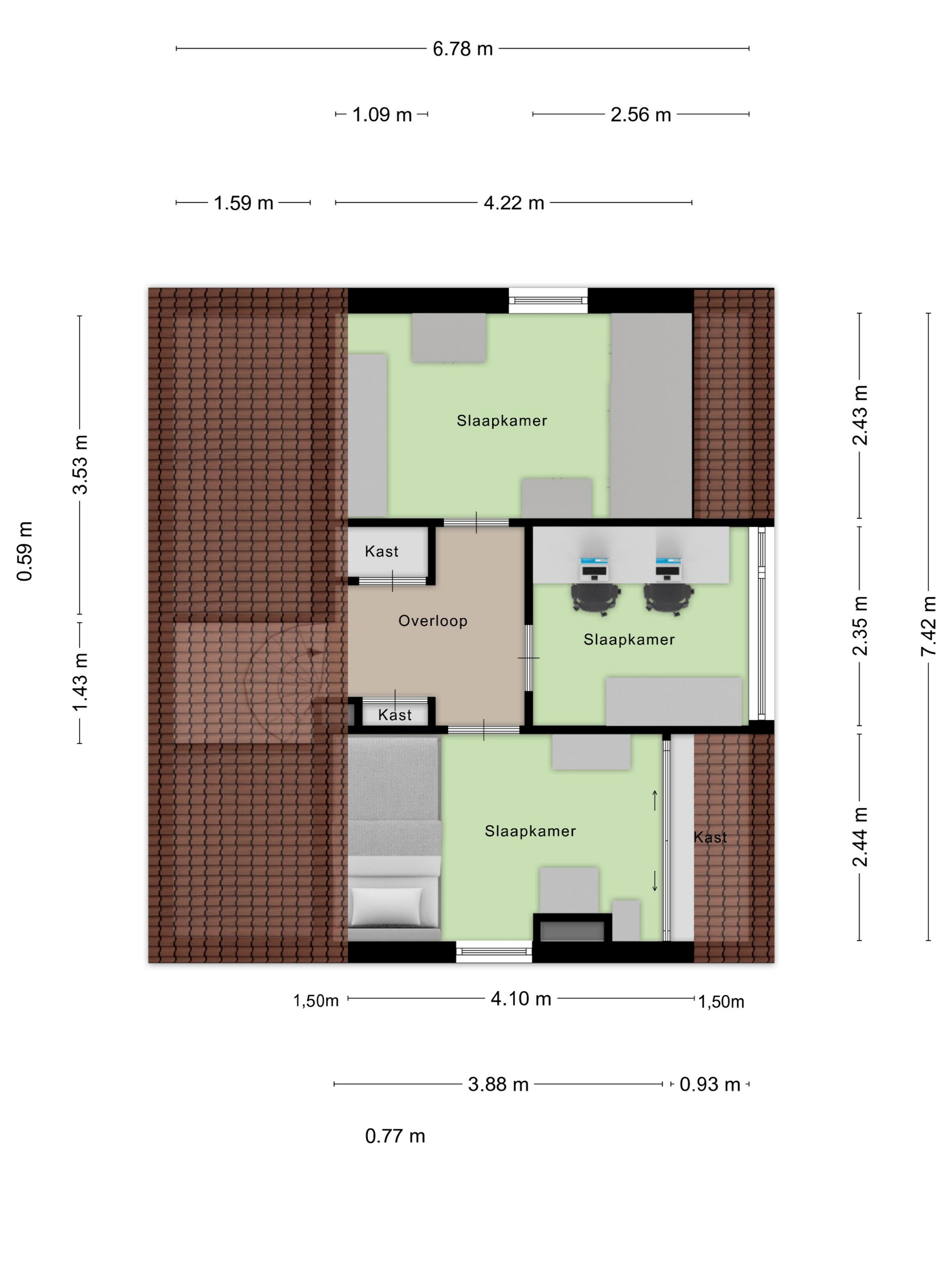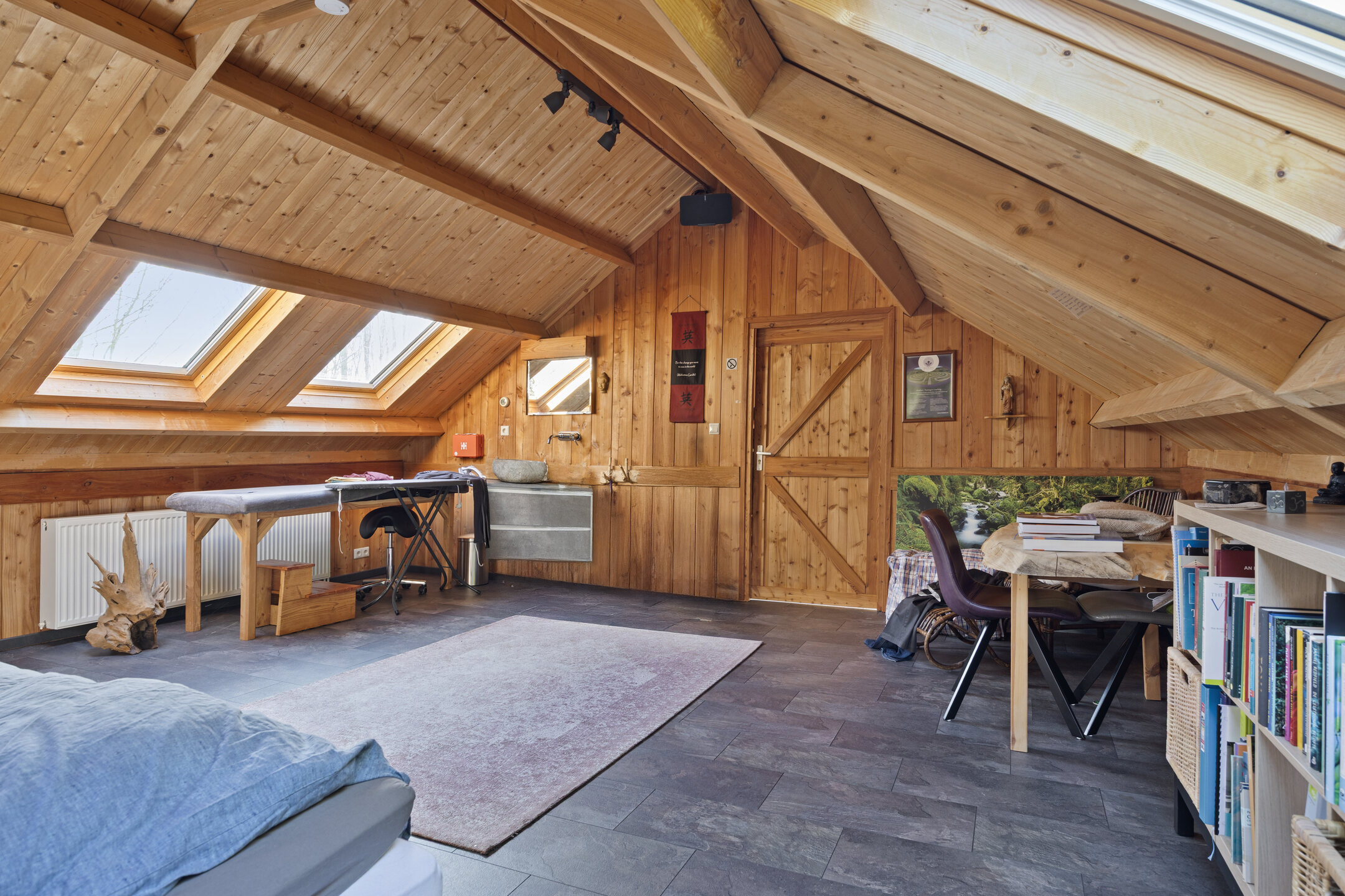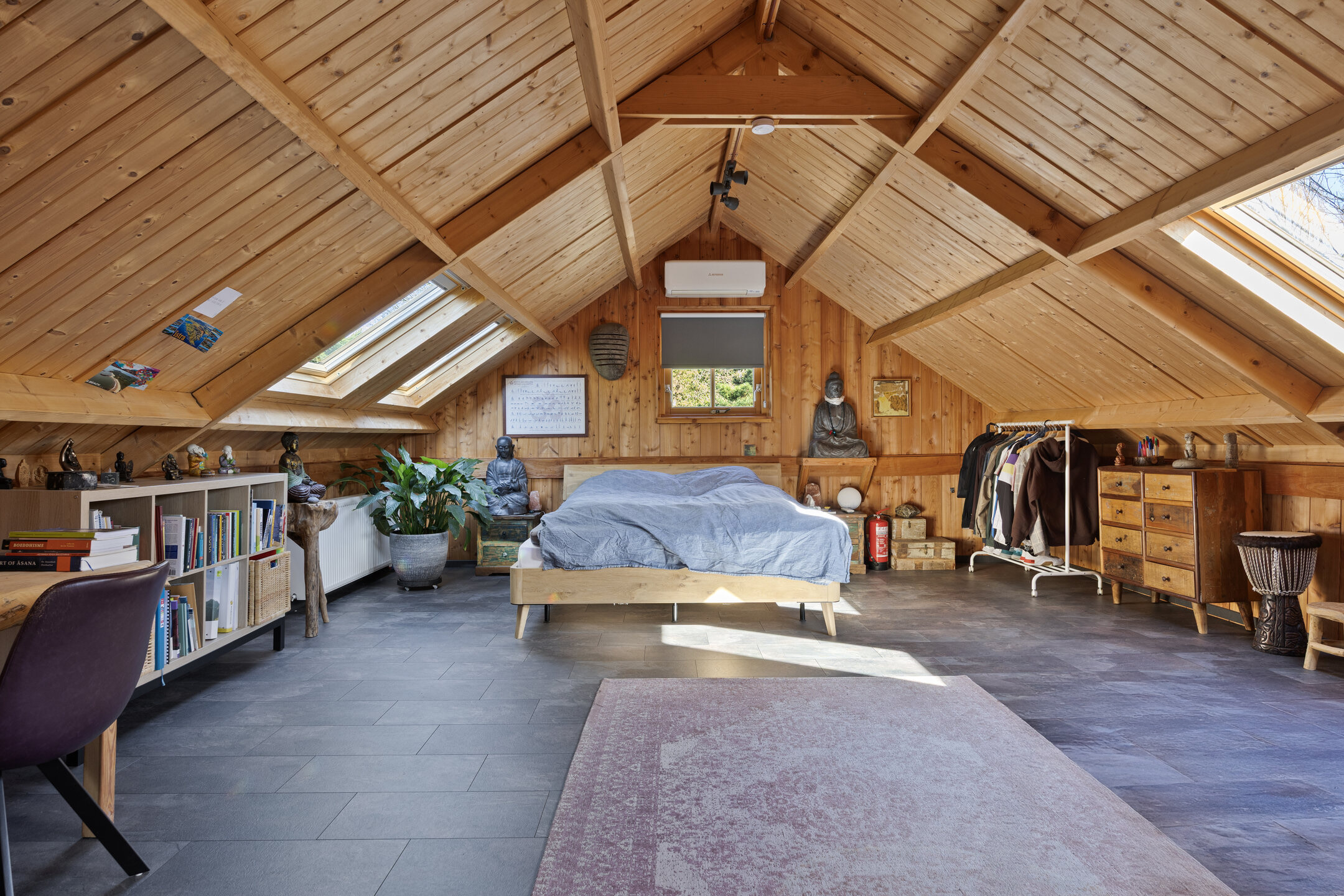 multifunctional open space with sound-reducing subfloor, 4 roof windows, air conditioning, vanity unit, independent thermostat and possibilities for one or more (bed)rooms.