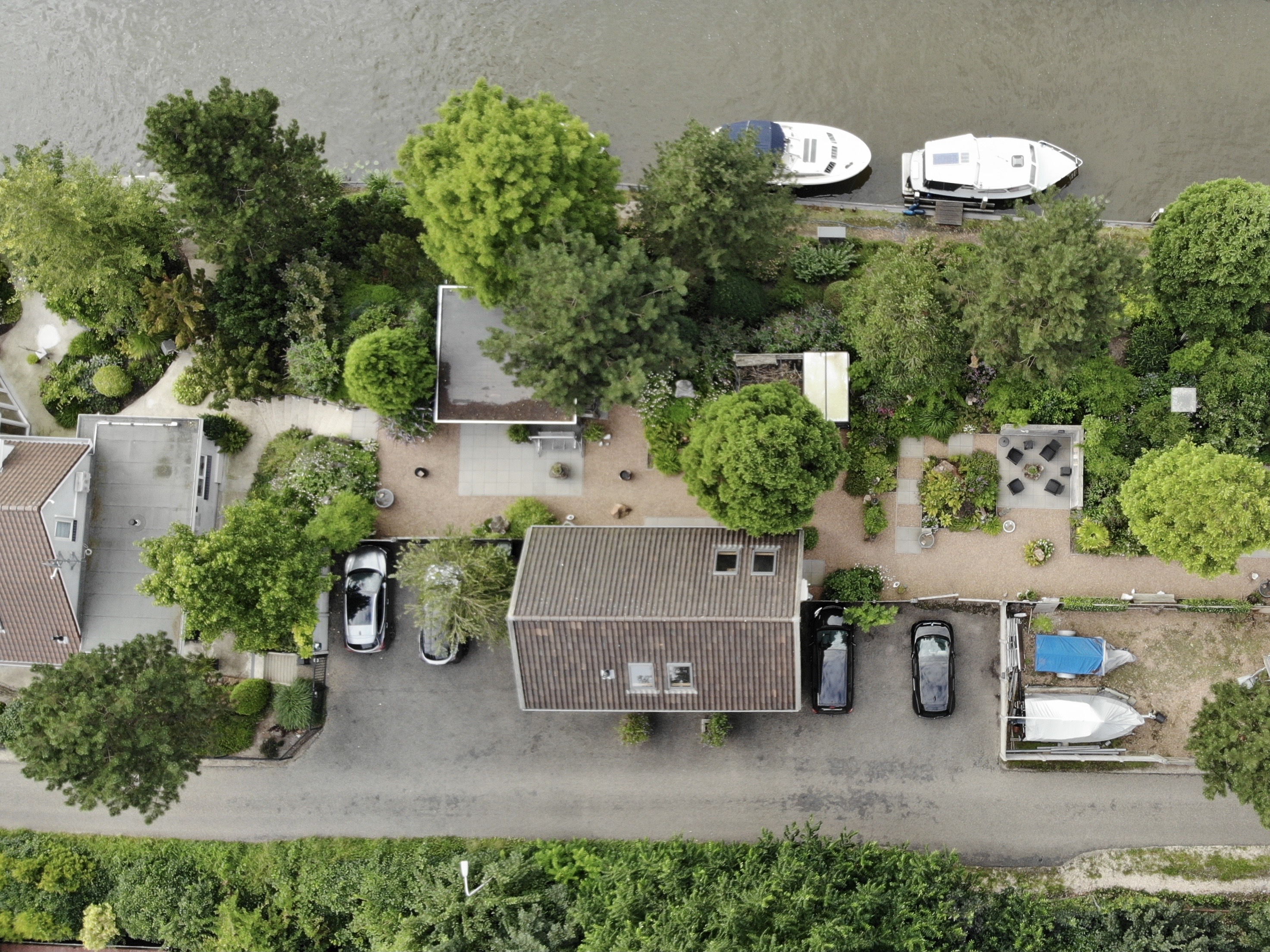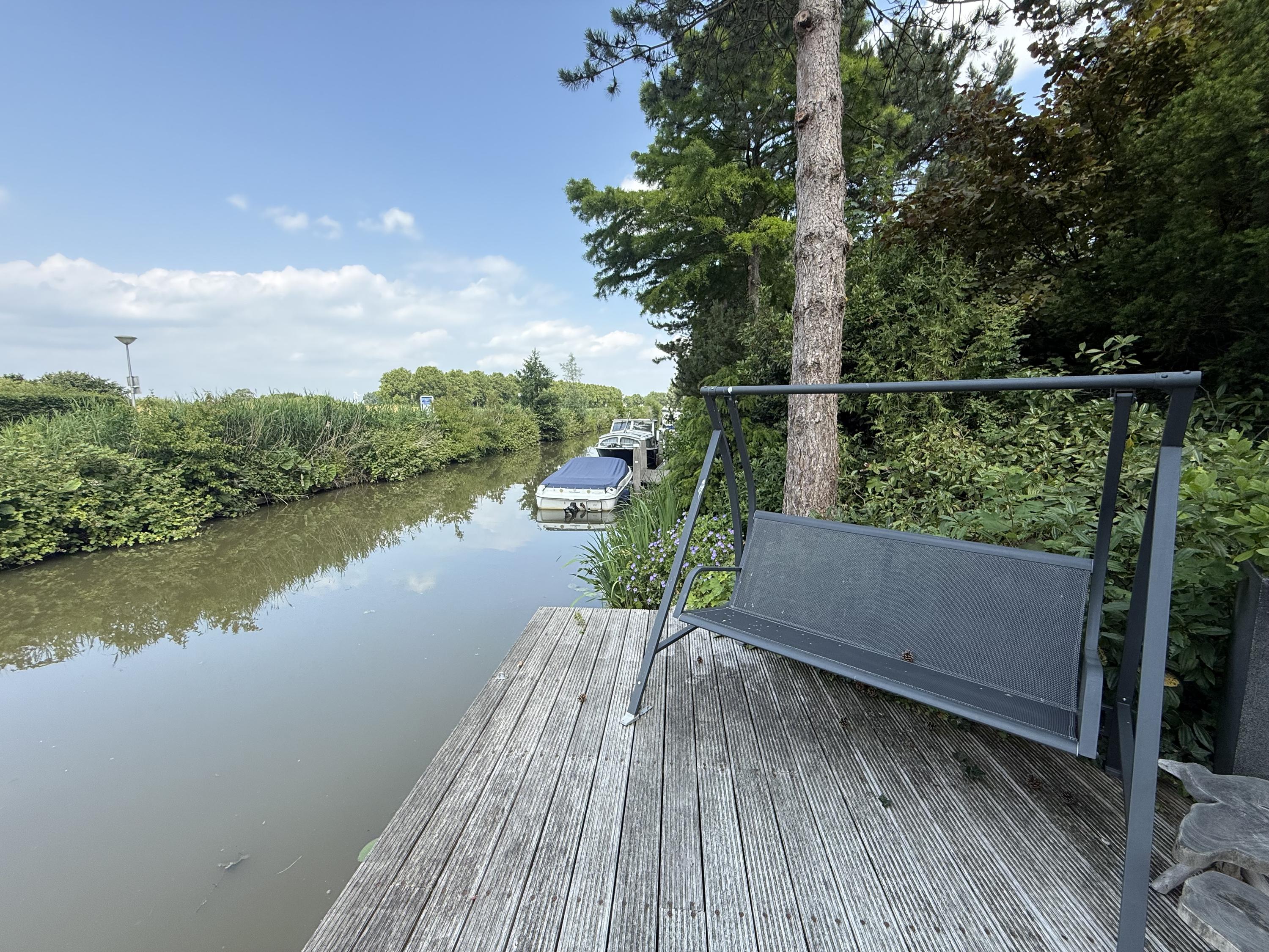 terrace by the water with access to the mooring docks, all equipped with electricity points (with sub meters) allowing individual use/rental (approx. € 1,500 per year per berth). All docks were constructed in 2017 with 9-meter Azobé piles including Azobé hardwood decking. Permit for rental of the berths is available. A second path at the far side of the plot provides independent access to the docks while maintaining privacy;