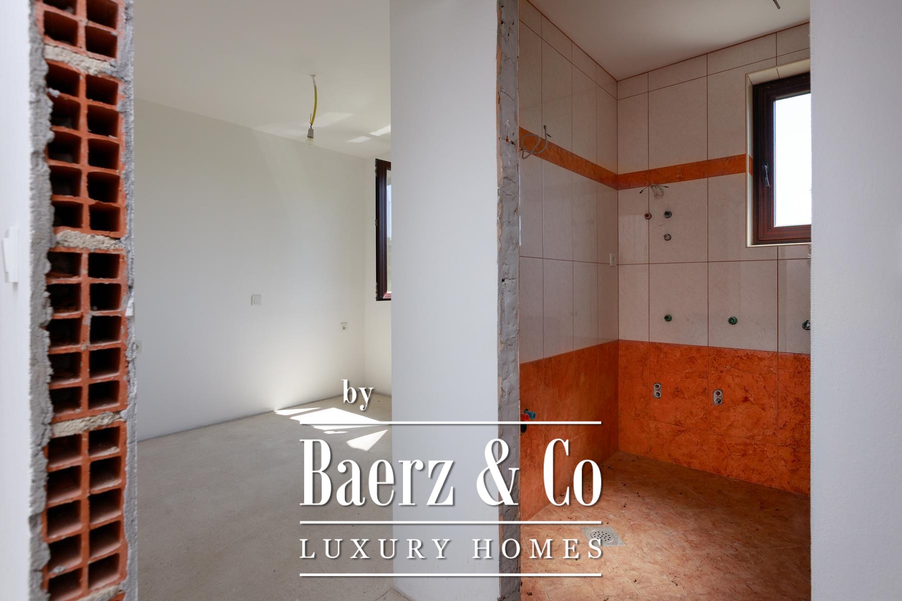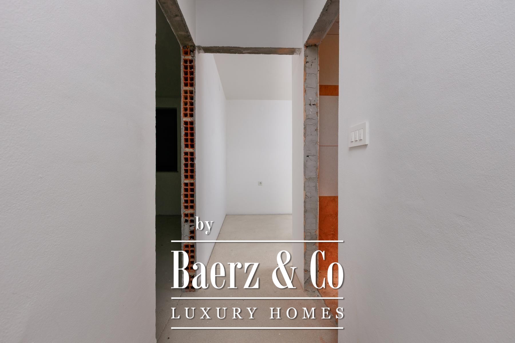 With a total living area of 803 m² on an equally sized plot, the building houses four legally partitioned apartments. Its unfinished high roh-bau stage allows you to choose bespoke finishes for flooring, ceramics, kitchens, and sanitary ware, making this a canvas for expressing your own style. The building’s attic space offers further potential for amenities, workspace, or an additional bedroom.