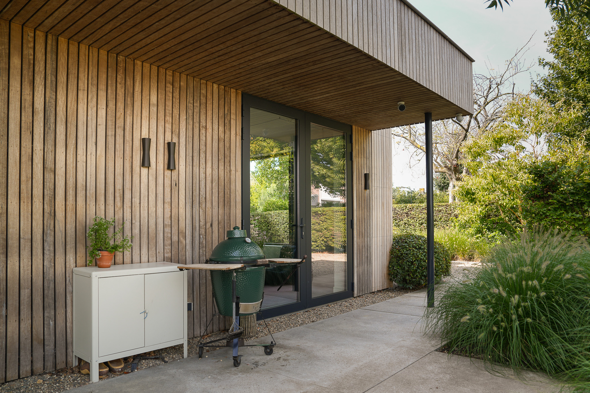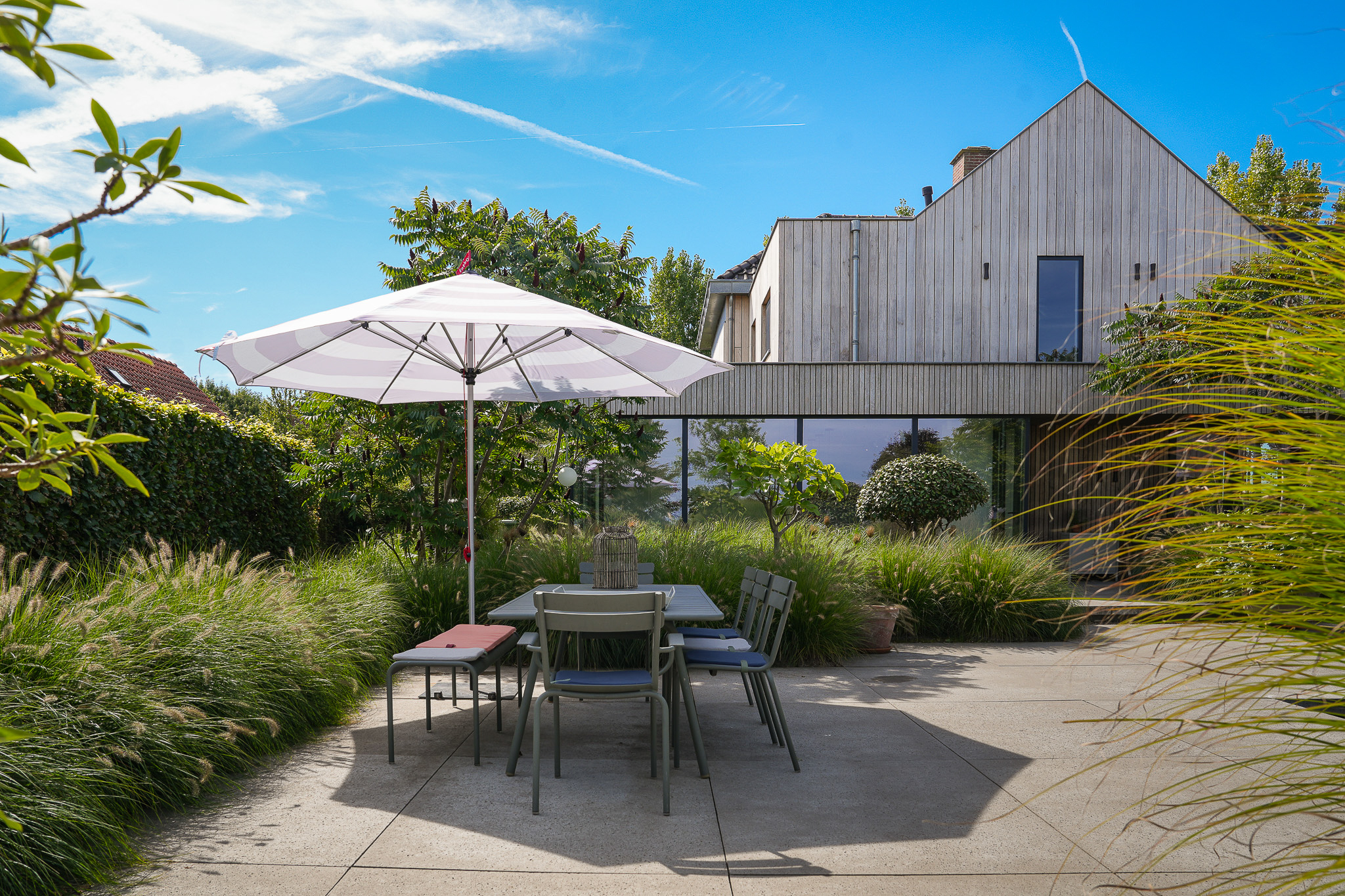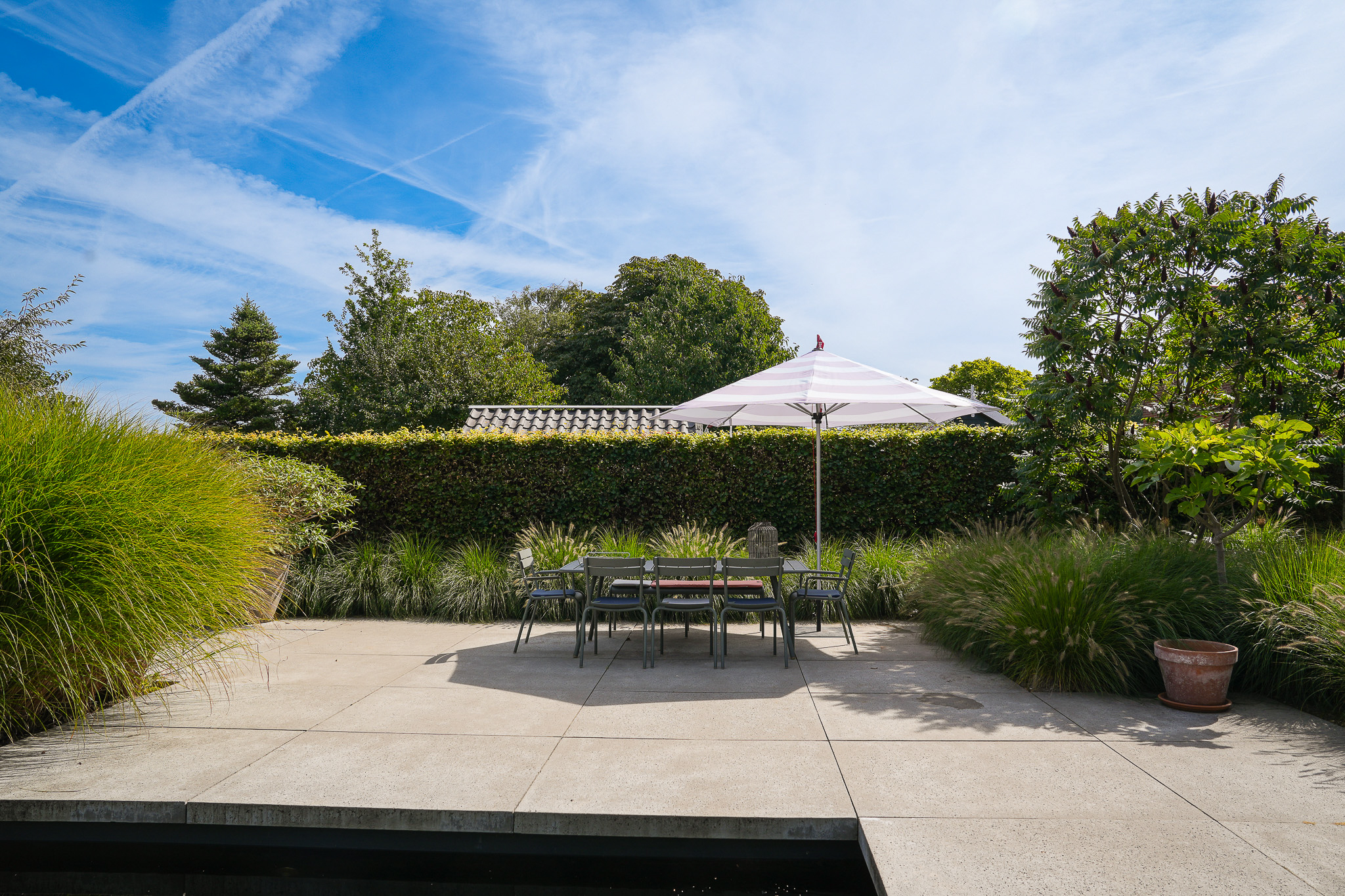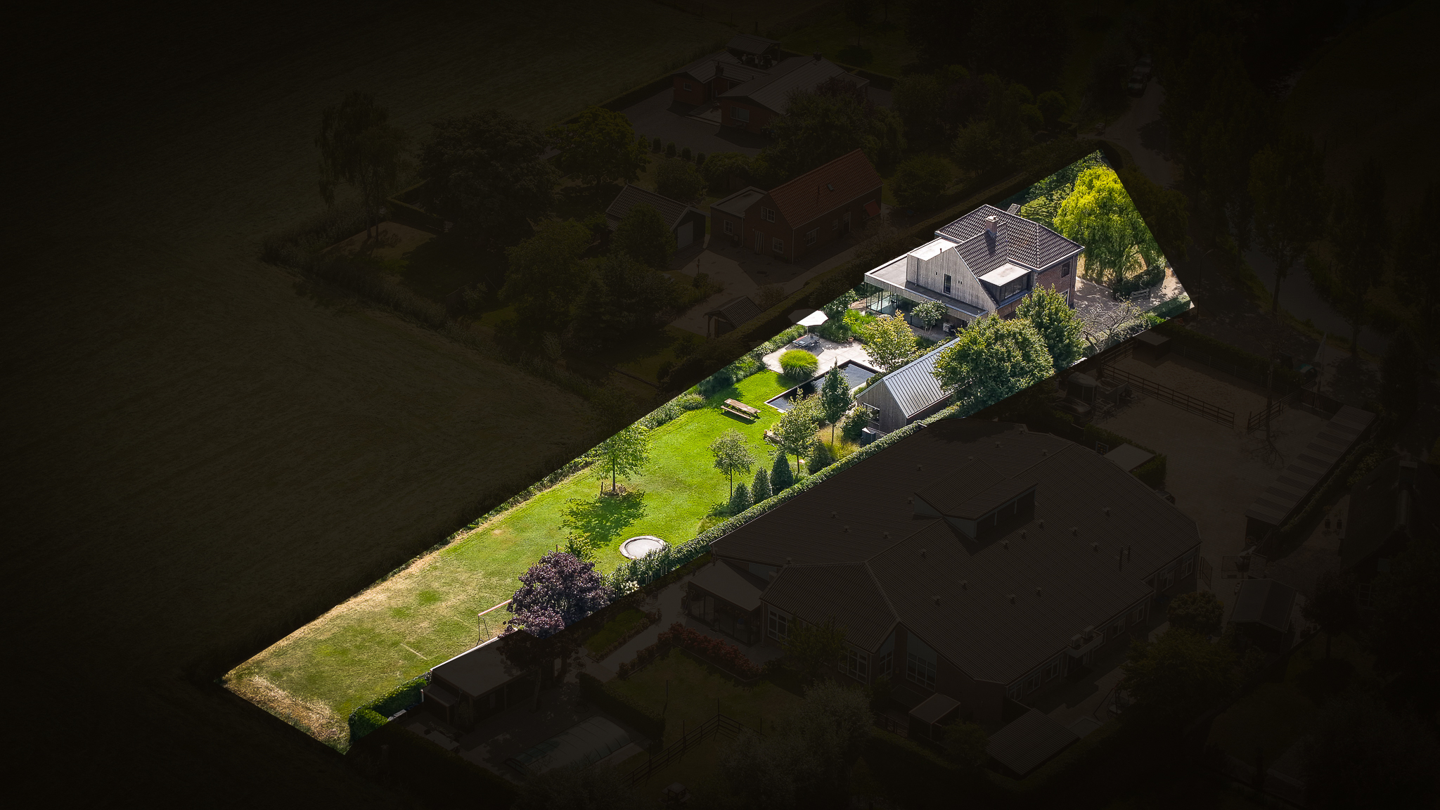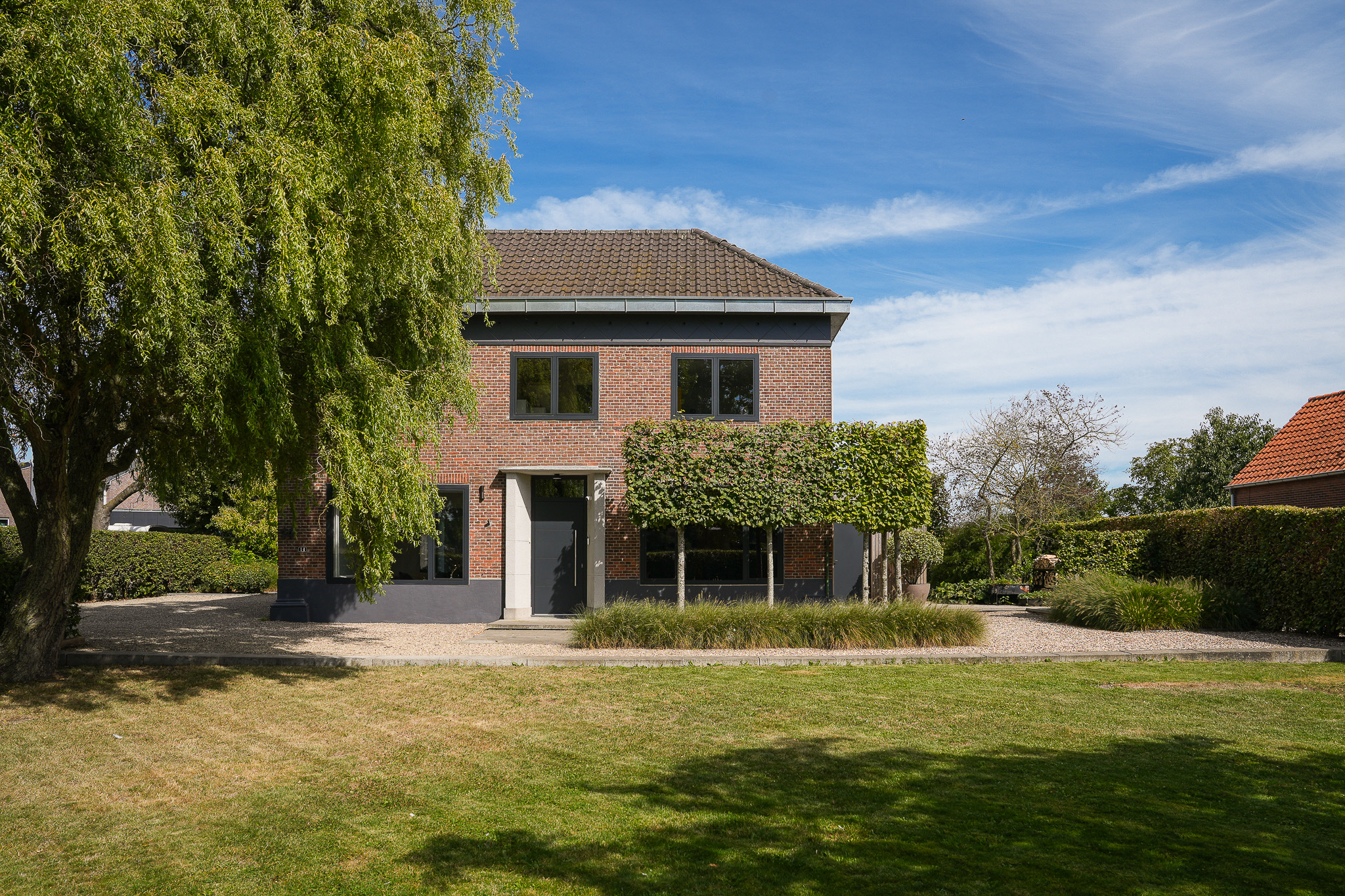 The garden fully embraces outdoor living. At the rear, the natural swimming pond forms a captivating centrepiece, surrounded by terraces, a natural filtration system and mature planting that ensures privacy and seclusion. It is a garden designed for relaxation: cooling summer swims, long evenings dining on one of the Schellevis terraces, or simply enjoying the views across the meadows. The garden is equipped with an irrigation system.
