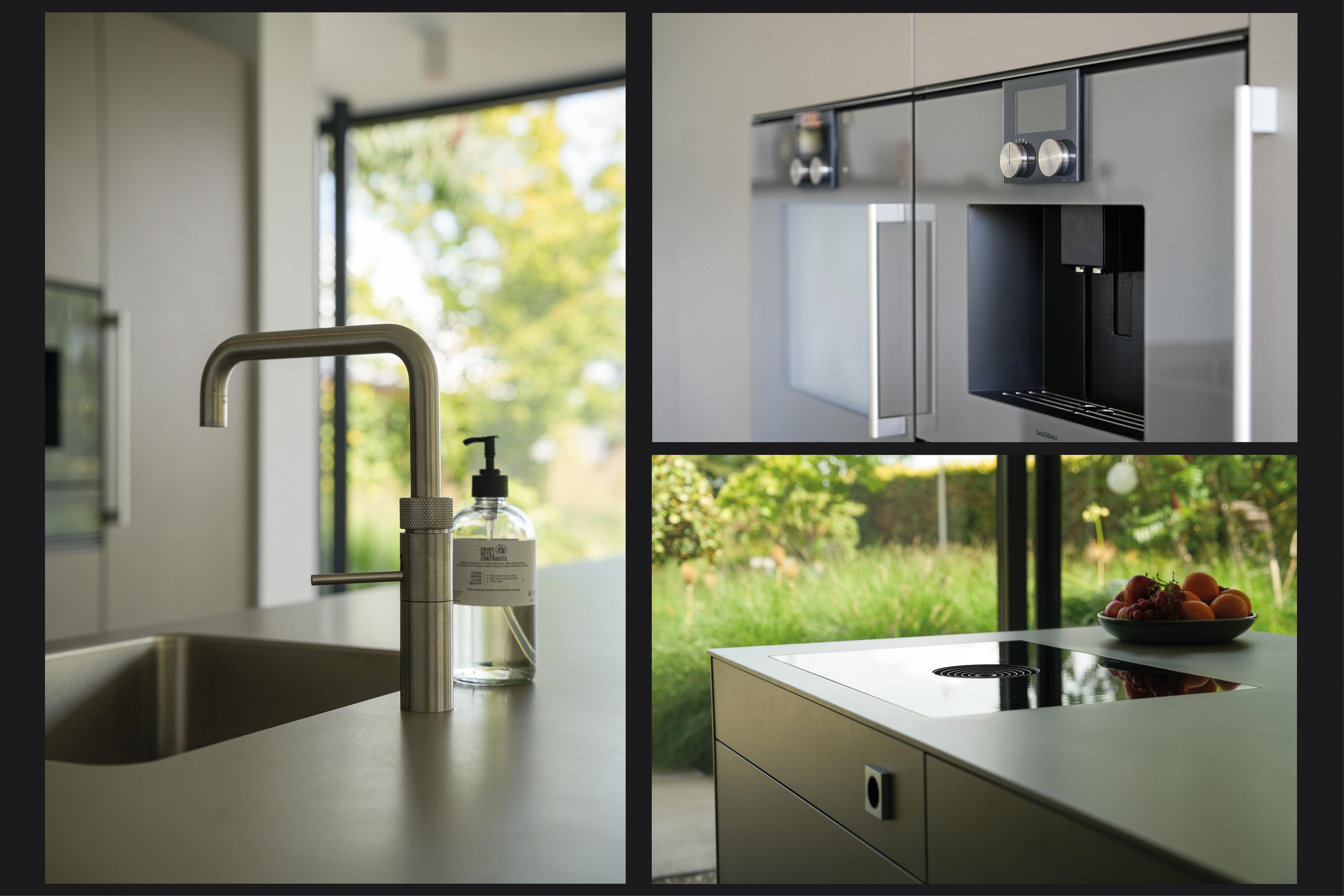 The heart of the home is the contemporary kitchen extension. Expansive glass walls provide panoramic views of the garden, blurring the line between indoors and outdoors. The generous Bulthaup kitchen with cooking island, high-end built-in appliances and space for a long dining table is the natural gathering place for family and friends. From here, you step directly out onto the terrace. Also on the ground floor are a cloakroom, toilet, storage with fitted cupboards and a side entrance to the front garden. Underfloor heating runs throughout the ground floor.