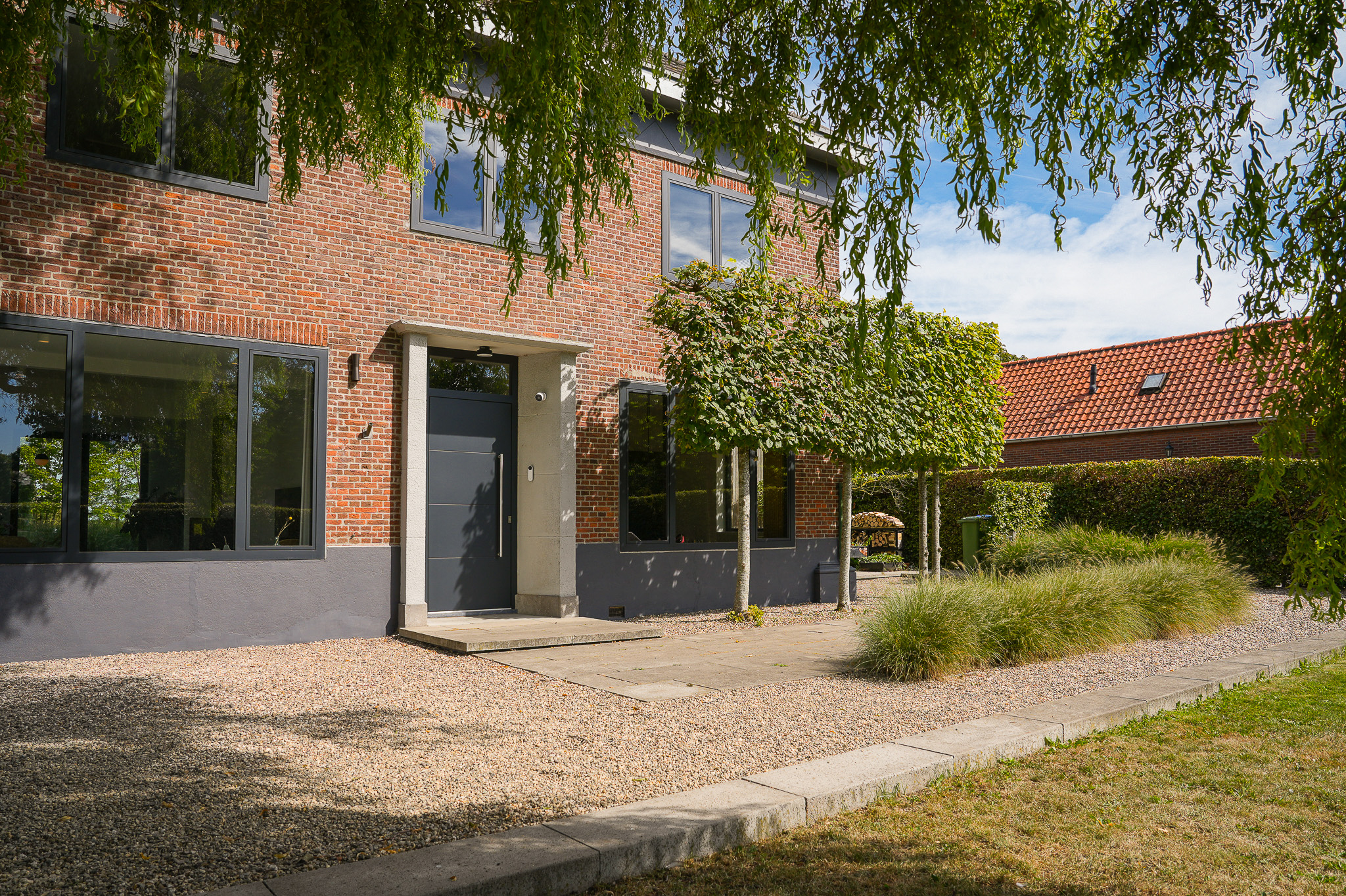 The outbuilding mirrors the style of the house, combining a fully equipped guesthouse with a spacious barn. This provides comfortable accommodation as well as practical storage space for bicycles, tools or hobbies—offering both hospitality and functionality. Naturally, the guesthouse includes a kitchenette, bathroom and underfloor heating.
