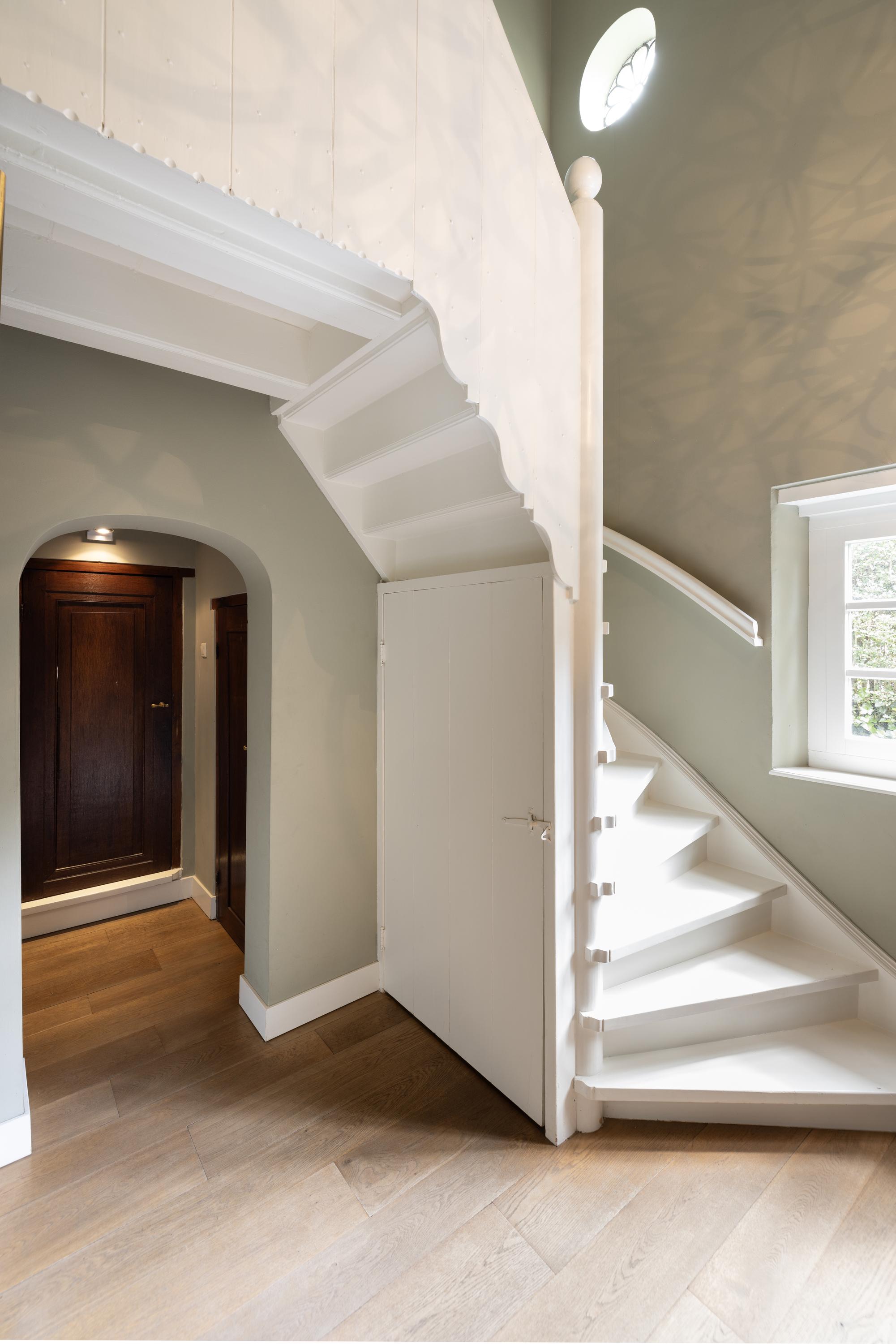 De opkamer met uitzicht op de polder is een geweldige werkkamer, voorzien van een grote schouw en een eigen entree. Onder deze kamer bevindt zich één van de twee kelders, nu in gebruik als royale wasruimte. De verdieping biedt nog meer ruimte: 4 slaapkamers, een moderne badkamer, apart toilet en zelfs een bedstee voor wie het knus wil houden.
