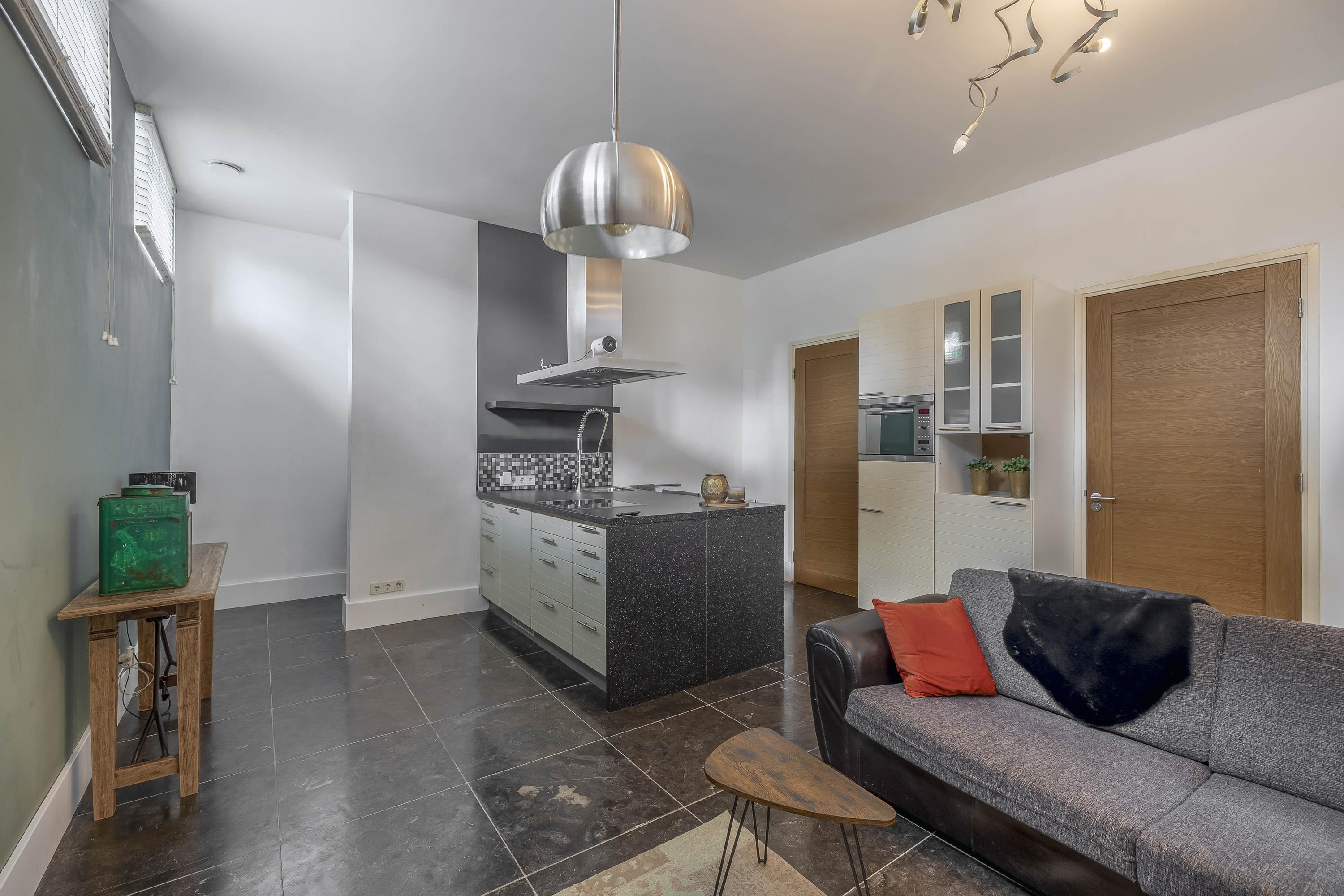 Through the spacious entrance with beautiful tiled floor, modern toilet and extensive meter cupboard, you enter the kitchen at the front of the house. This stylish and complete kitchen is the heart of the house and features a kitchen island, luxury appliances and plenty of workspace. Thanks to the raised floor level, you have a beautiful view of the street.