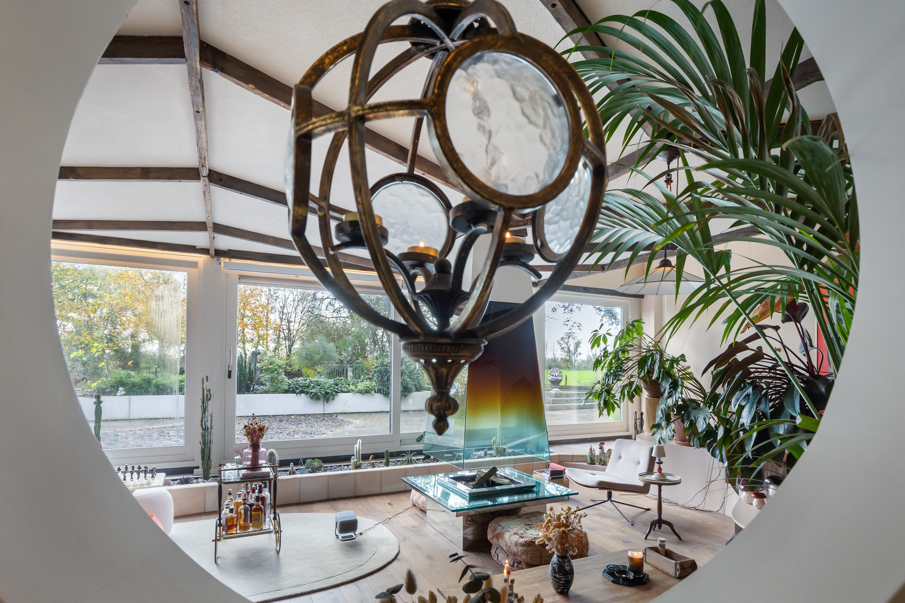The exterior has been fully repainted, fitted with new roofing, and enclosed by a bespoke corten steel boundary with glass panels referencing the striking tulip artwork in the front garden. All windows have been upgraded with insulating glazing, and the interior has been redesigned into a hotel-chic living environment with warm tones, high-quality bespoke joinery and atmospheric lighting. The property is equipped with a comprehensive camera system and alarm installation both in and around the buildings.