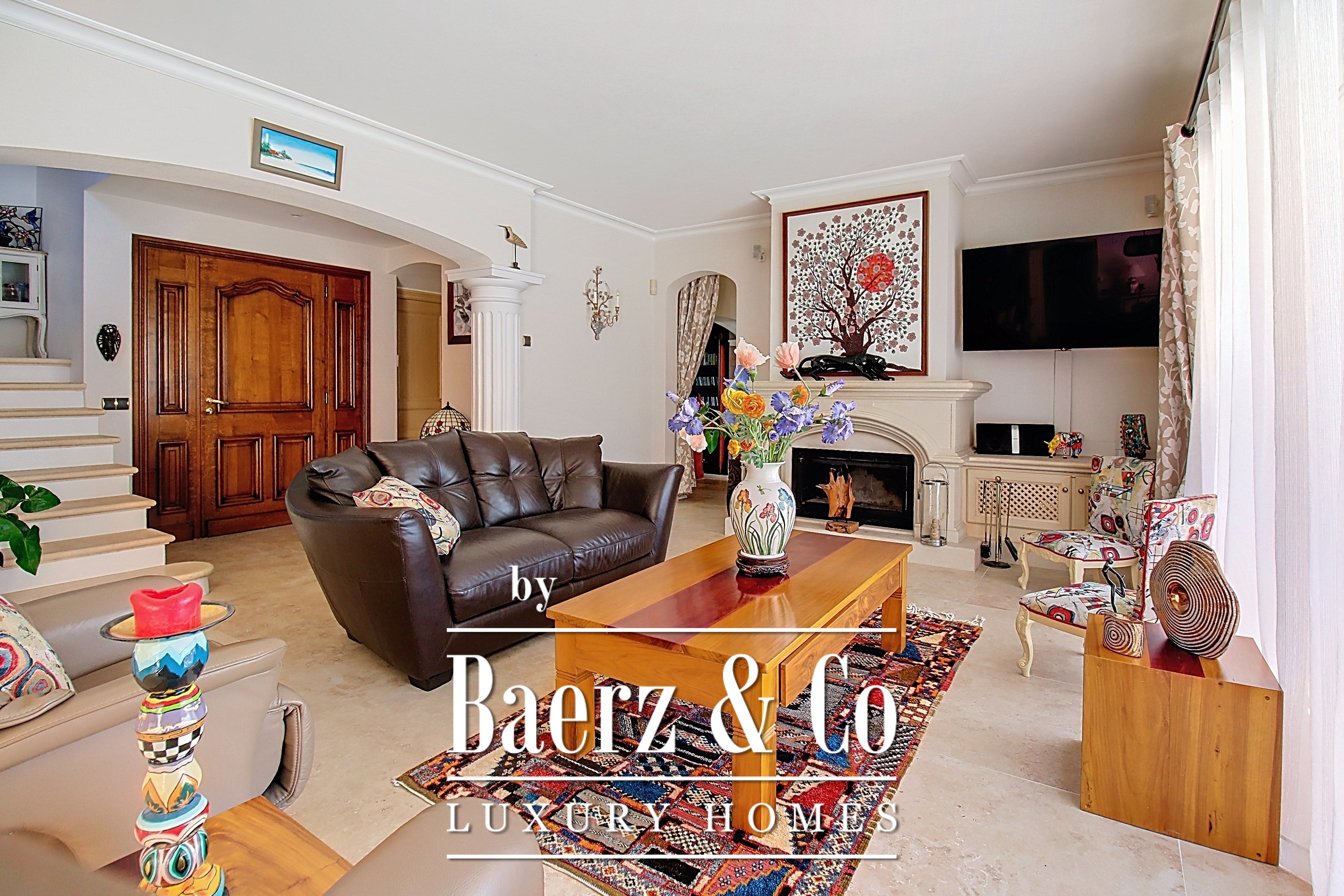 Set in a peaceful, green environment, this neo-Provencal villa combines timeless charm with modern elegance on a landscaped plot of 1,700 sqm. Flooded with natural light, the spacious living room opens onto sun-filled terraces, a swimming pool, and a jacuzzi—perfect for Mediterranean outdoor living. The refined open-plan kitchen creates a convivial atmosphere for