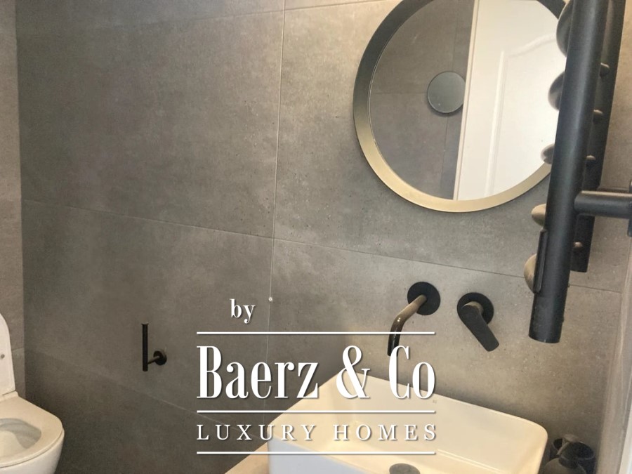 The apartment comprises two bedrooms, one of which is a master suite, and a second bathroom, offering both privacy and flexibility. Heating is managed individually through a heat pump, complemented by underfloor heating for year round comfort. Air conditioning and a solar water heater further enhance daily convenience.