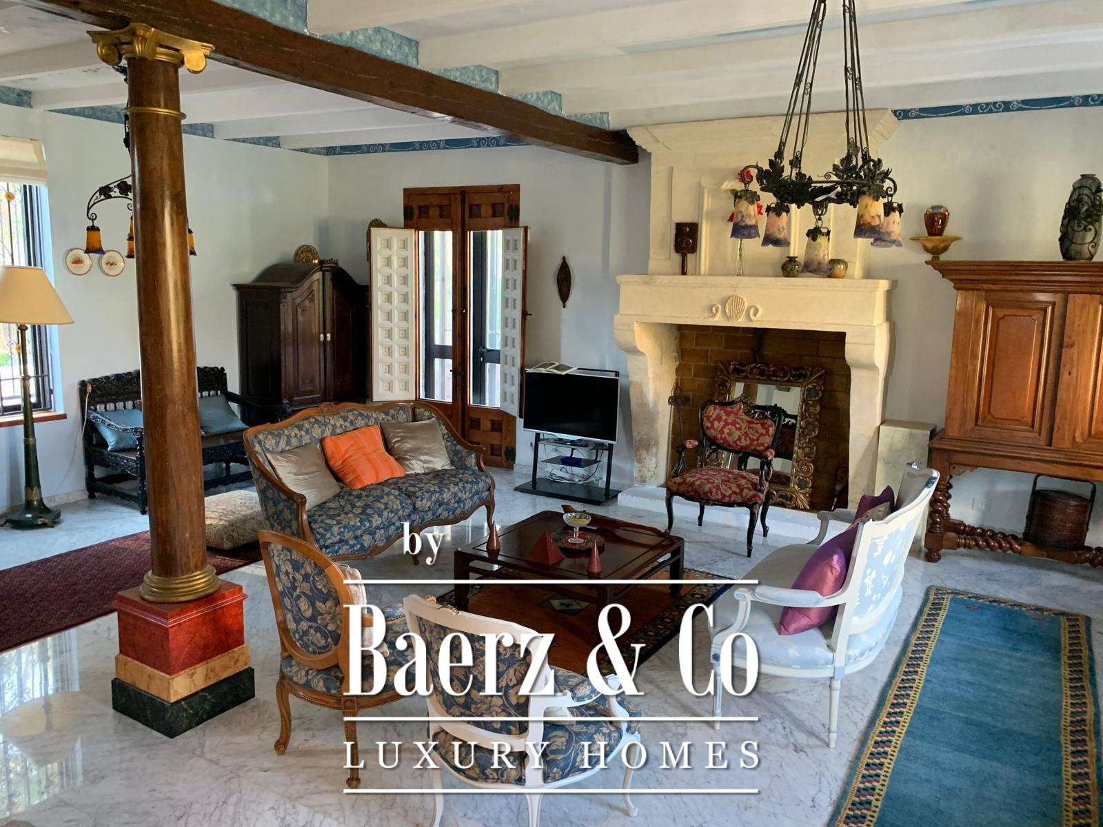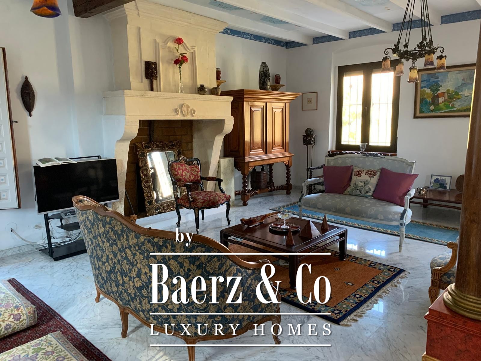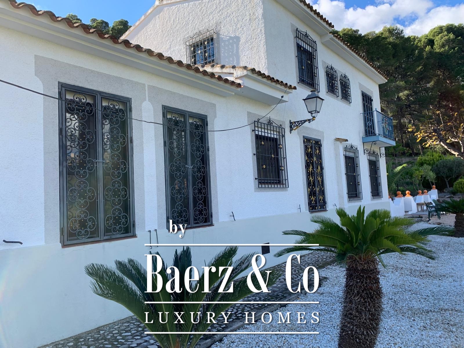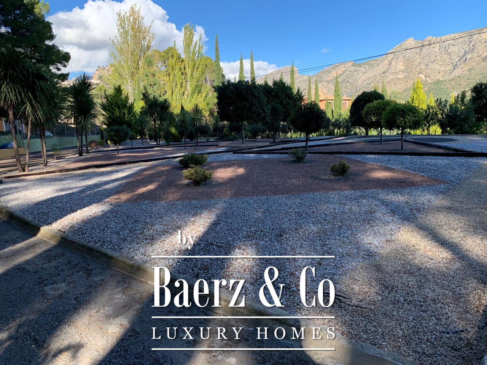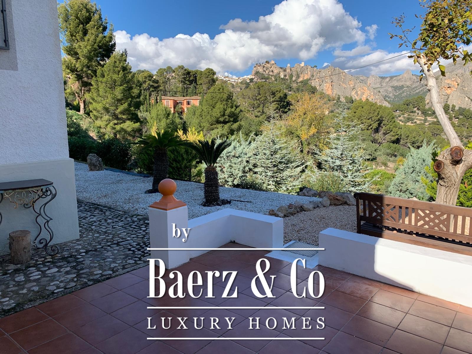 This rustic villa Guadalest offers a tranquil refuge framed by the dramatic silhouette of Guadalest Castle. Set discreetly within a generous 5,750 m² plot, the property combines classical Spanish architecture with immersive natural surroundings. Stepping inside, one immediately appreciates the sense of openness realized through high ceilings and abundant daylight. The main residence unfolds across two levels, comprising approximately 230 m², with six bedrooms and five bathrooms designed for privacy and ease.