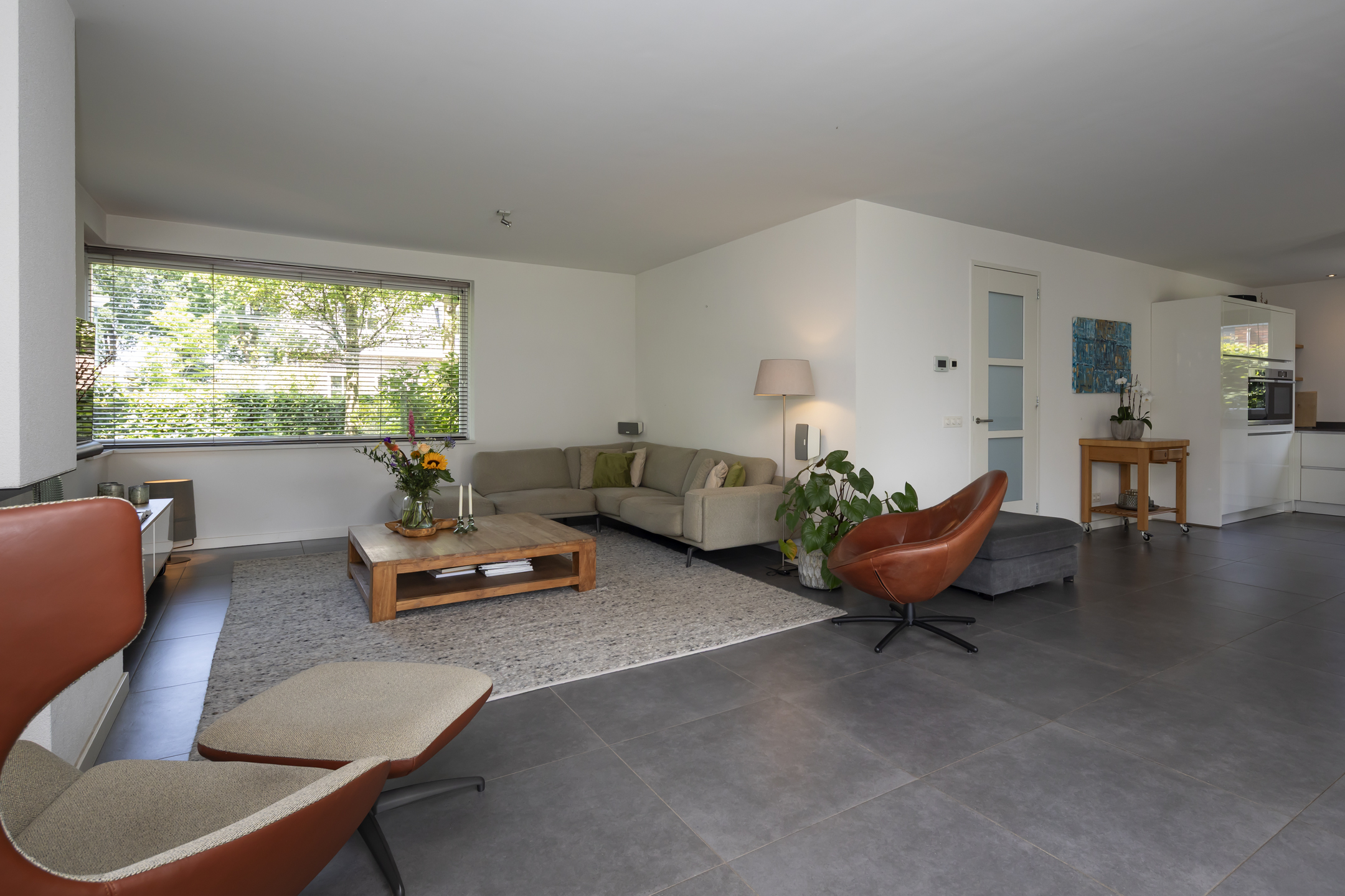 The garden is fantastic, offering wonderful privacy. The beautiful garden is bordered by green hedges, ensuring minimal views. A lovely lawn with a spacious sun terrace provides ample space for playing. In addition to the sun terrace, there is also a beautiful, spacious covered terrace adjacent to the rear of the house. The covered area has a large skylight, ensuring optimal daylight penetration into the living room. And then there's the unique sauna in the garden, where you can relax after a hard day's work. The front garden is also neatly landscaped and has a spacious driveway with space for 4 to 6 cars.
